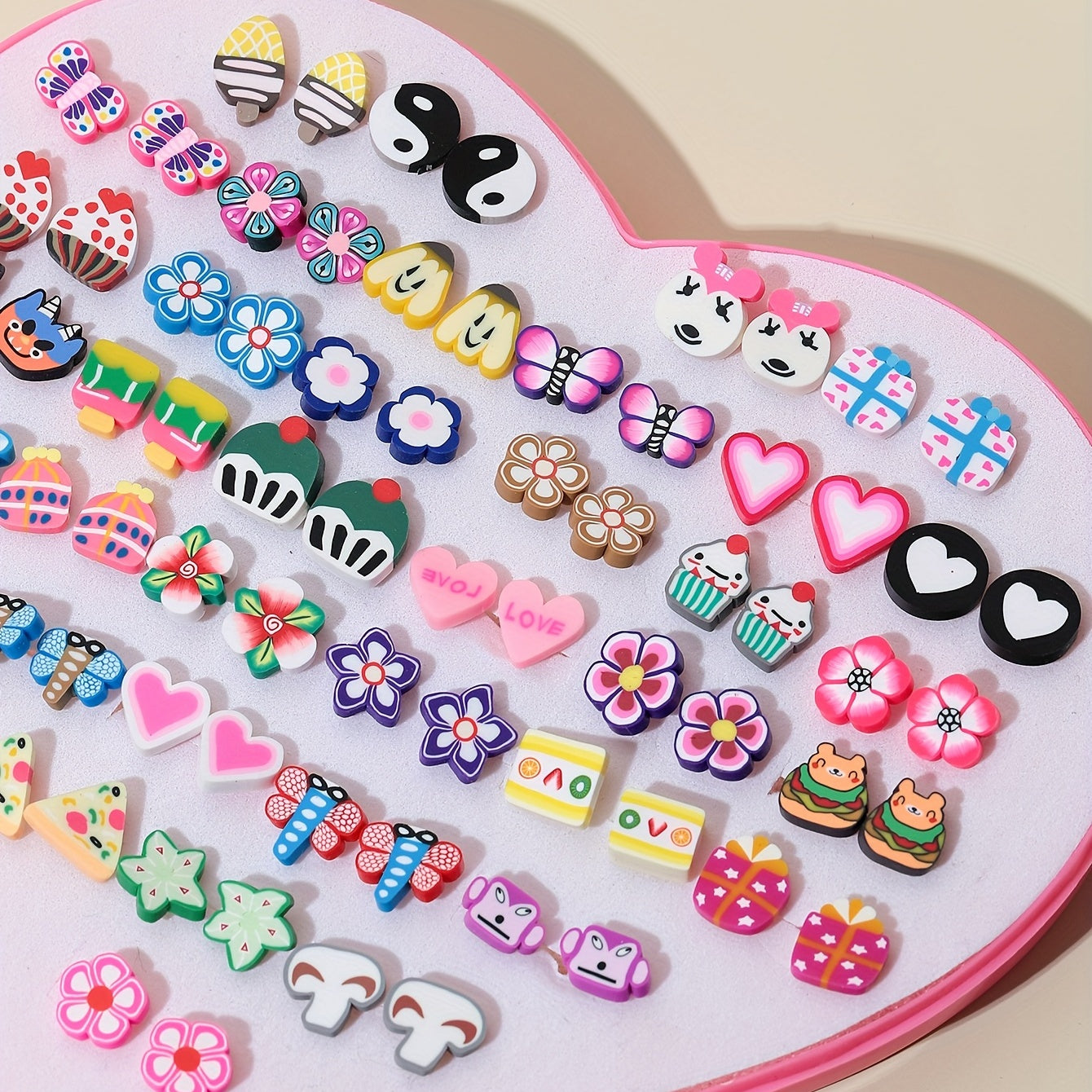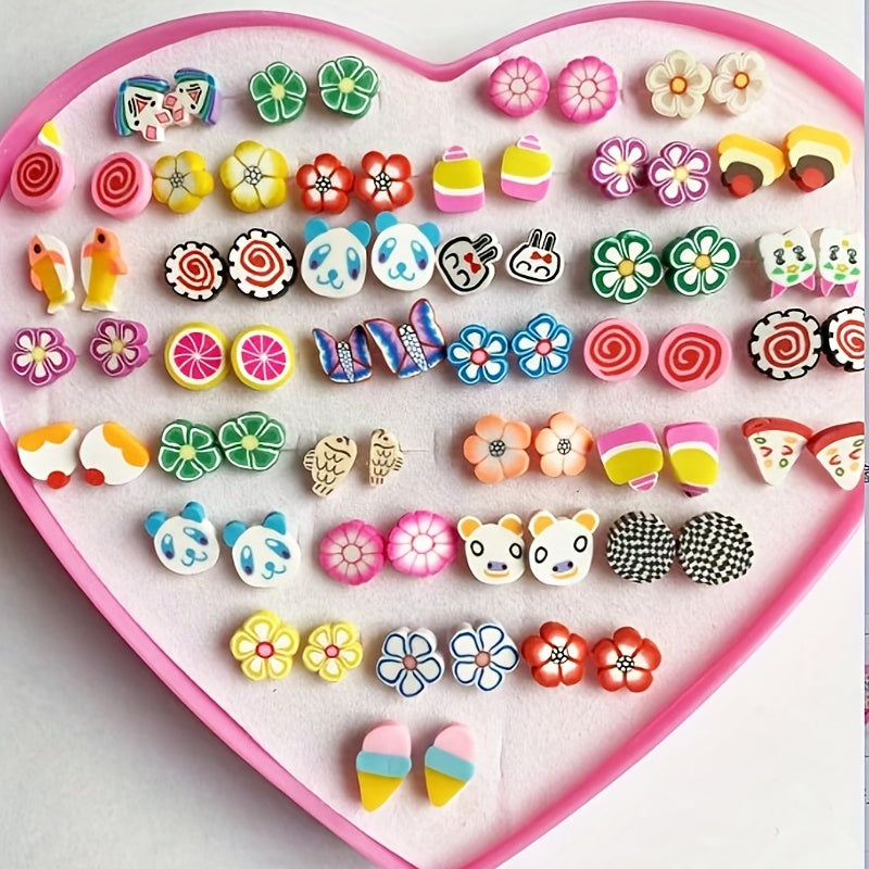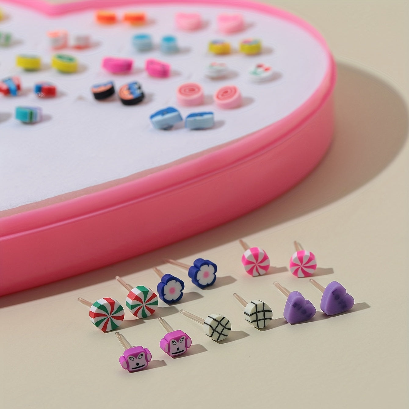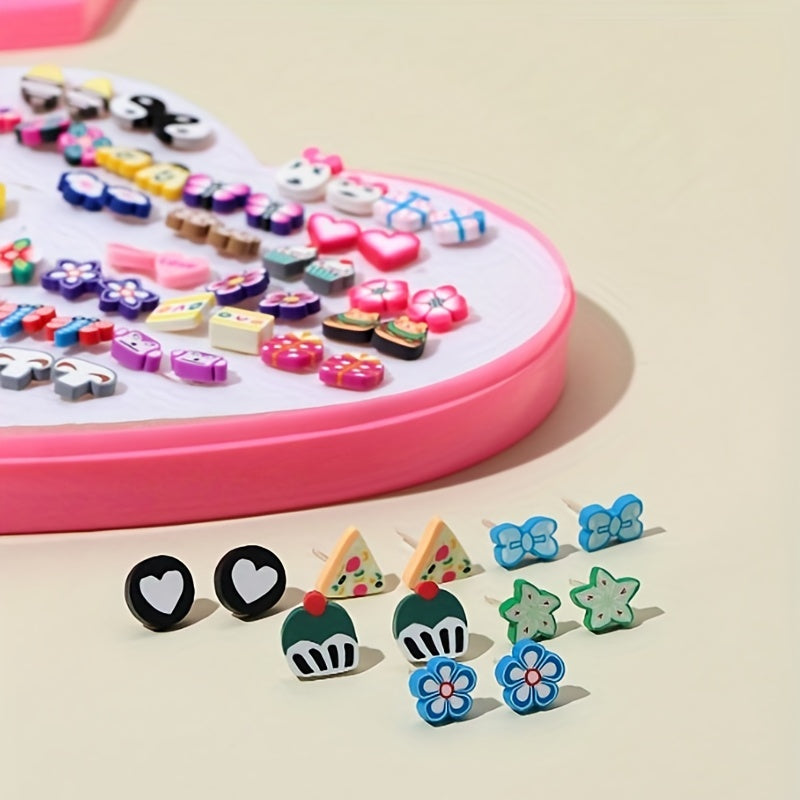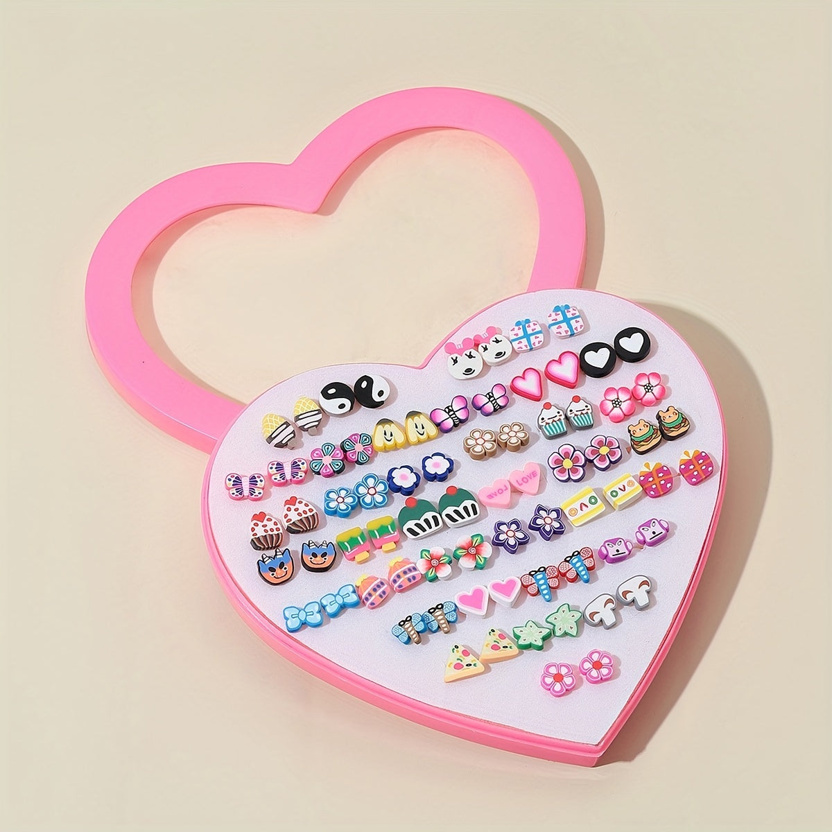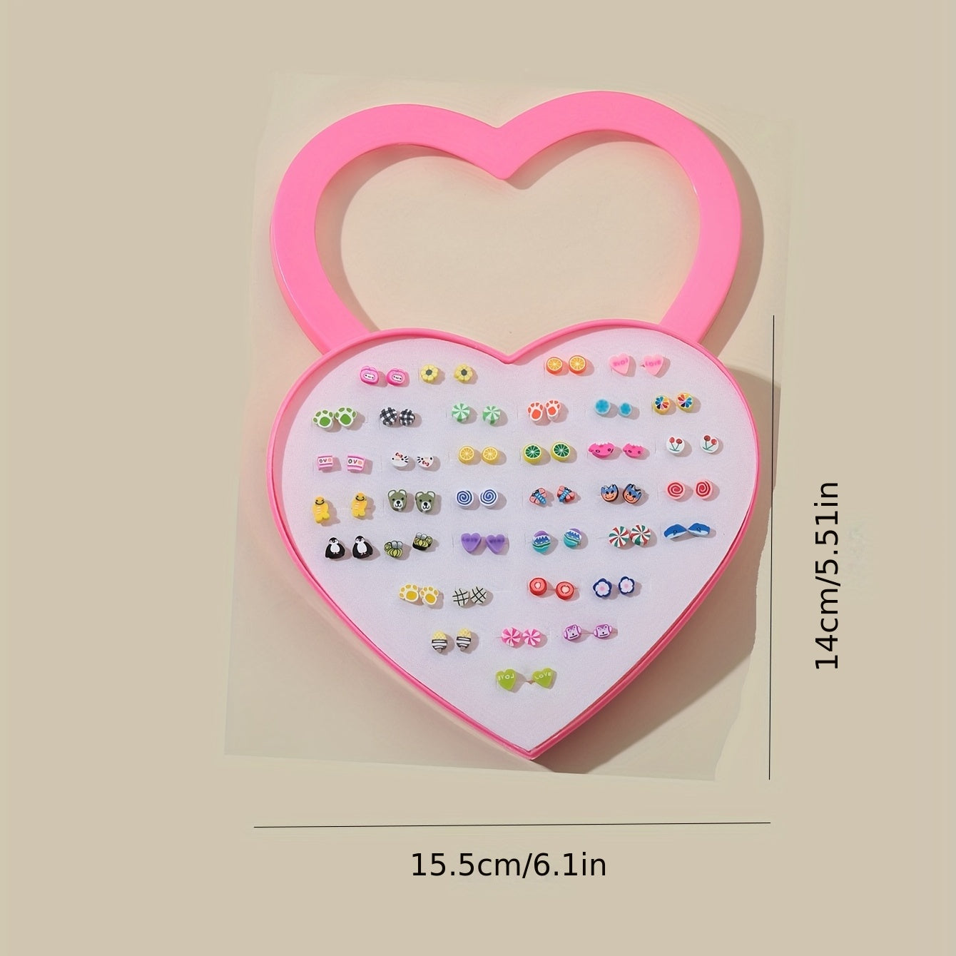 Discover a fun collection of 36 pairs of stud earrings featuring various fruit designs. These earrings come in a heart-shaped box, making them a perfect gift for a female friend or loved one with a Y2K style.