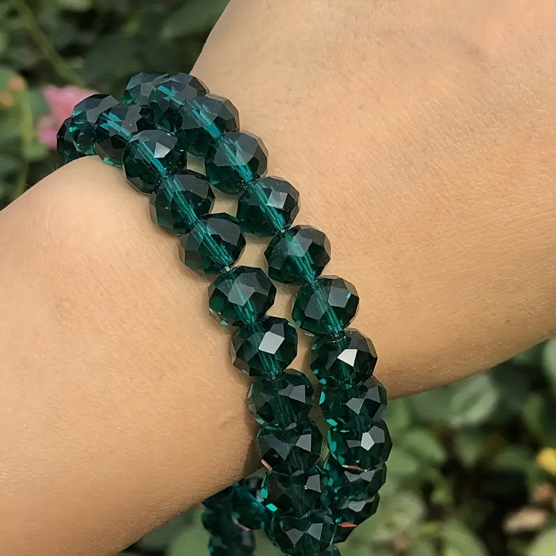 Create stunning jewelry with this DIY accessories set featuring peacock green crystal glass beads. Includes materials for earrings, bracelets, and necklaces.