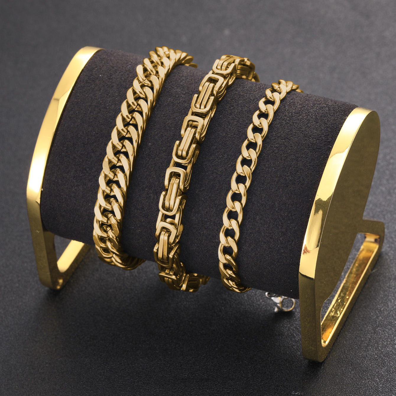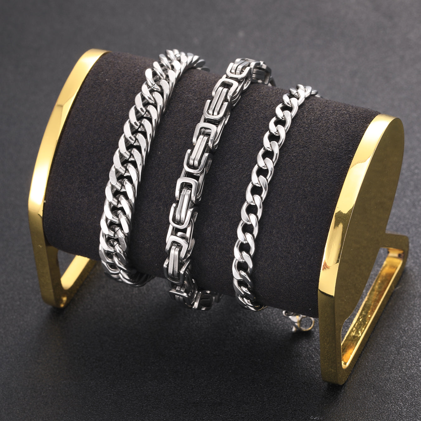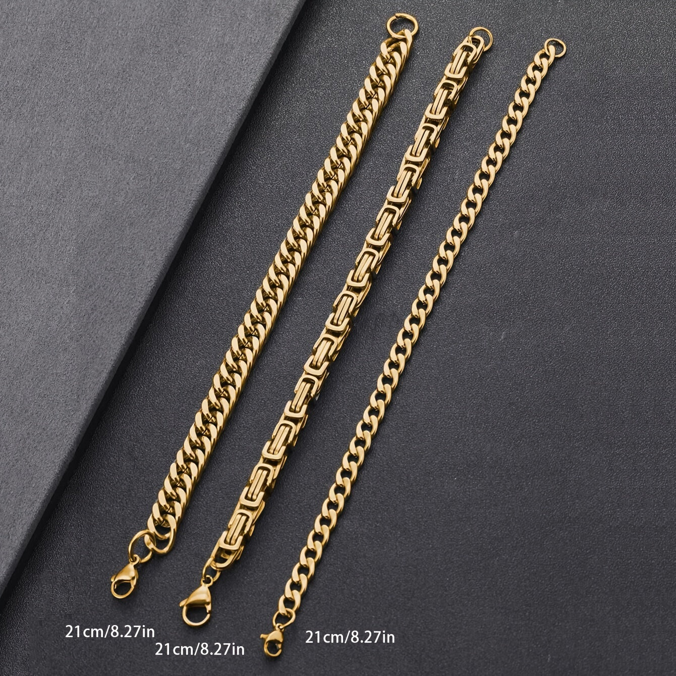 3pcs Men Chain Bracelet Stainless Steel Link Bracelets Set
