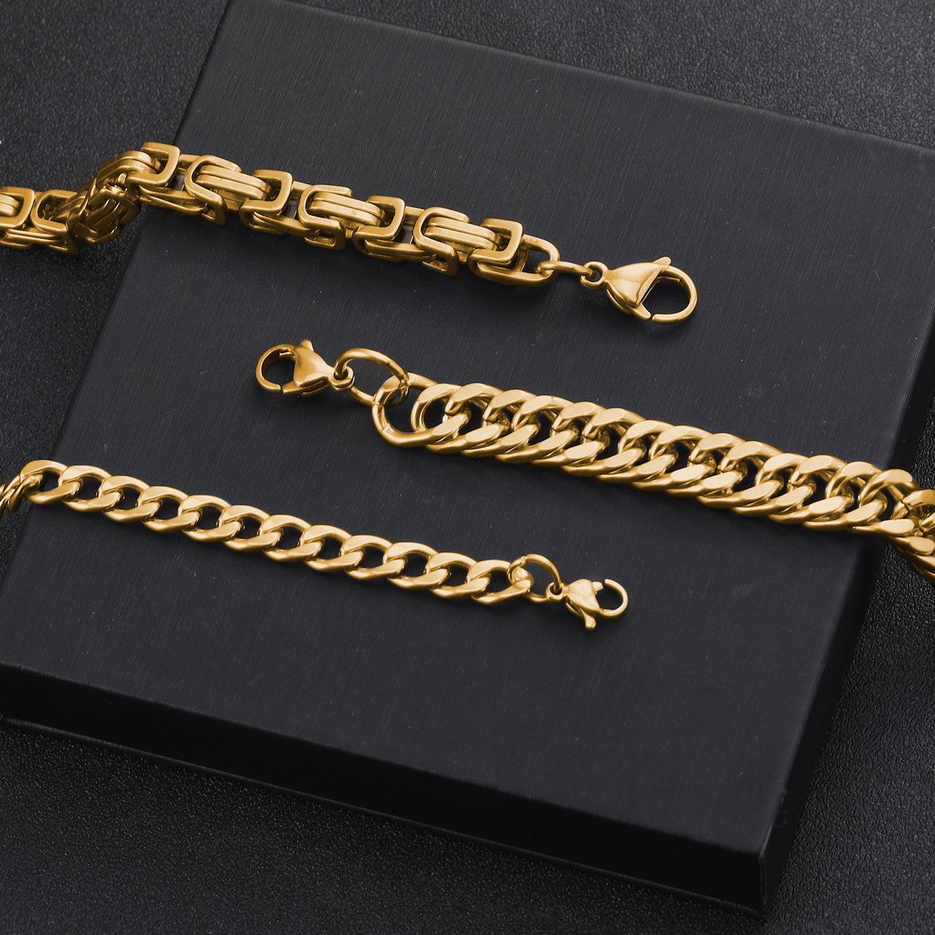 Enhance your wrist with this set of 3 chunky chain bracelets for men. Made of high-quality stainless steel, these bracelets add a touch of style to any outfit.