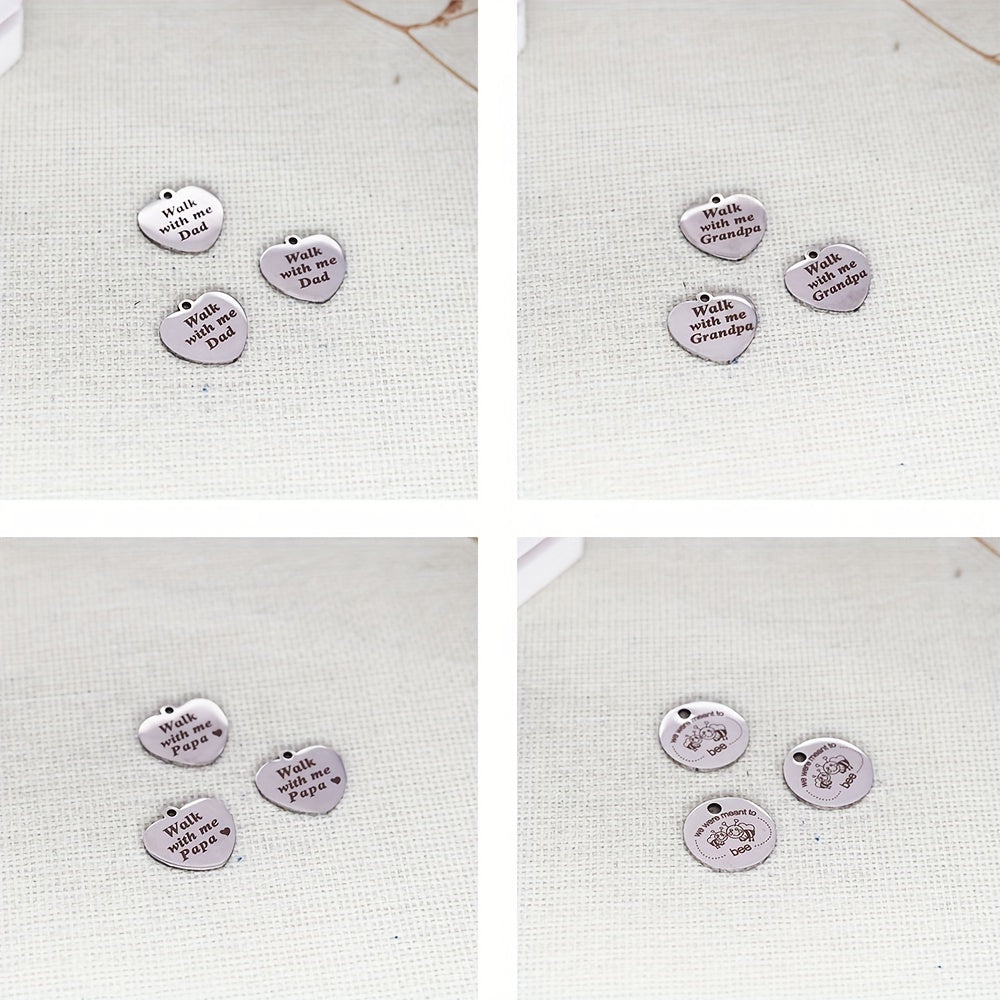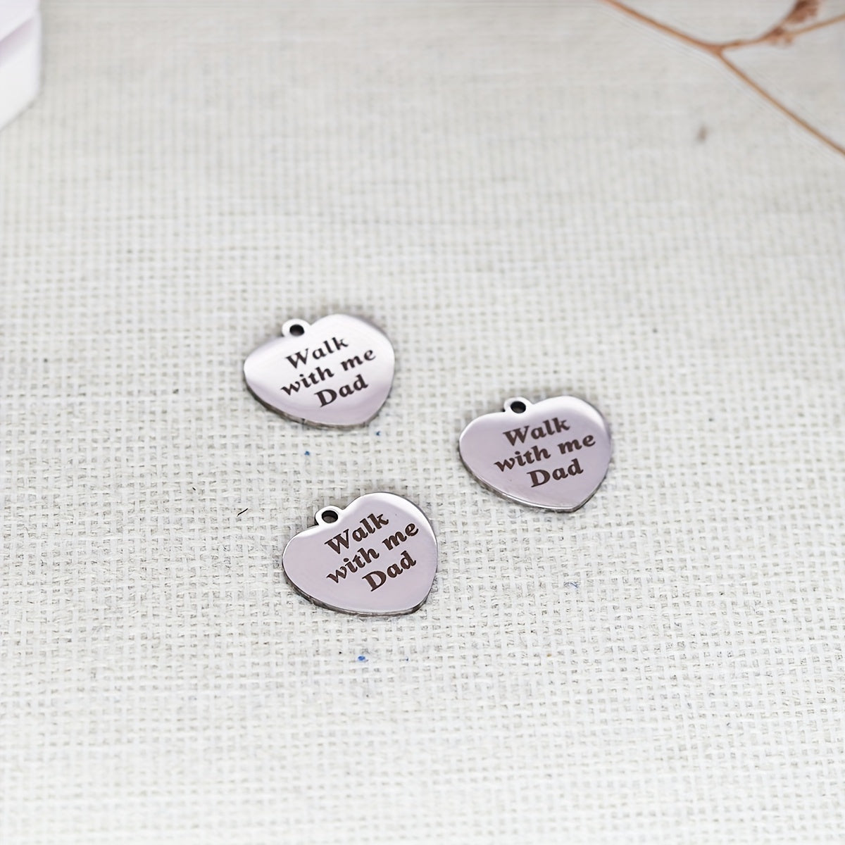 Add a touch of elegance to your DIY jewelry with these 3pcs stainless steel heart shape tag pendants. Each pendant features red letters or graphics on a silvery round heart shape, perfect for bracelets, necklaces, earrings, and other accessories.