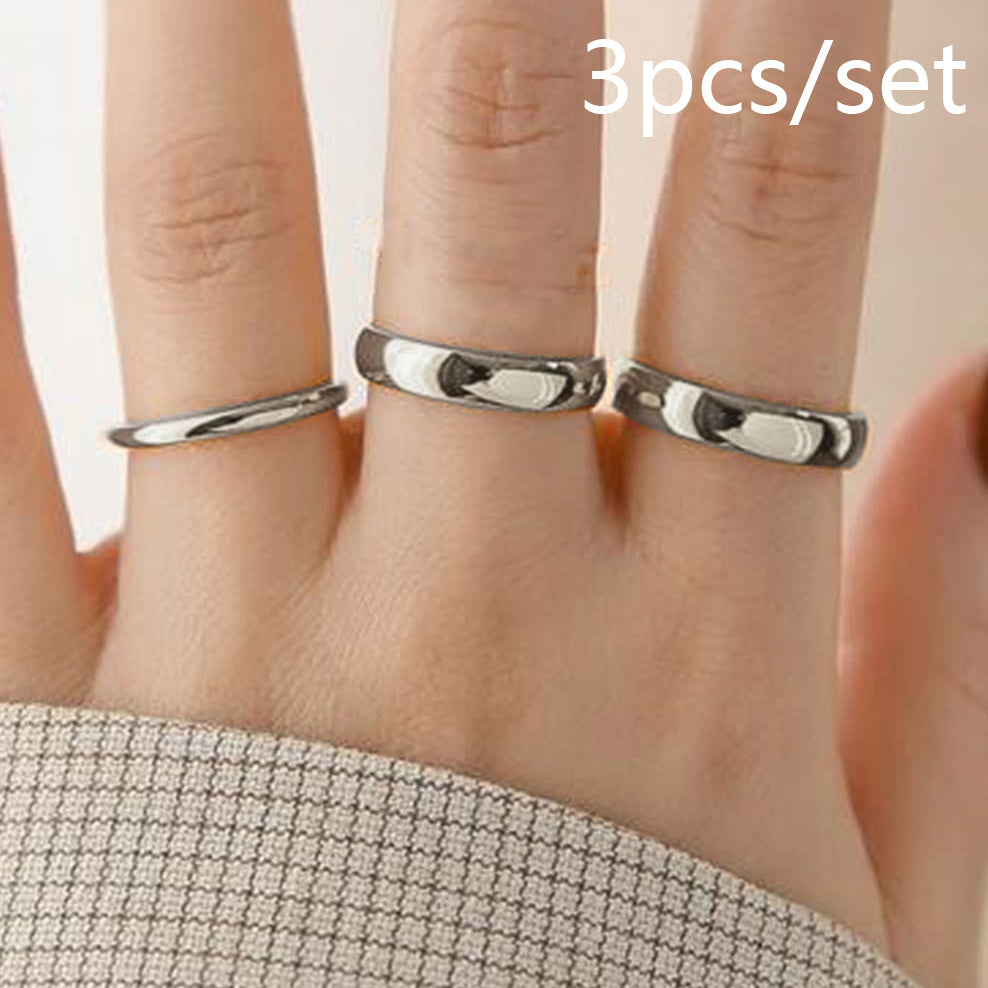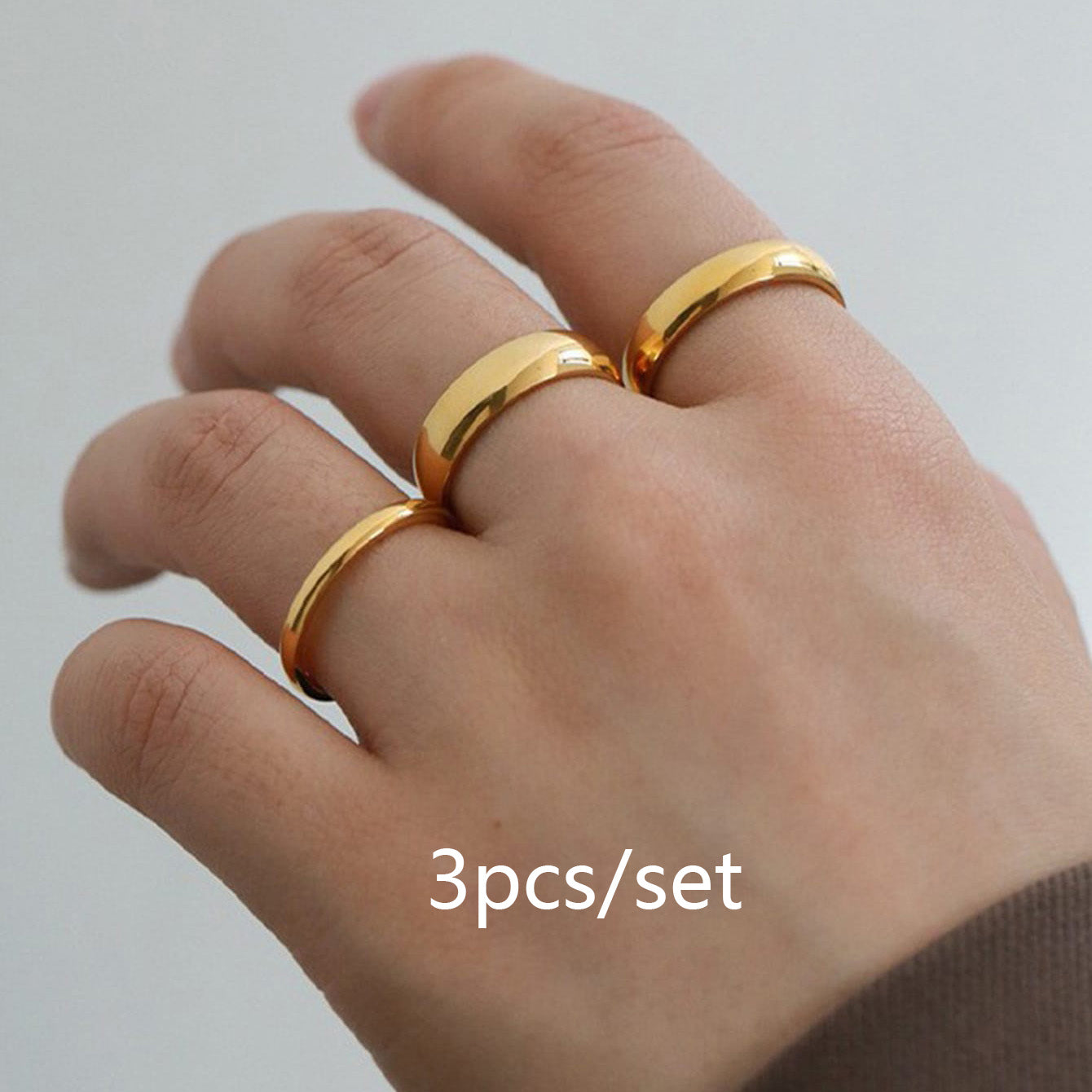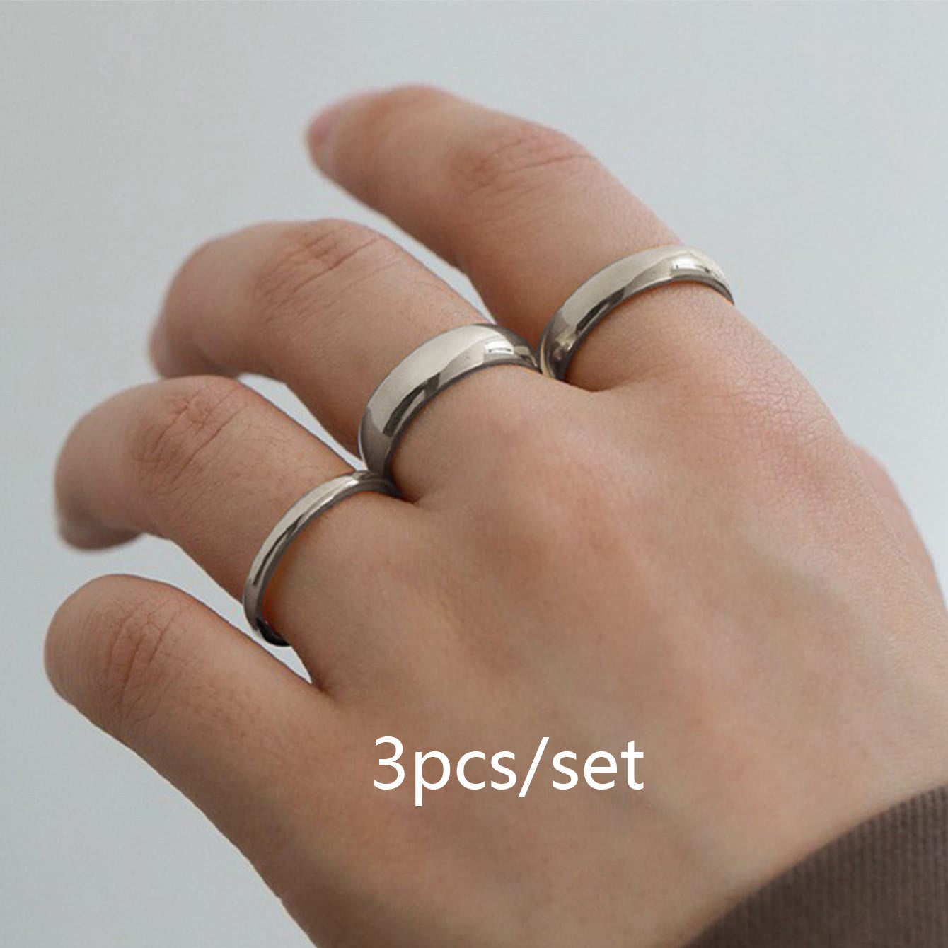 This minimalist ring set includes 3 stainless steel rings suitable for weddings, engagements, or everyday wear. Unisex design.