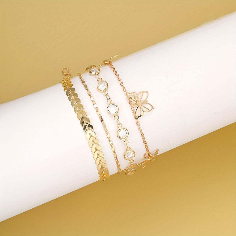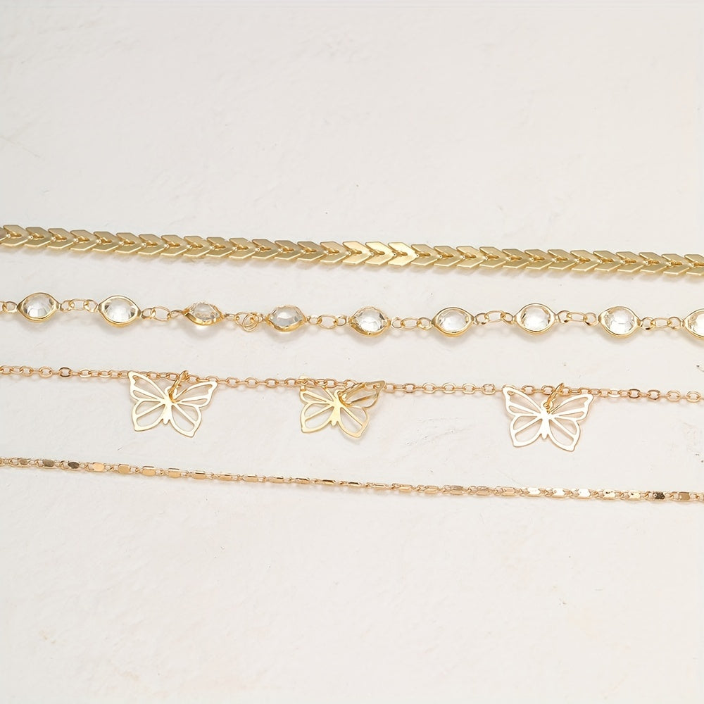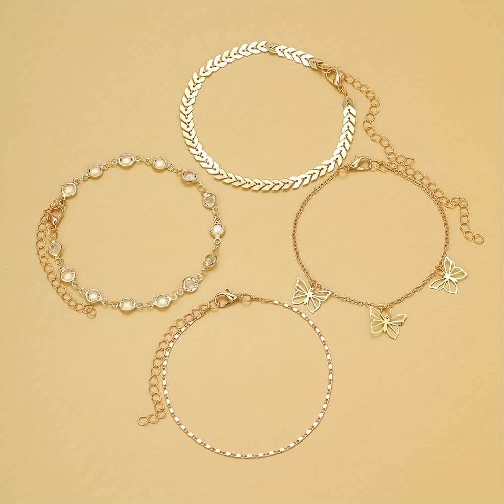 This set includes 4 hollow out butterfly shape anklets that are perfect for stacking. Made for women and girls, these ankle bracelets add a stylish touch to any outfit.