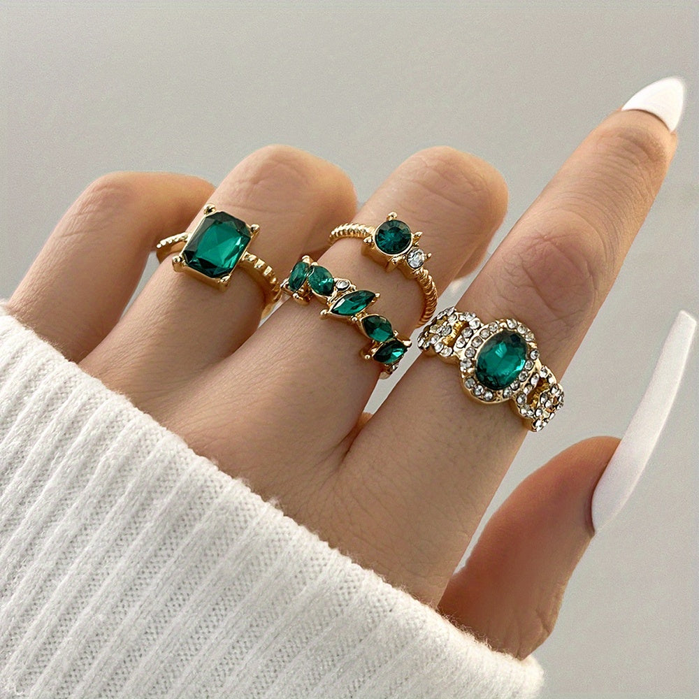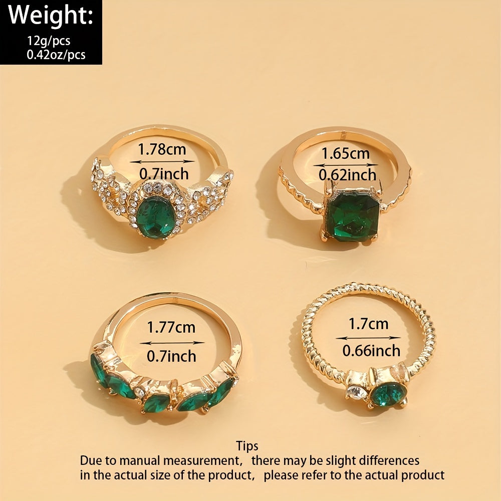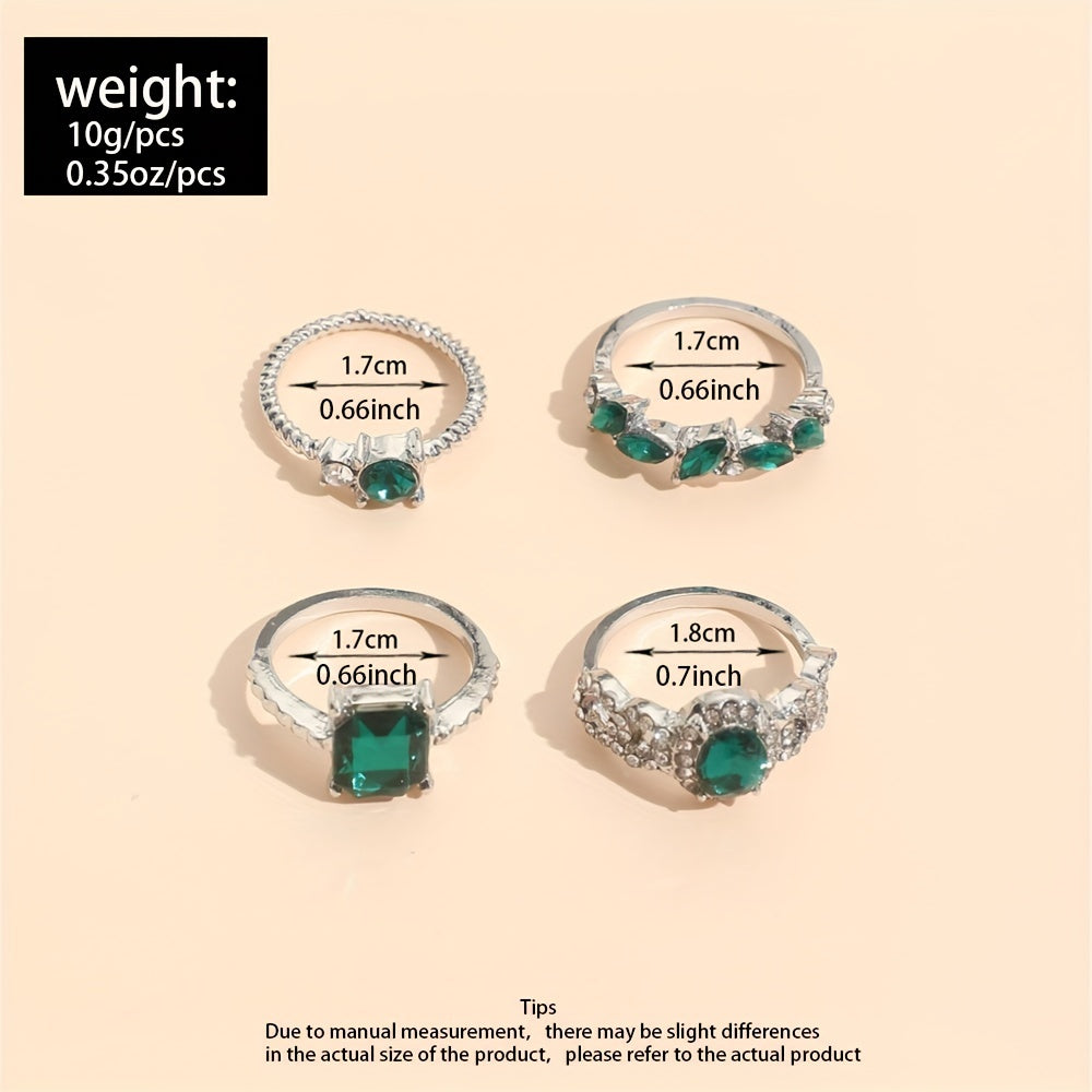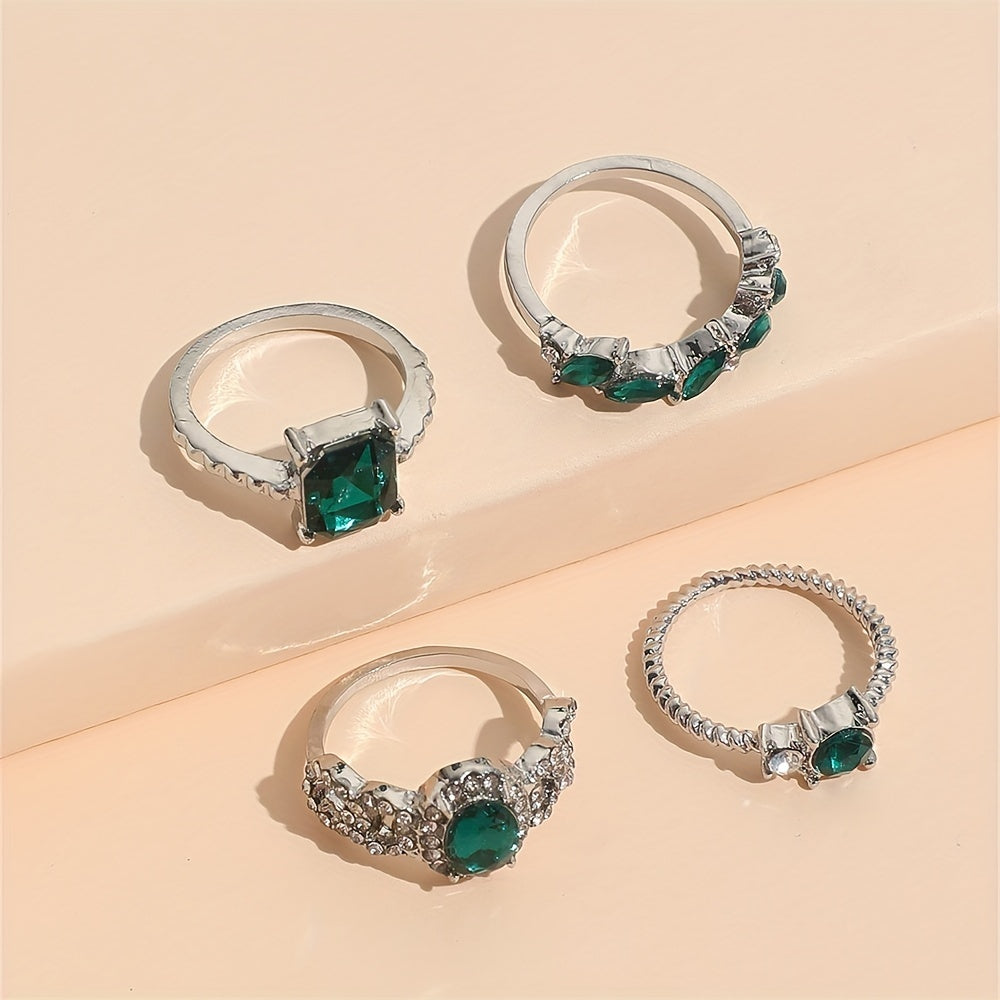 Add a touch of vintage glamour to your look with this set of 4 stackable finger rings. Each ring features inlaid rhinestones and is made from high-quality alloy. Perfect for adding a bit of sparkle to any outfit!