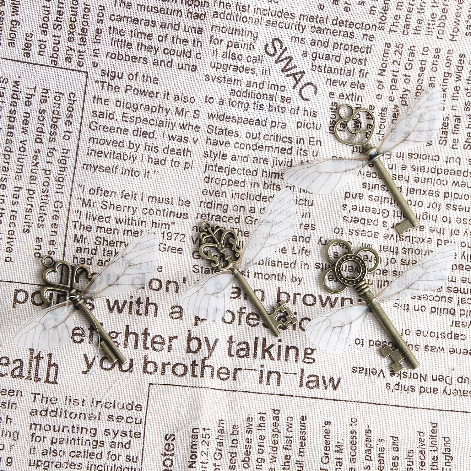 40 Vintage Skeleton Key Flying Key Pendant 40 Dragonfly Wings 33 Yard