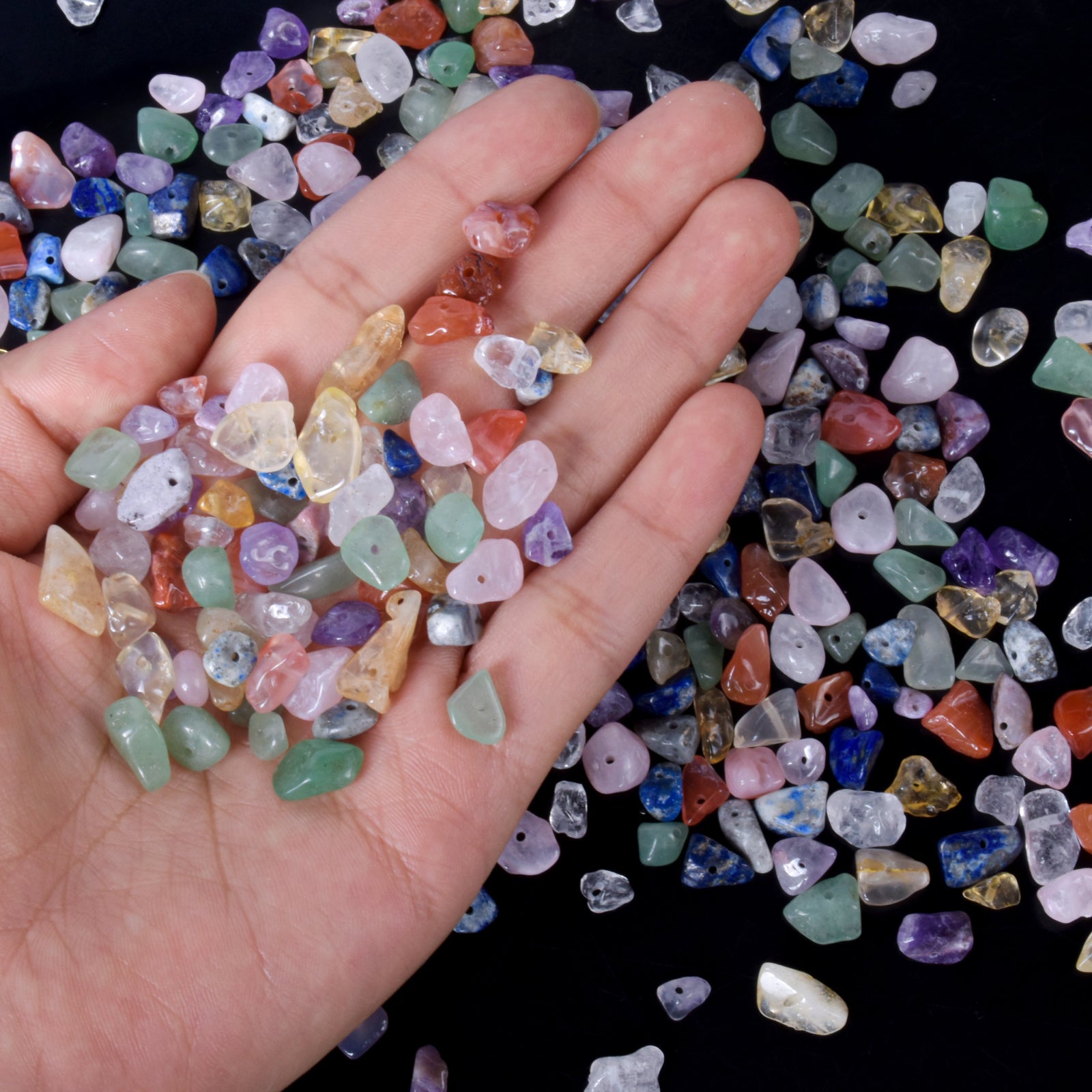 Enhance your jewelry-making projects with these 400 natural stone beads in 7 different colors. These irregularly shaped beads are perfect for creating unique bracelets, necklaces, and other accessories.