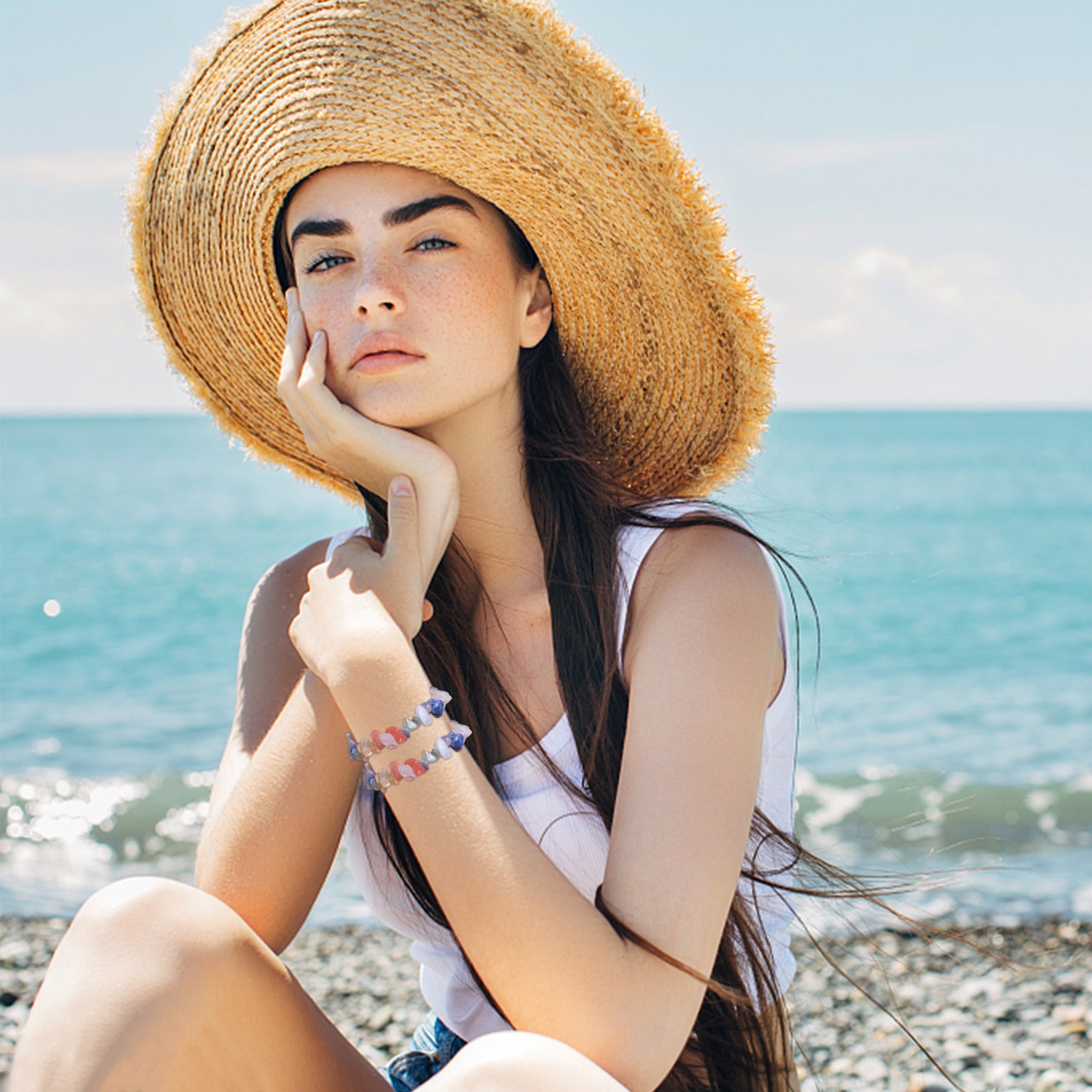• 400 natural stone beads in 7 colors