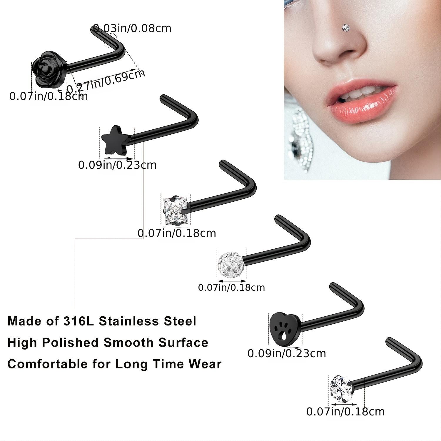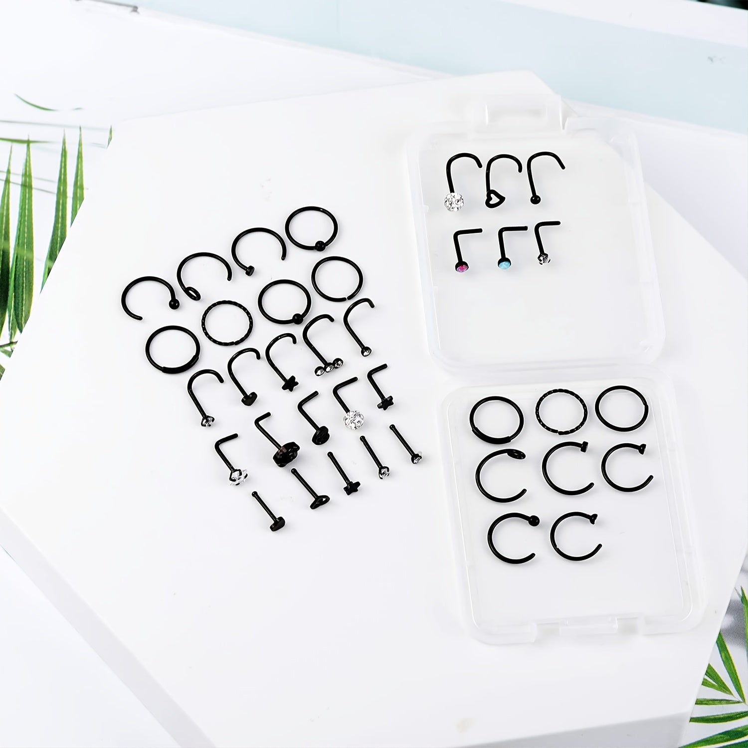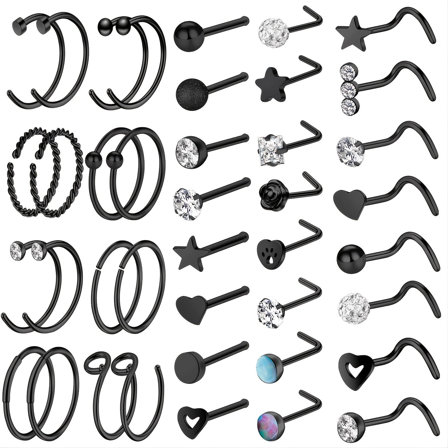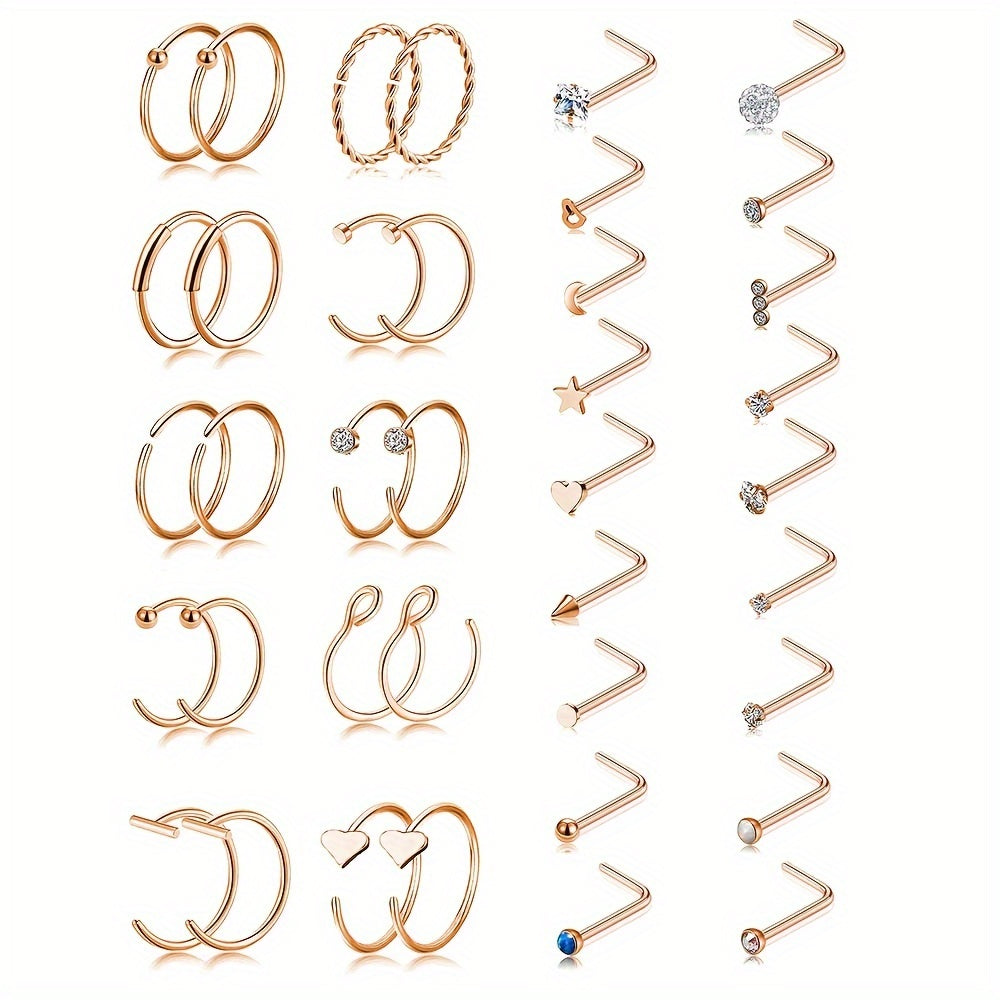 Enhance your style with this set of 40 nose rings designed for women. Perfect for various nose piercings, crafted from high-quality materials.