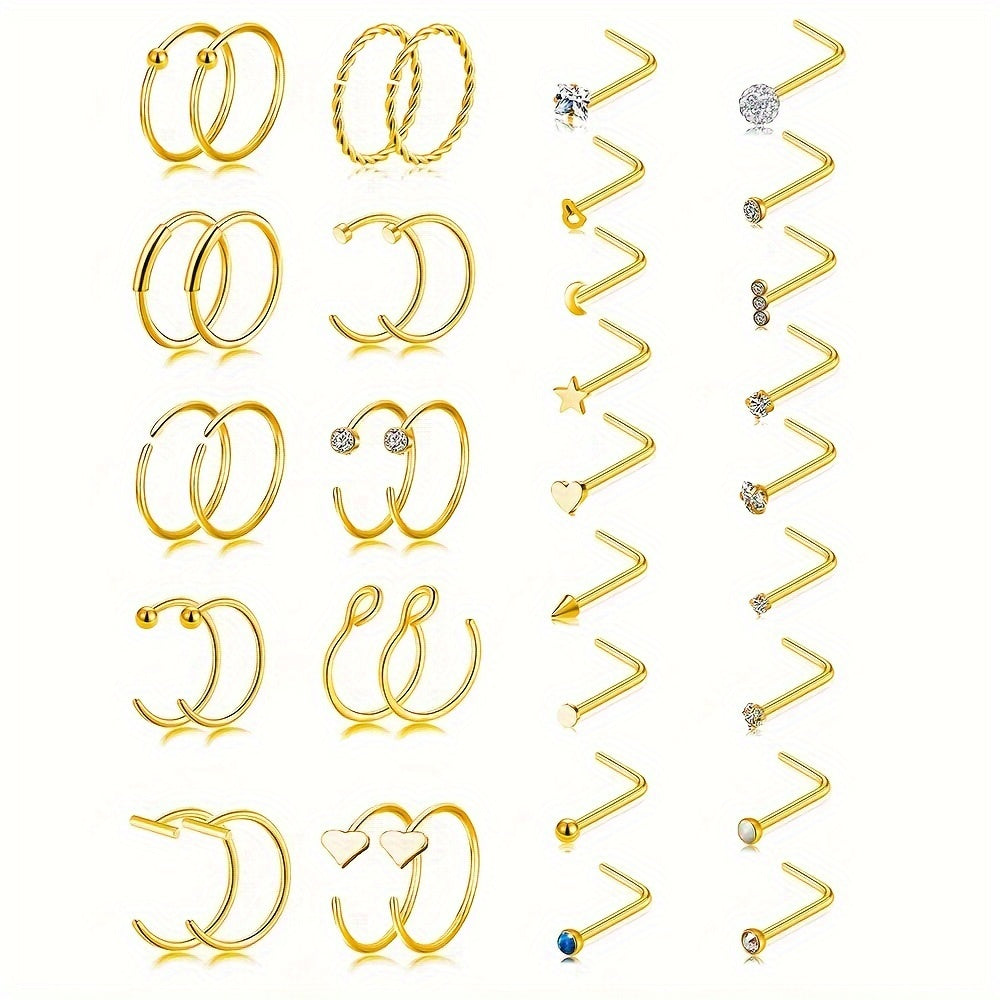 40PCS Nose Rings Nose Piercings Jewelry Hoops Nose Studs