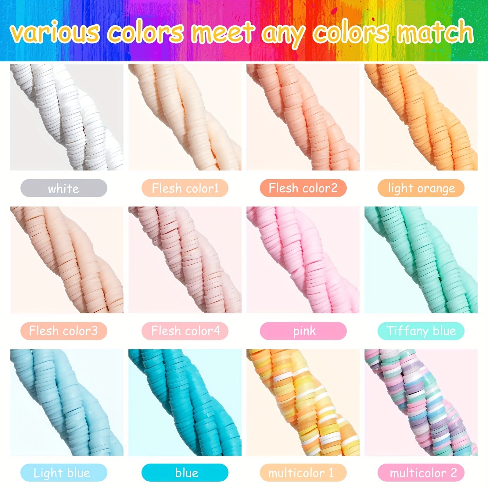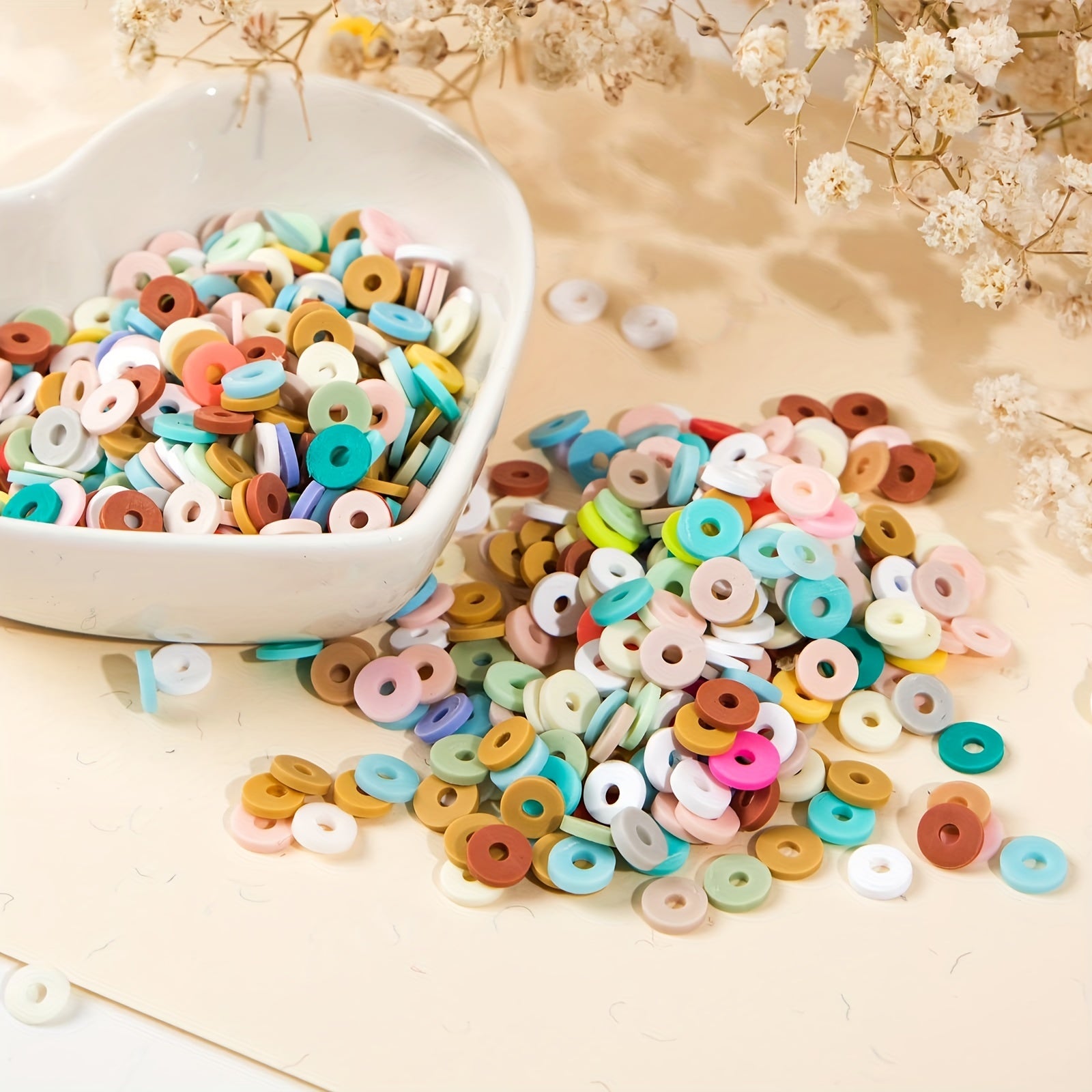 Add a pop of color to your DIY projects with these 6mm flat round soft pottery beads. Perfect for creating earrings, bracelets, necklaces, and other accessories.