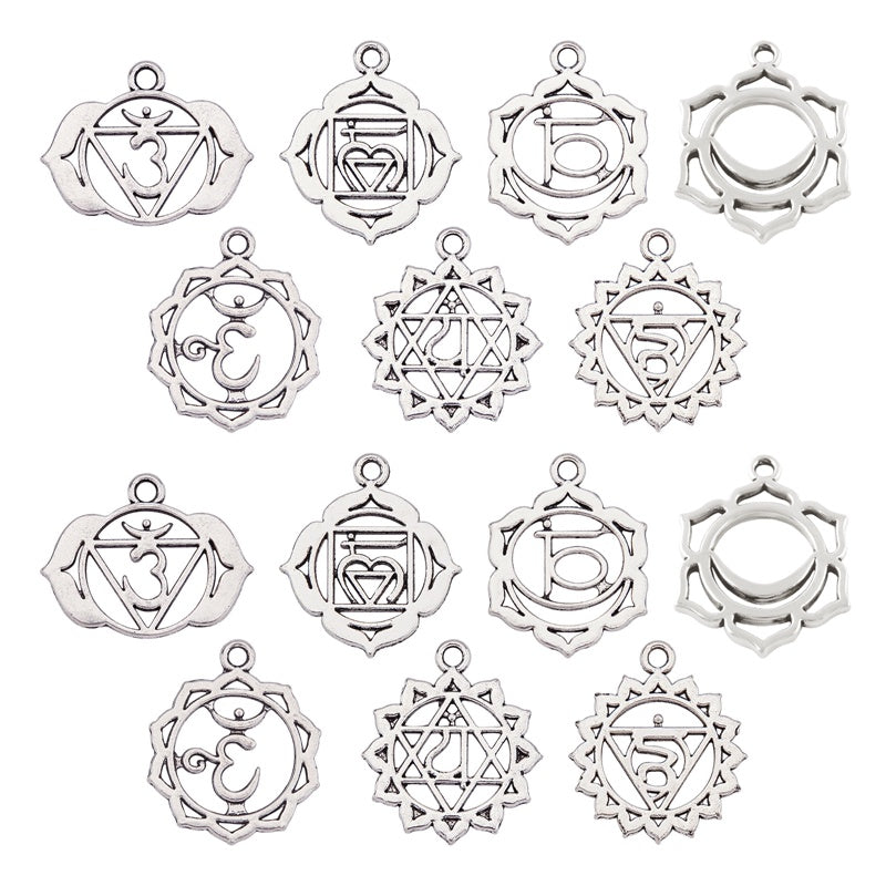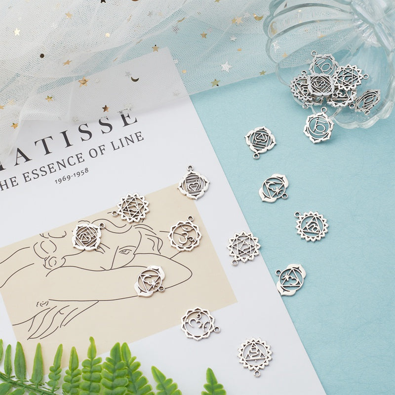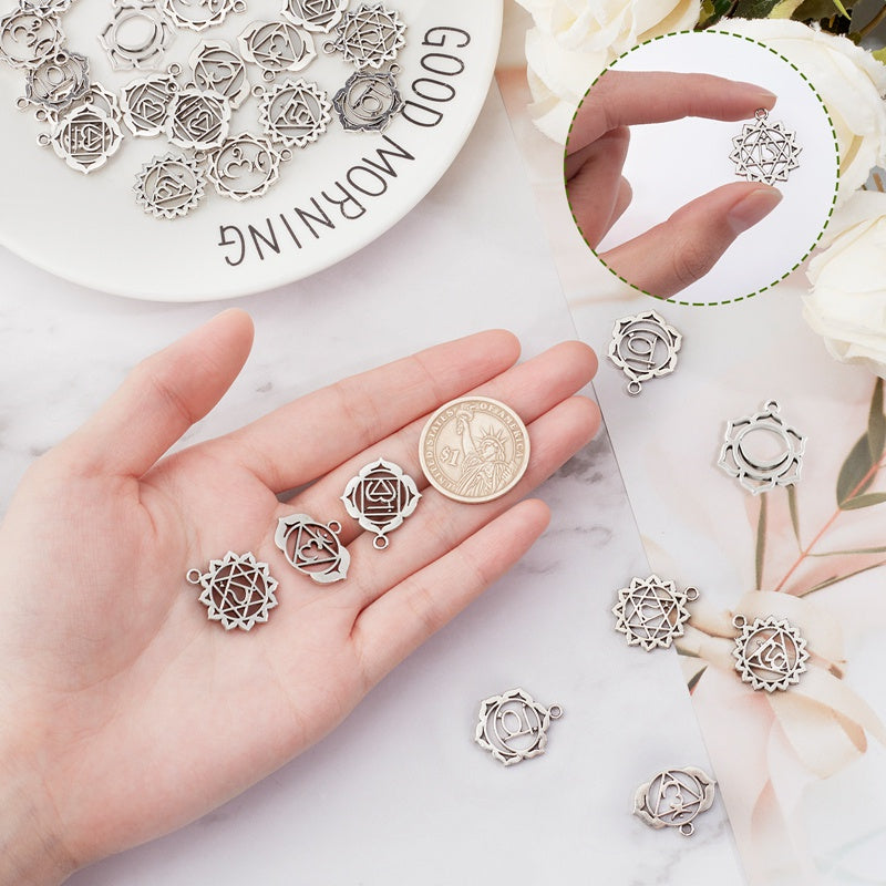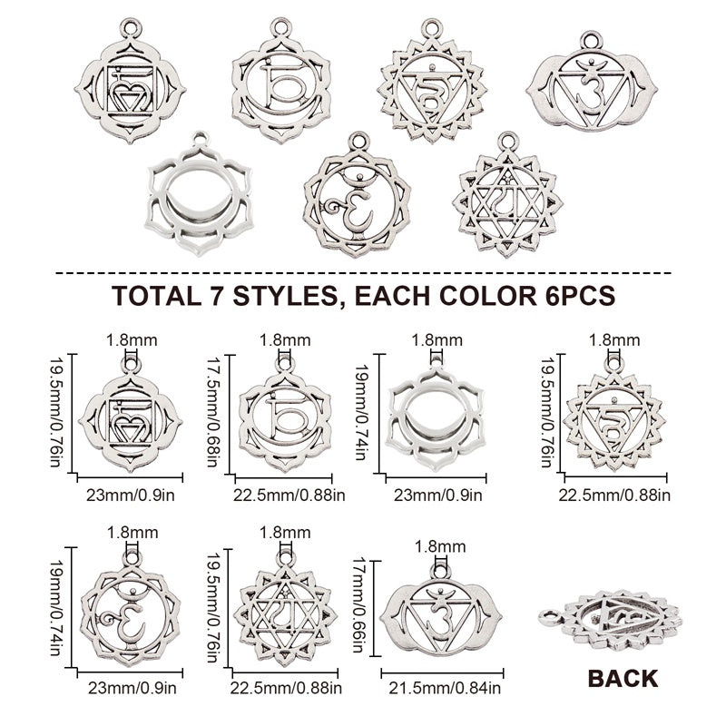 This set includes 42 antique silvery hollow flower pattern alloy pendants for making earrings, bracelets, necklaces, and other accessories. They are cadmium and lead-free.