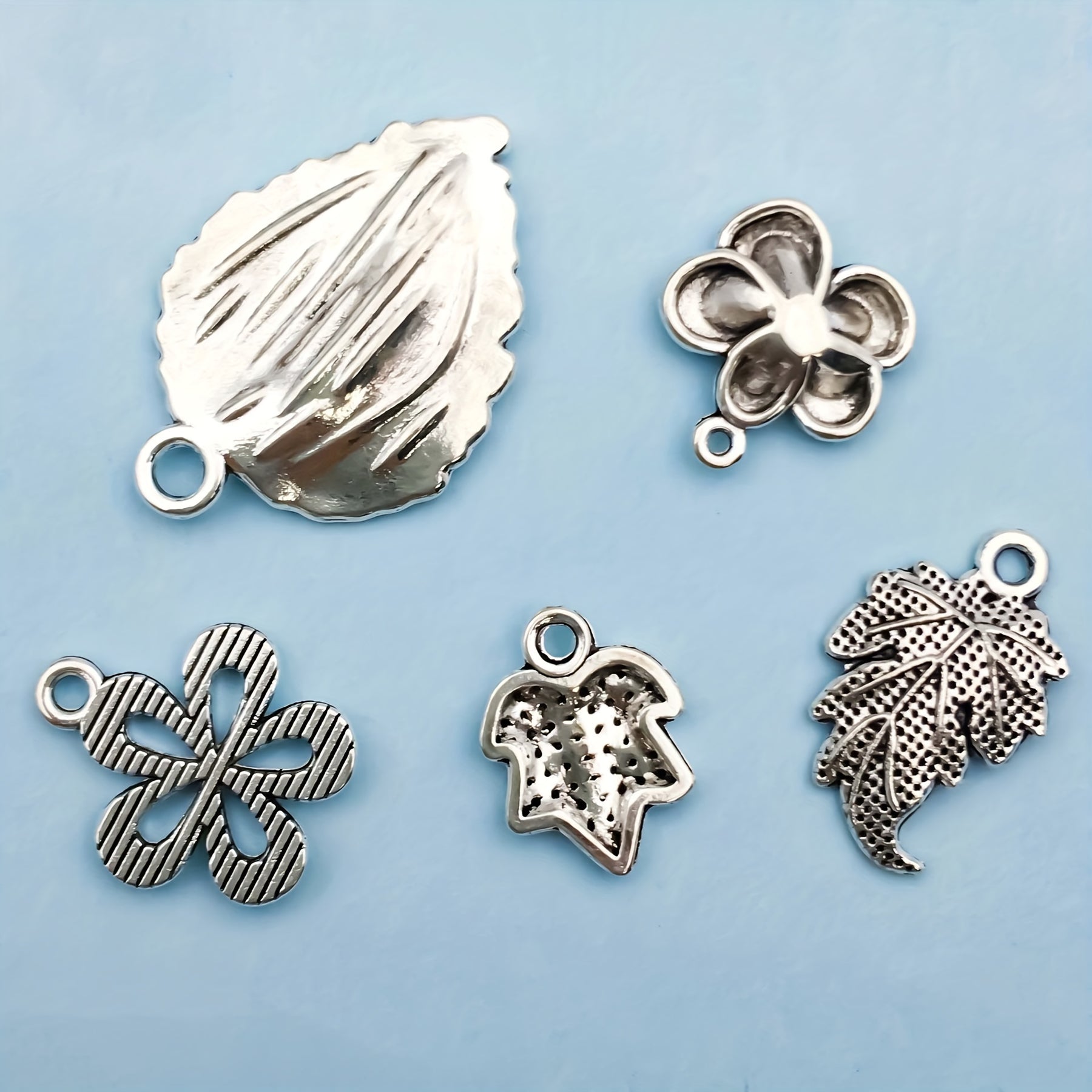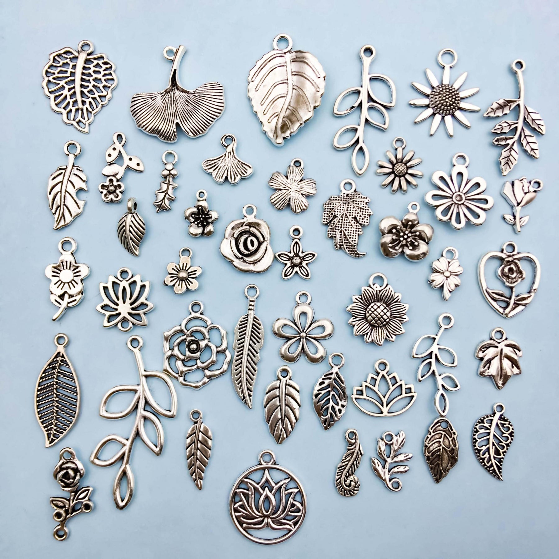 43pcs Antique Silver Leaf Flower Pendants Jewelry Making DIY
