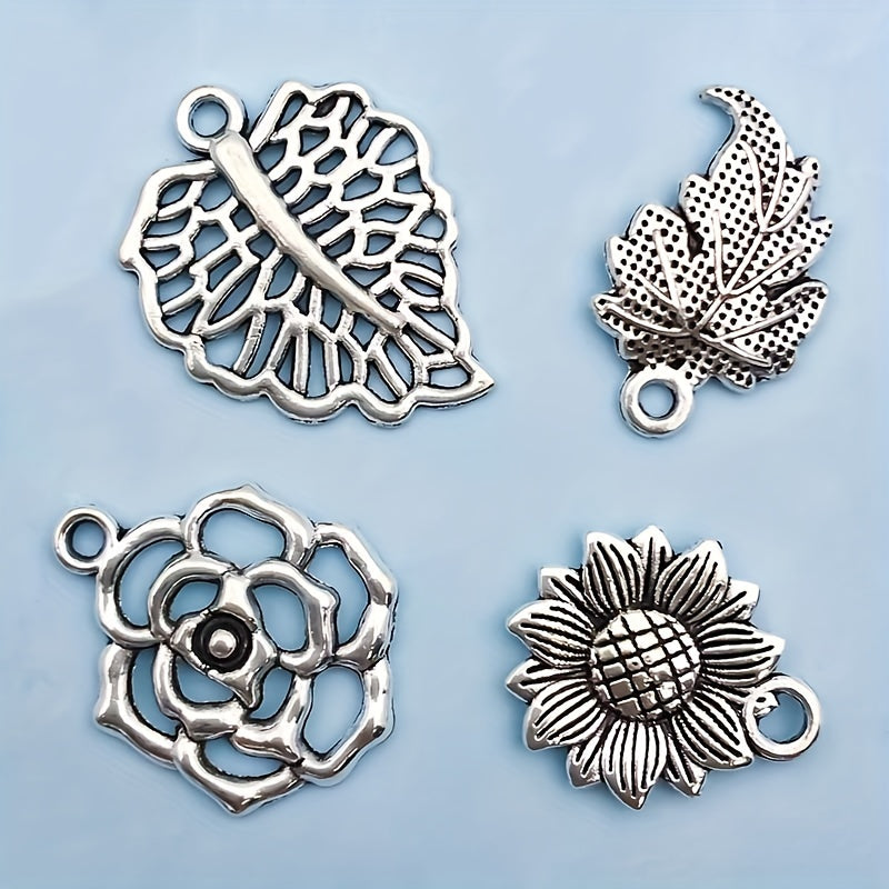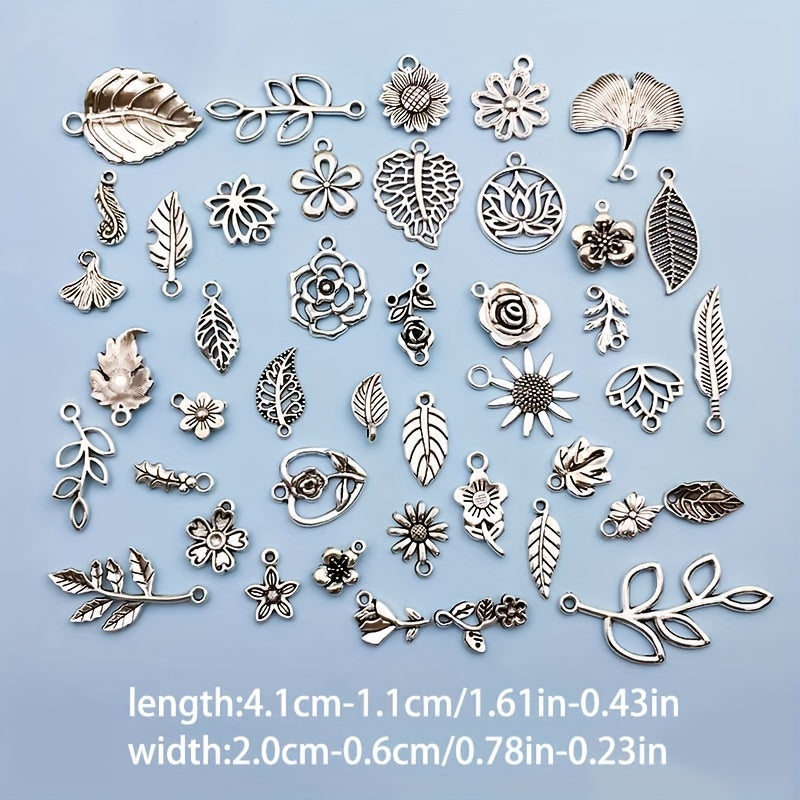 Create stunning necklaces and bracelets with this set of 43 antique silver leaf flower pendants. Perfect for a DIY jewelry project.
