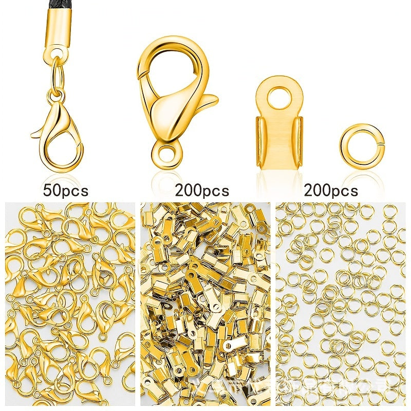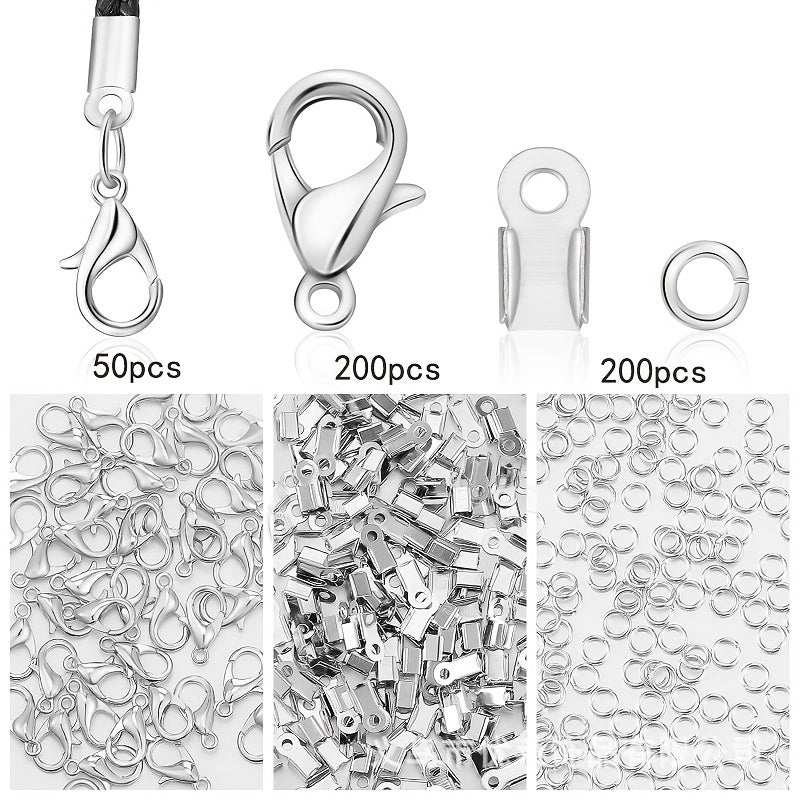Get creative with this 450 piece jewelry making kit that includes cord end caps, jump ring connectors, and lobster clasps. Perfect for crafting unique necklaces, bracelets, and earrings.