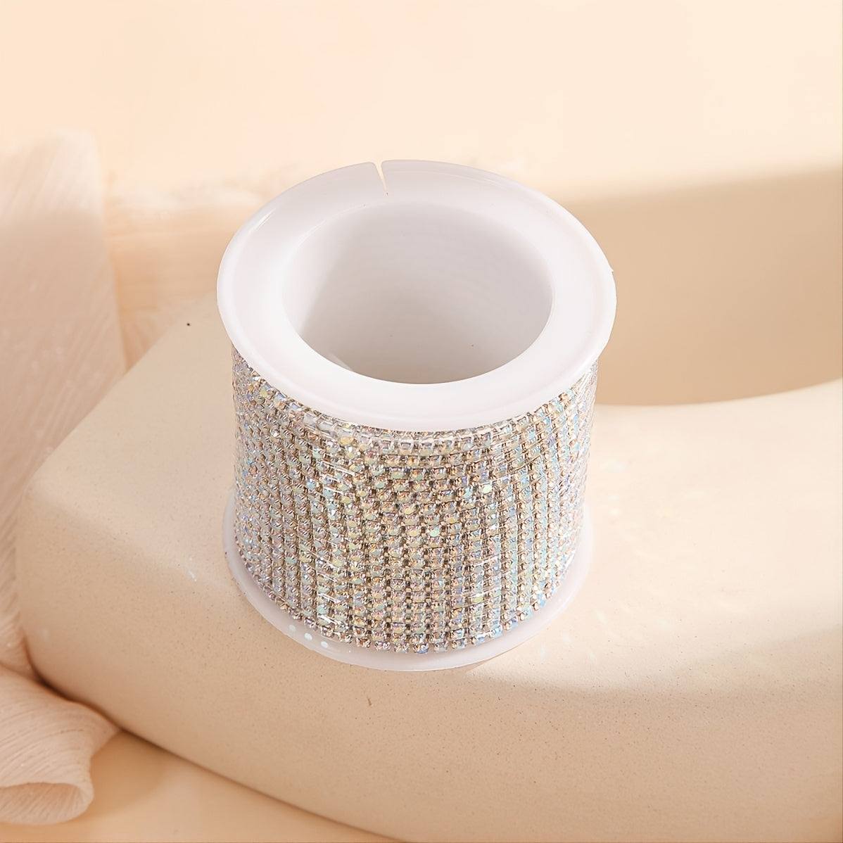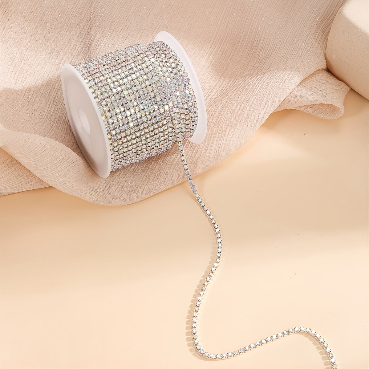 Enhance your nail art with this 450cm sparkling colorful rhinestone chain featuring a silver bottom and stone trimming. Perfect for adding a touch of glamour to your manicure.