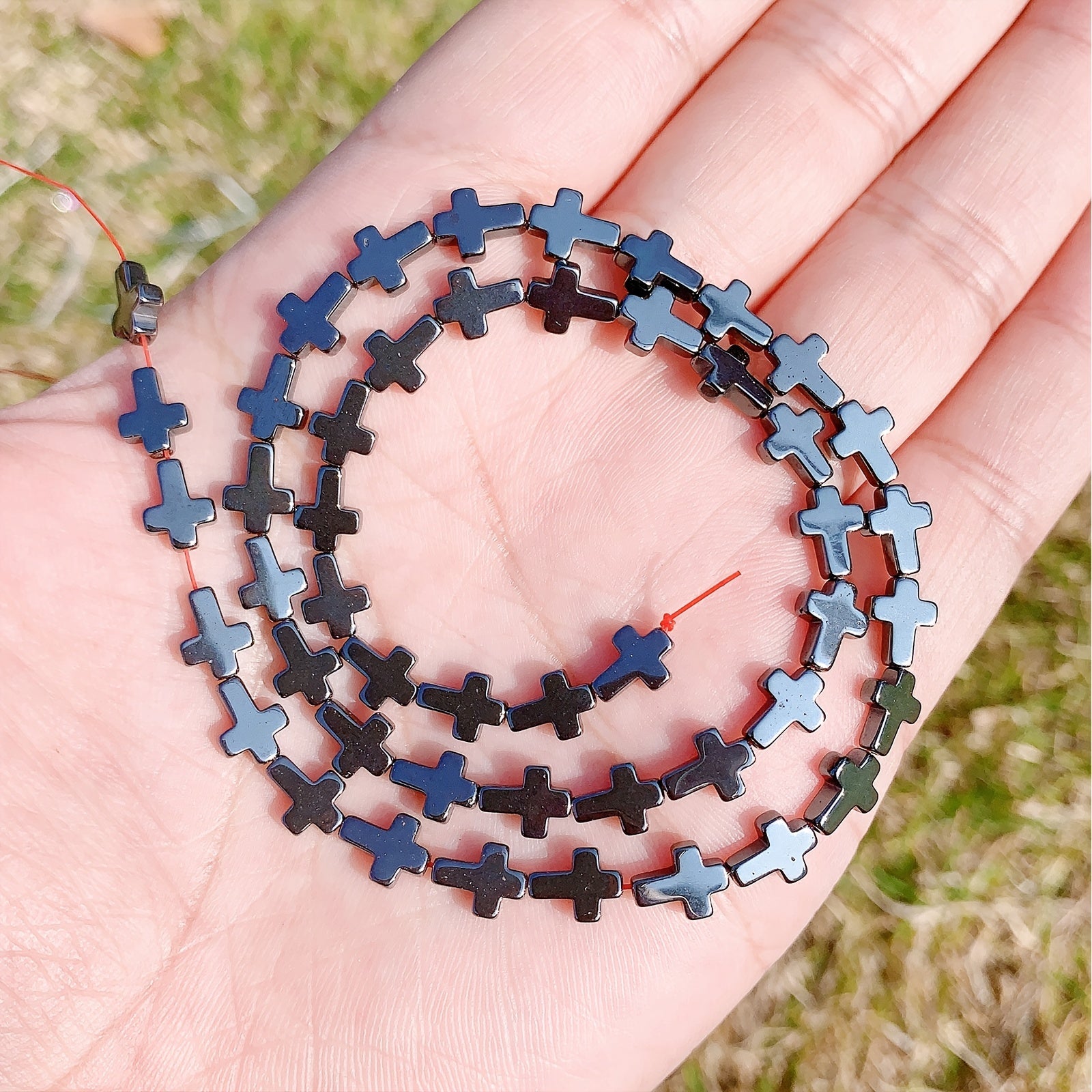 Create stunning bracelets with this set of 45 natural cross hematite loose stone beads. Perfect for your DIY jewelry projects.