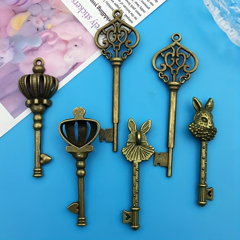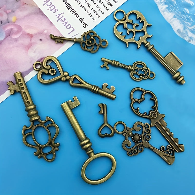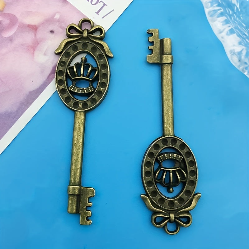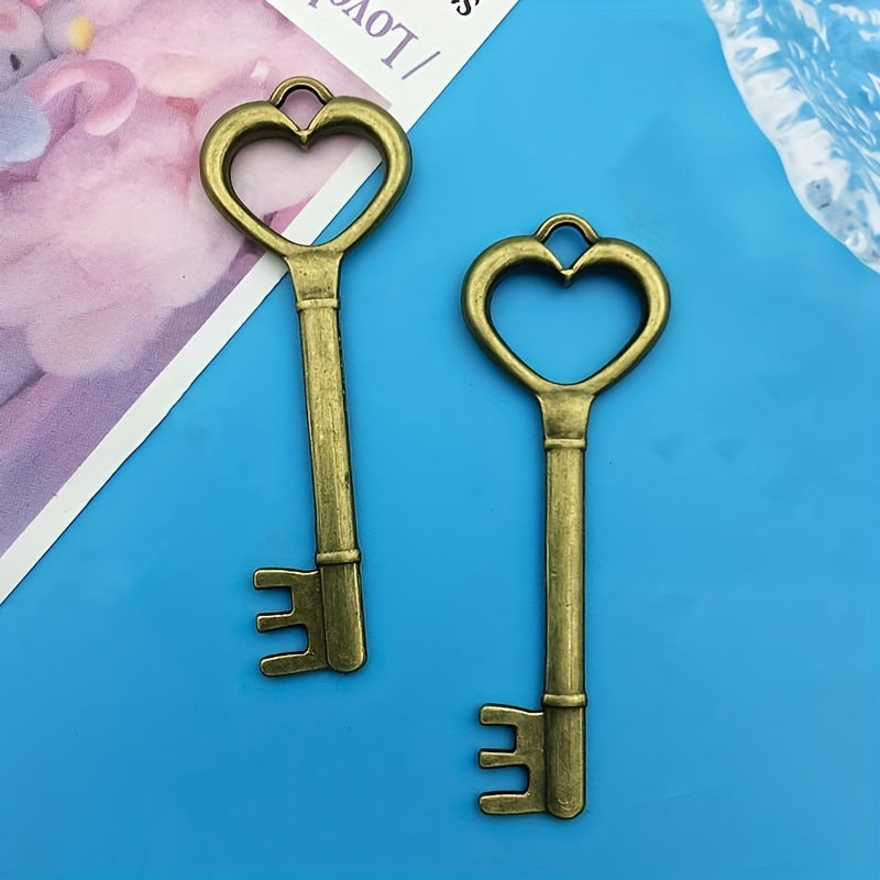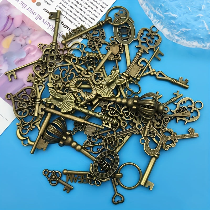 Enhance your jewelry designs with this set of 46 antique bronze key shape charms. Perfect for crafting necklaces, bracelets, and other accessories.