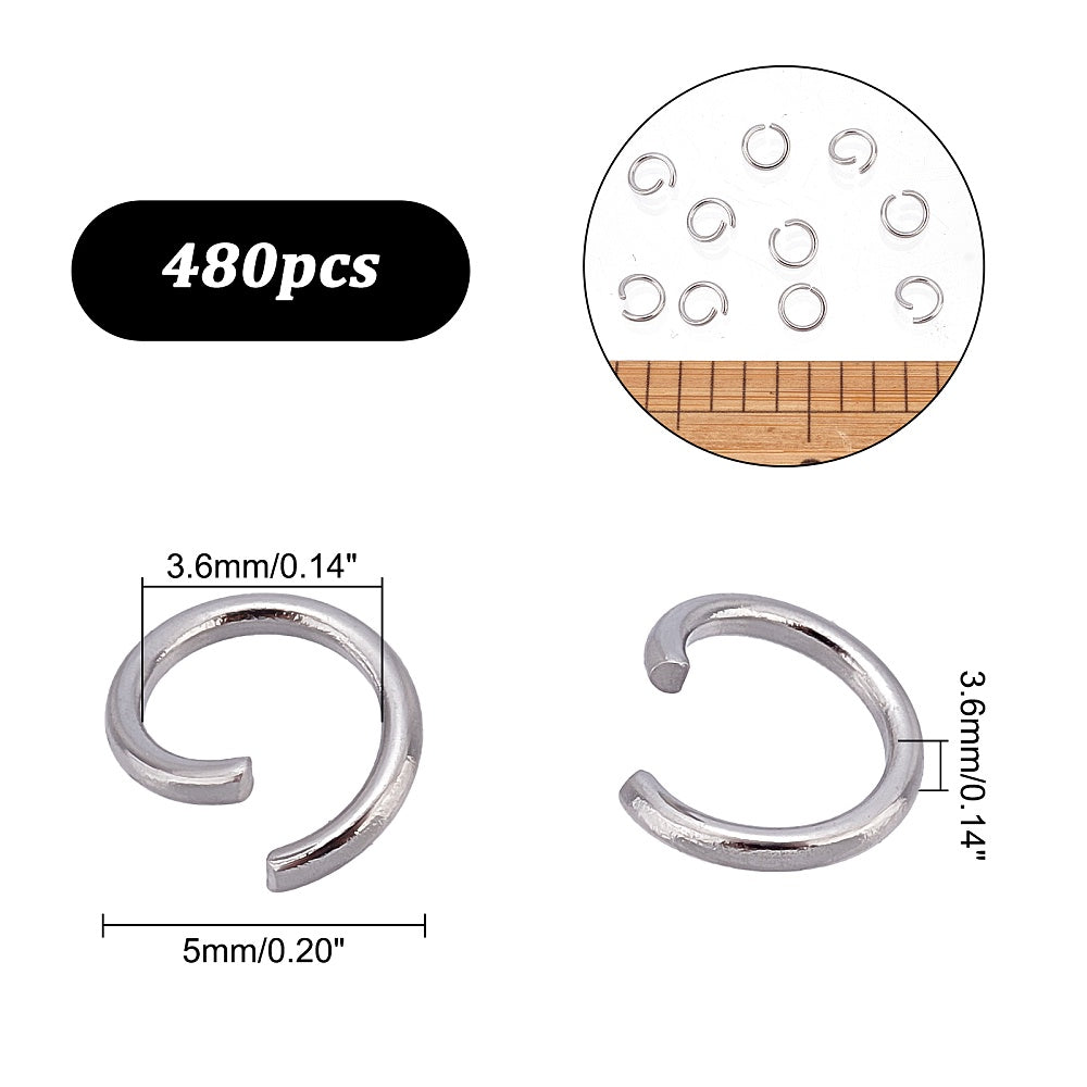 This pack includes 480 high-quality stainless steel jump rings with a gauge of 20 and a size of 5x0.7mm.