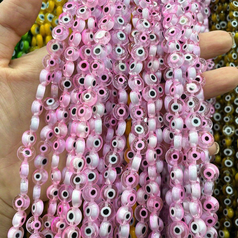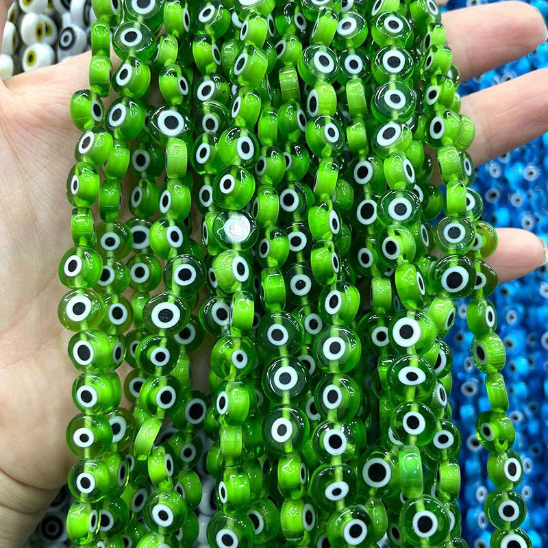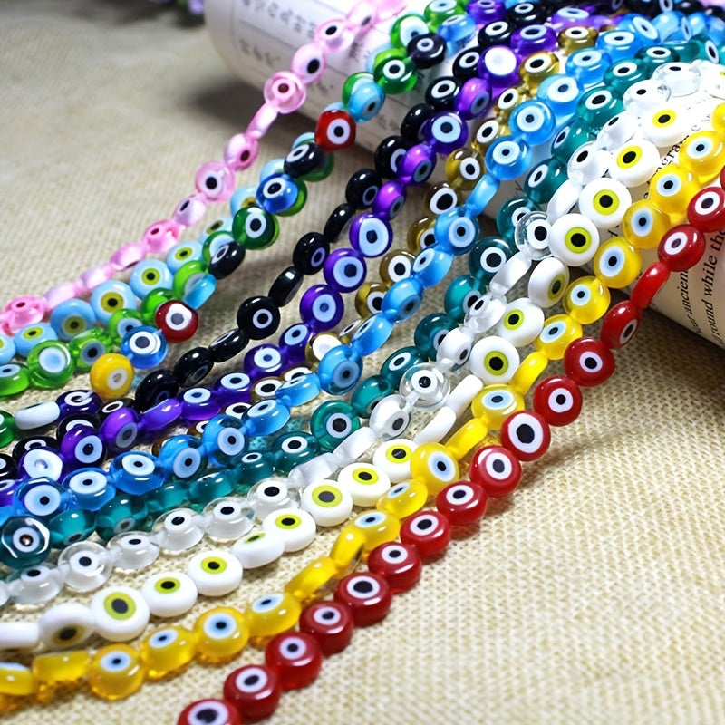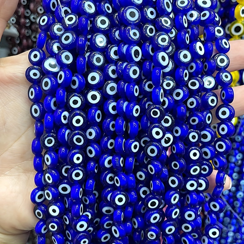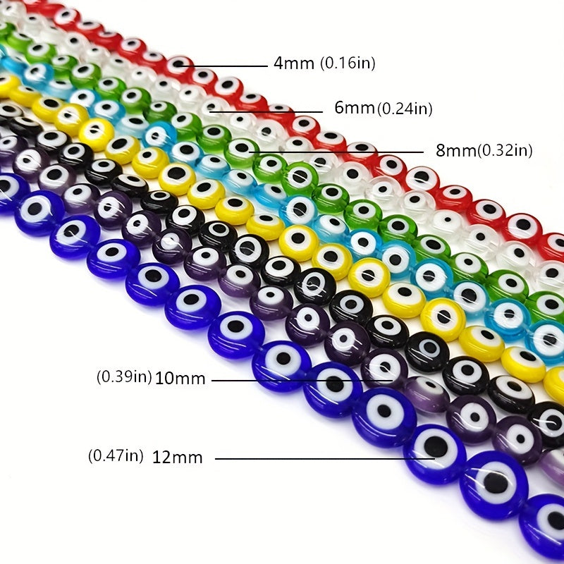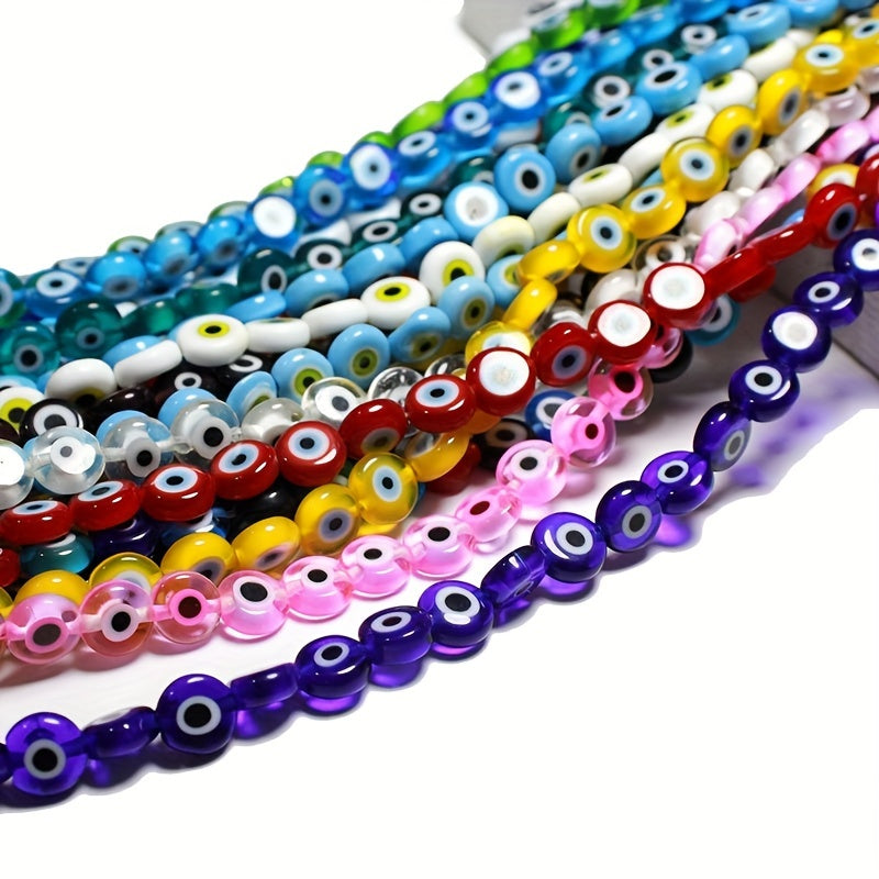 Get creative with these 8mm flat round evil eye glass beads perfect for making bracelets, necklaces, and charms. The set includes 48 loose spacer beads for all your jewelry accessories needs.