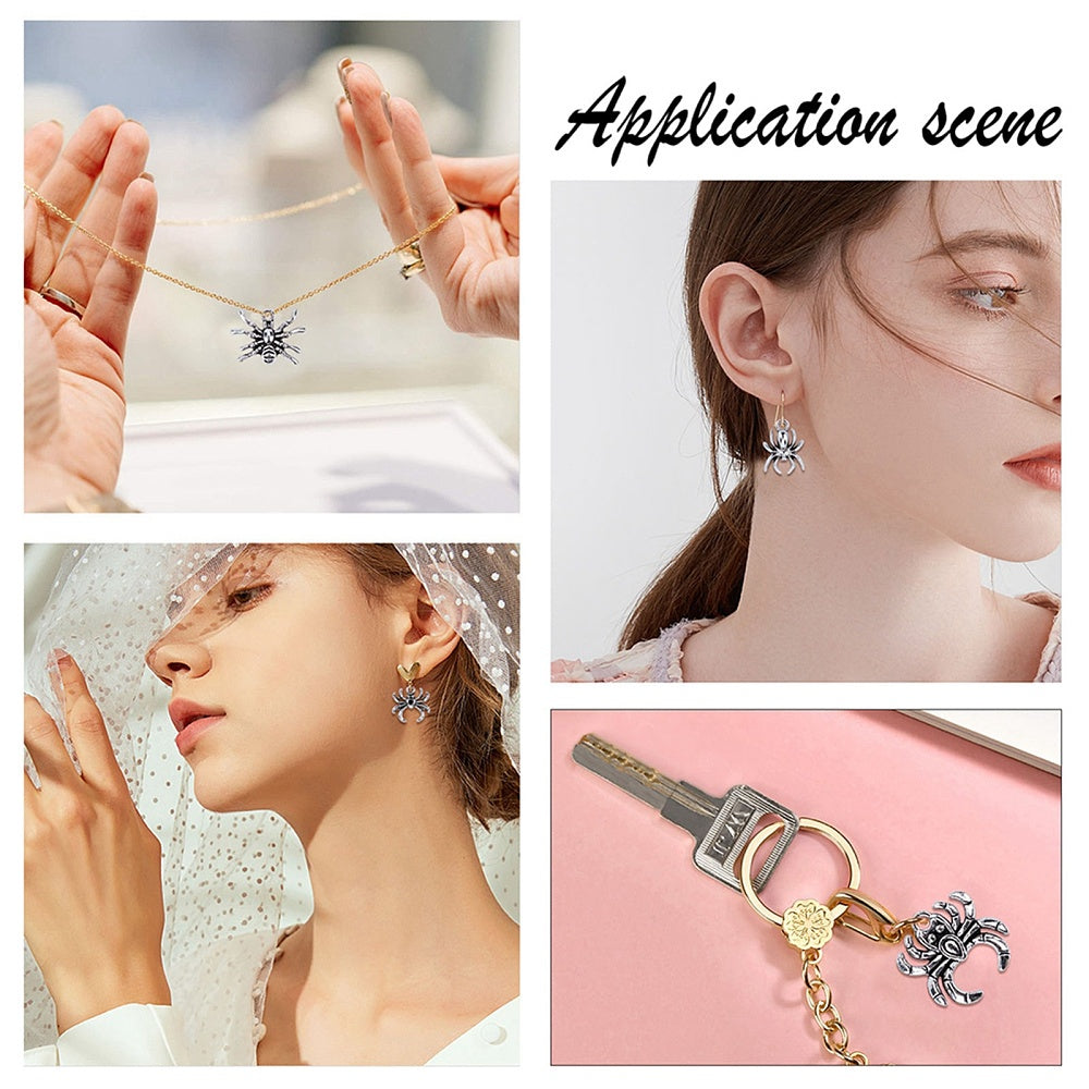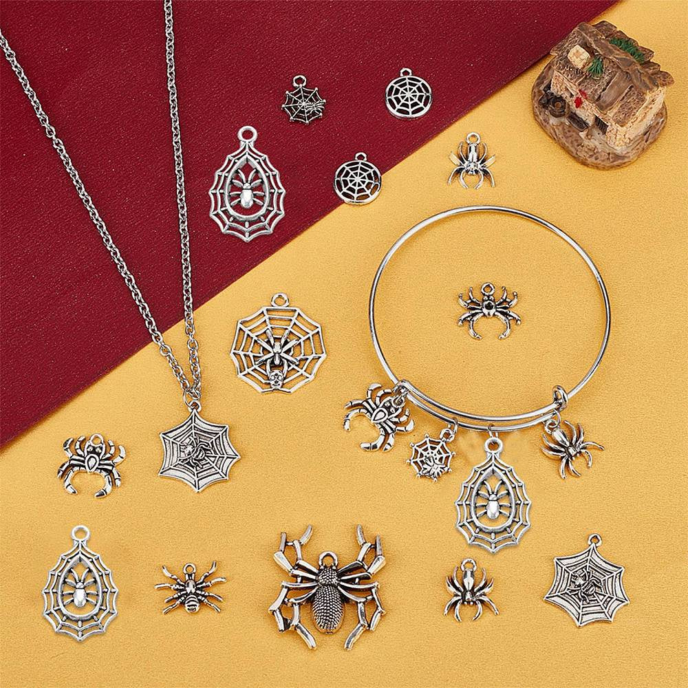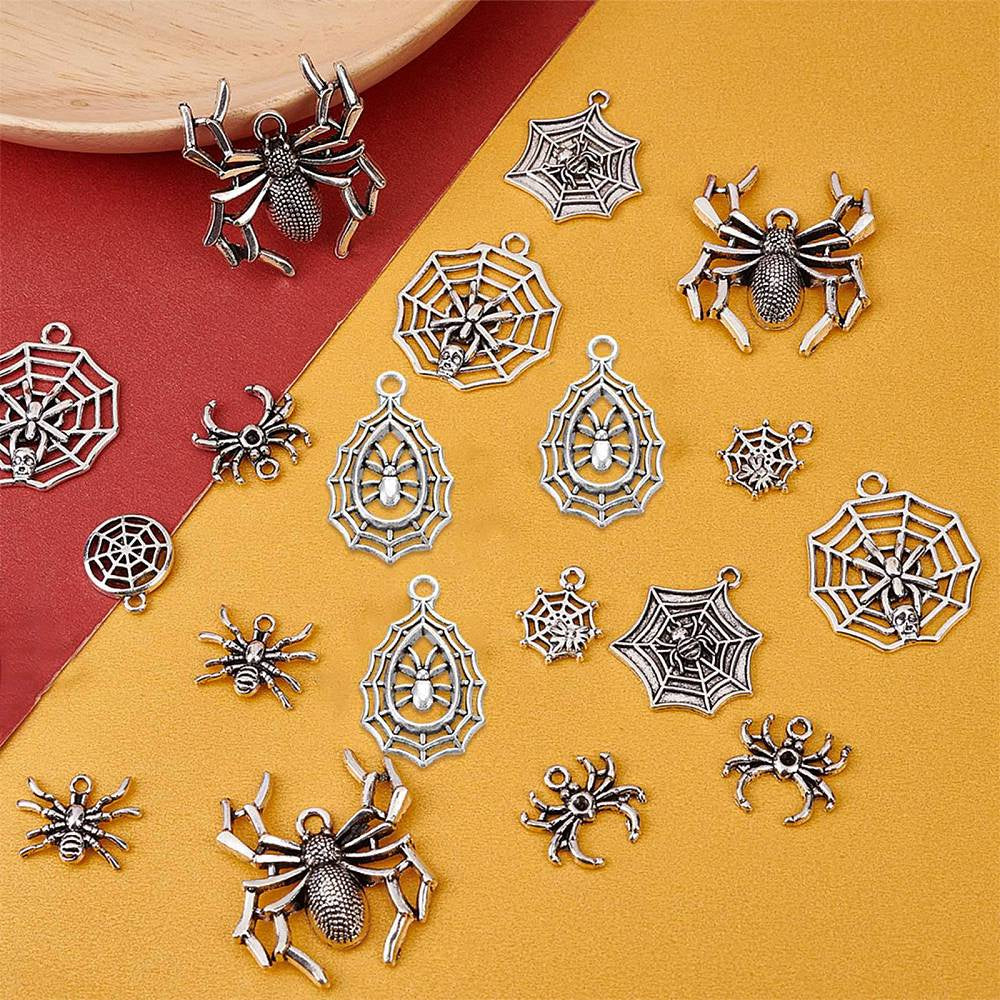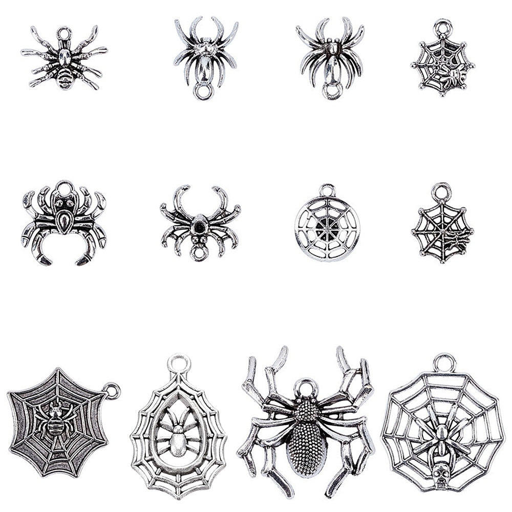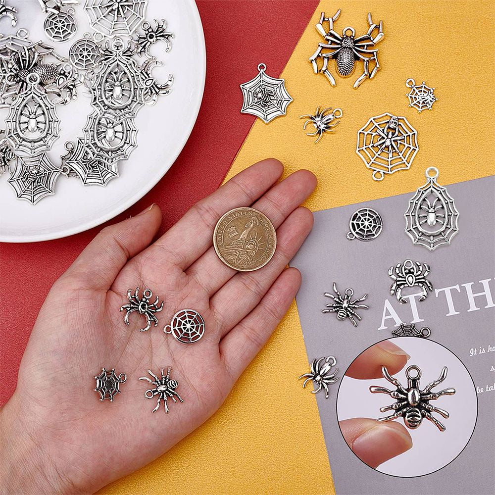This set includes 48 pieces of silvery spider series alloy pendants in 12 different styles, perfect for creating earrings, bracelets, necklaces, and other accessories.