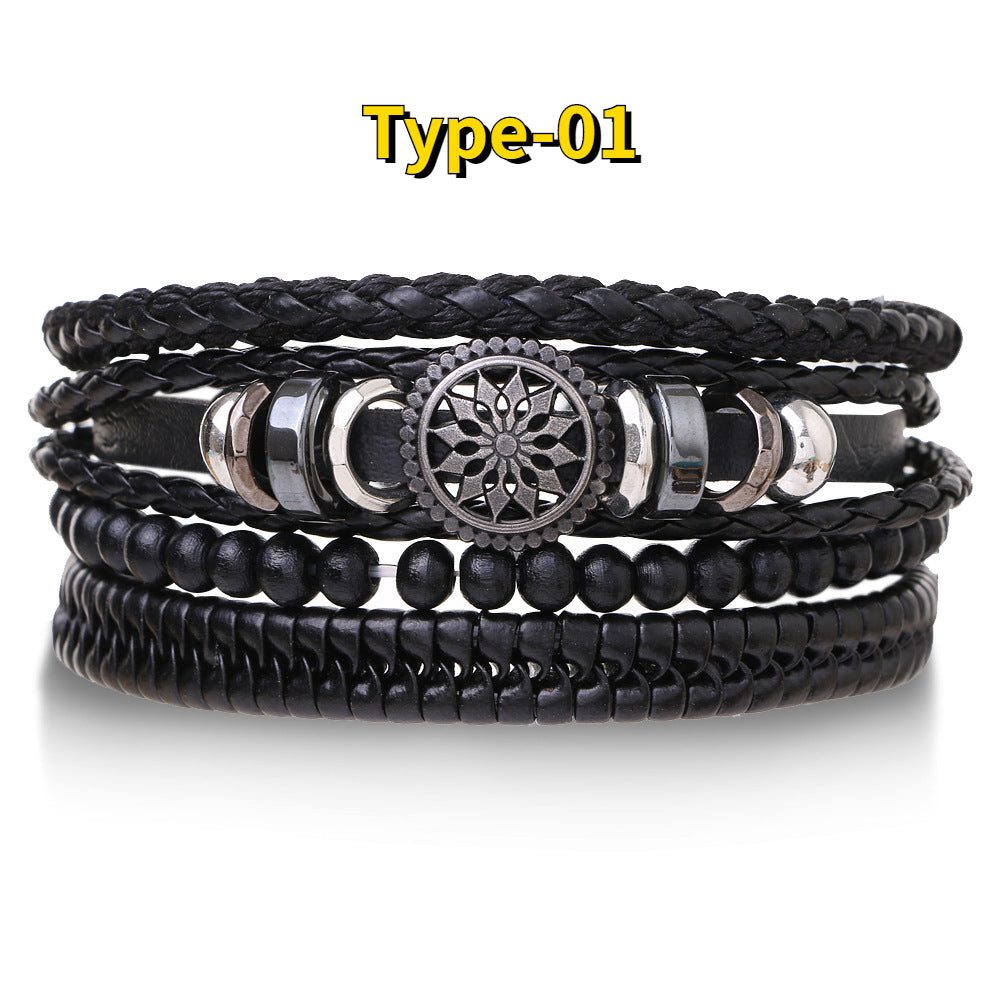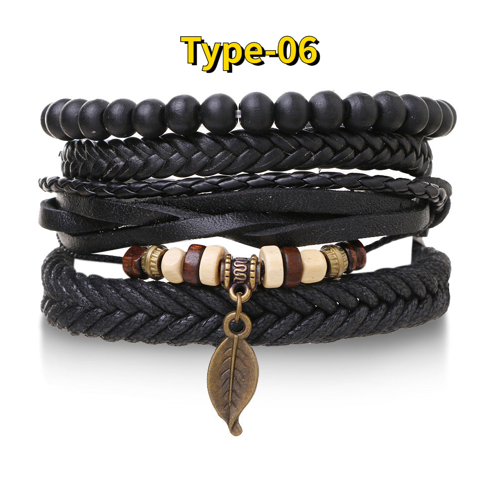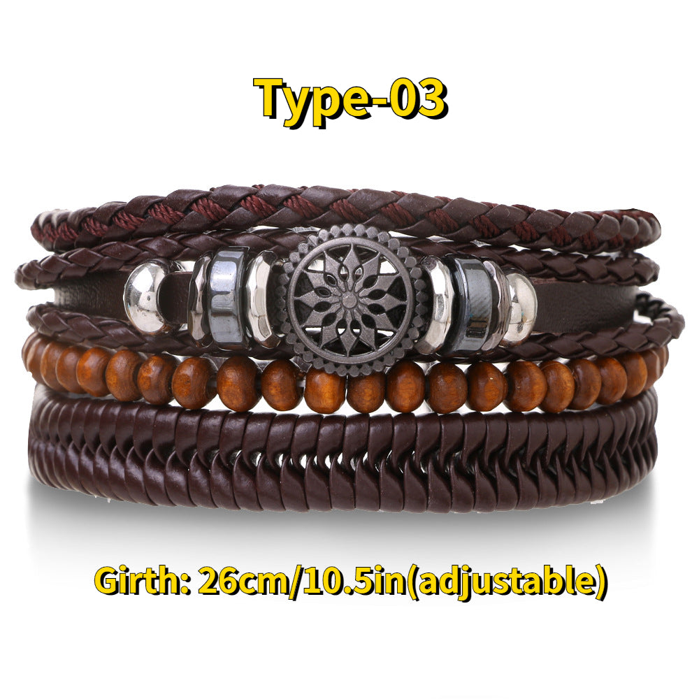 Add a touch of vintage charm to your style with this set of 4 braided leather bracelets. Each bracelet features wood beads and ethnic tribal accents, creating a unique and eye-catching look. Perfect for everyday wear or special occasions.