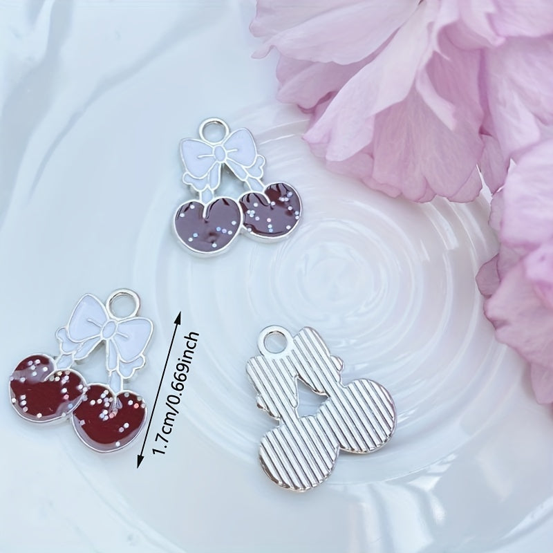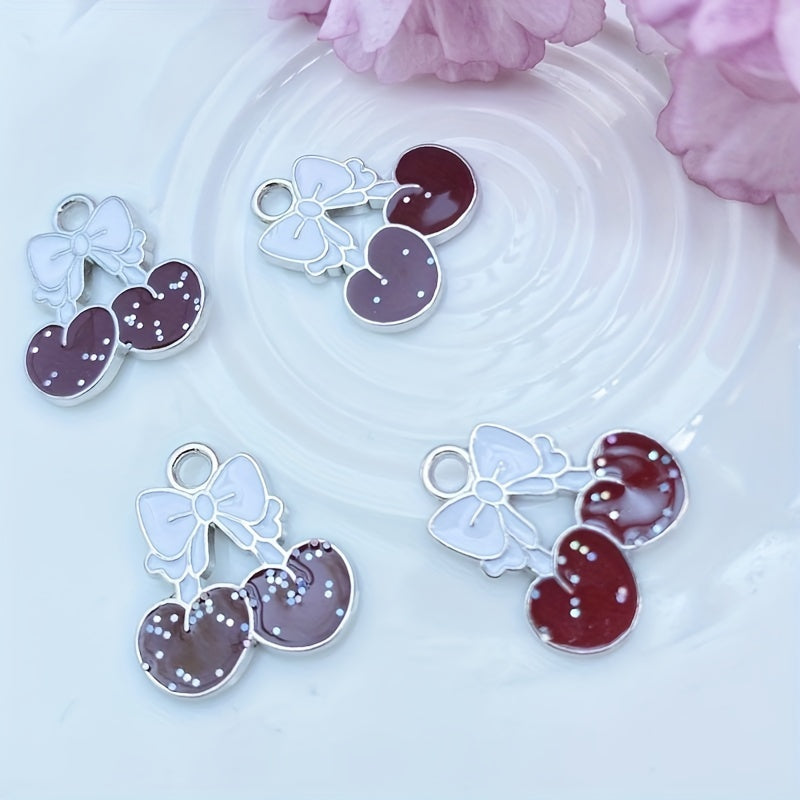 Enhance your jewelry collection with this set of 4 cherry drop pendant pieces. Perfect for creating your own unique necklace or bracelet designs.