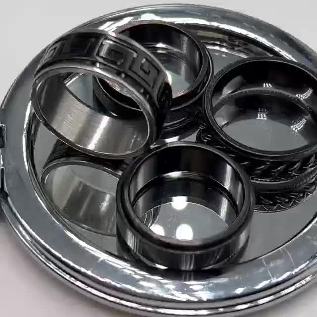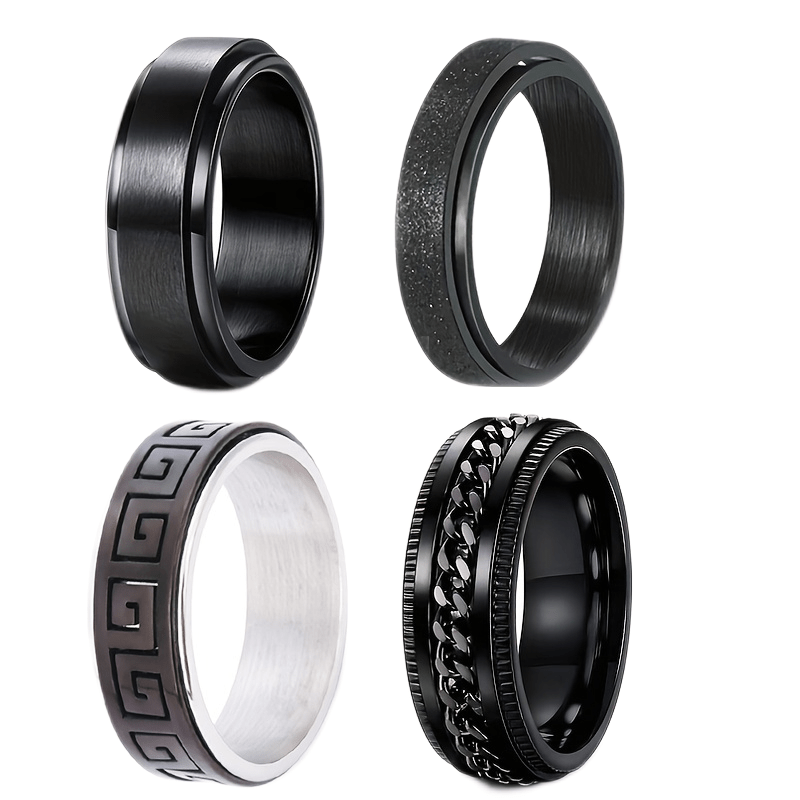 4pcs Stainless Steel Rotatable Rings Set - Great Wall Pattern