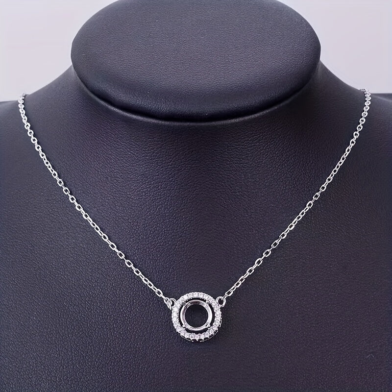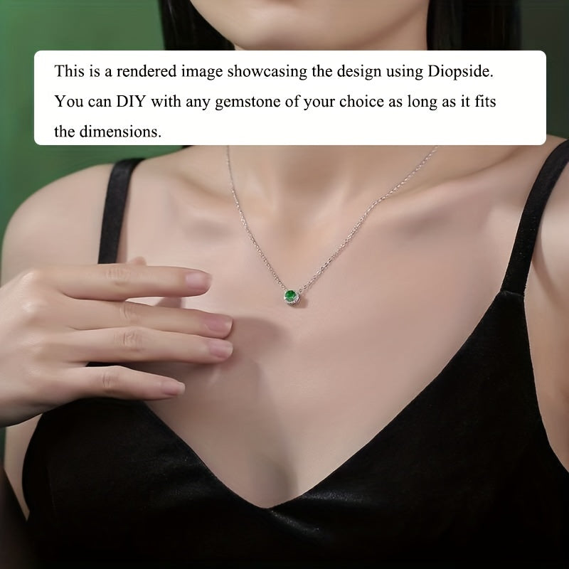 Get creative with this solid 925 sterling silver pendant charm tray, featuring a 5 8MM CZ stone round prong bezel setting. Comes with a 15'' necklace chain for a complete DIY jewelry project.