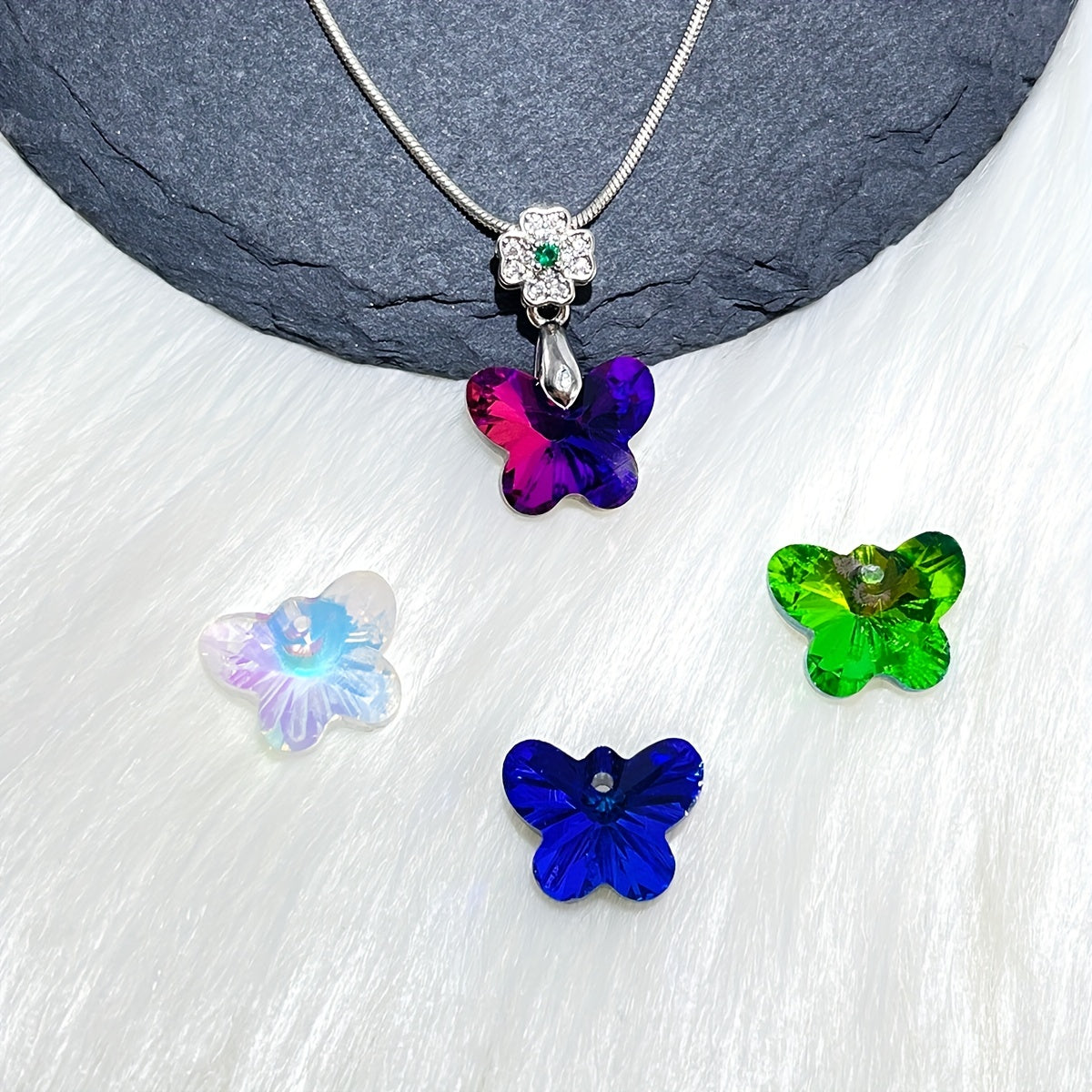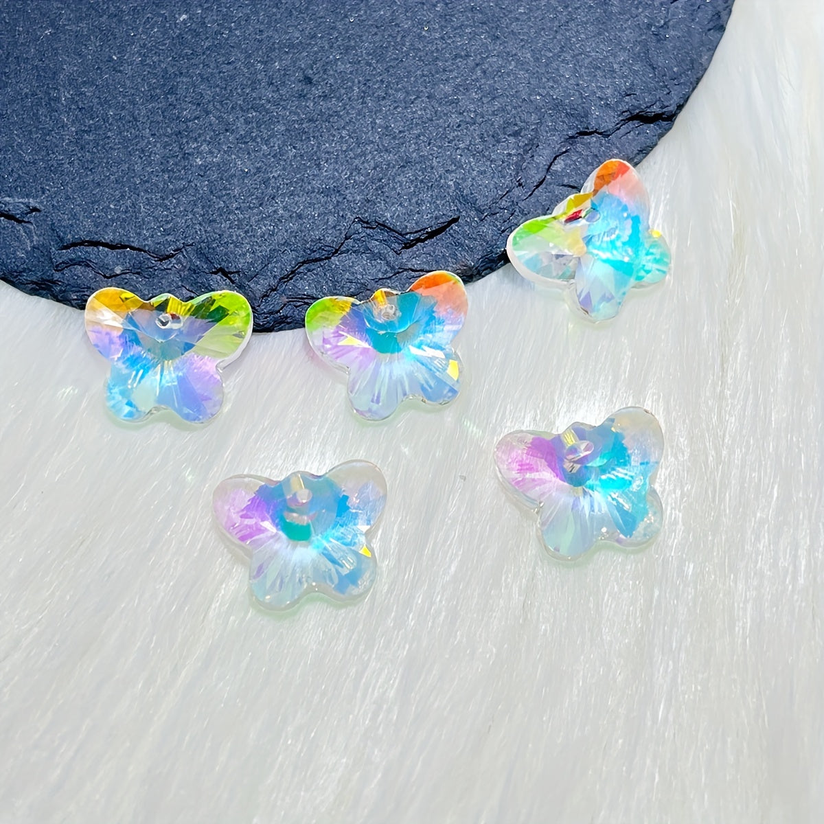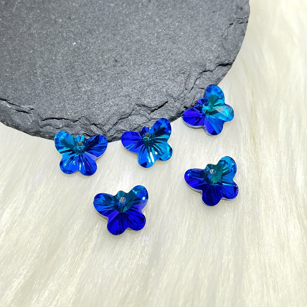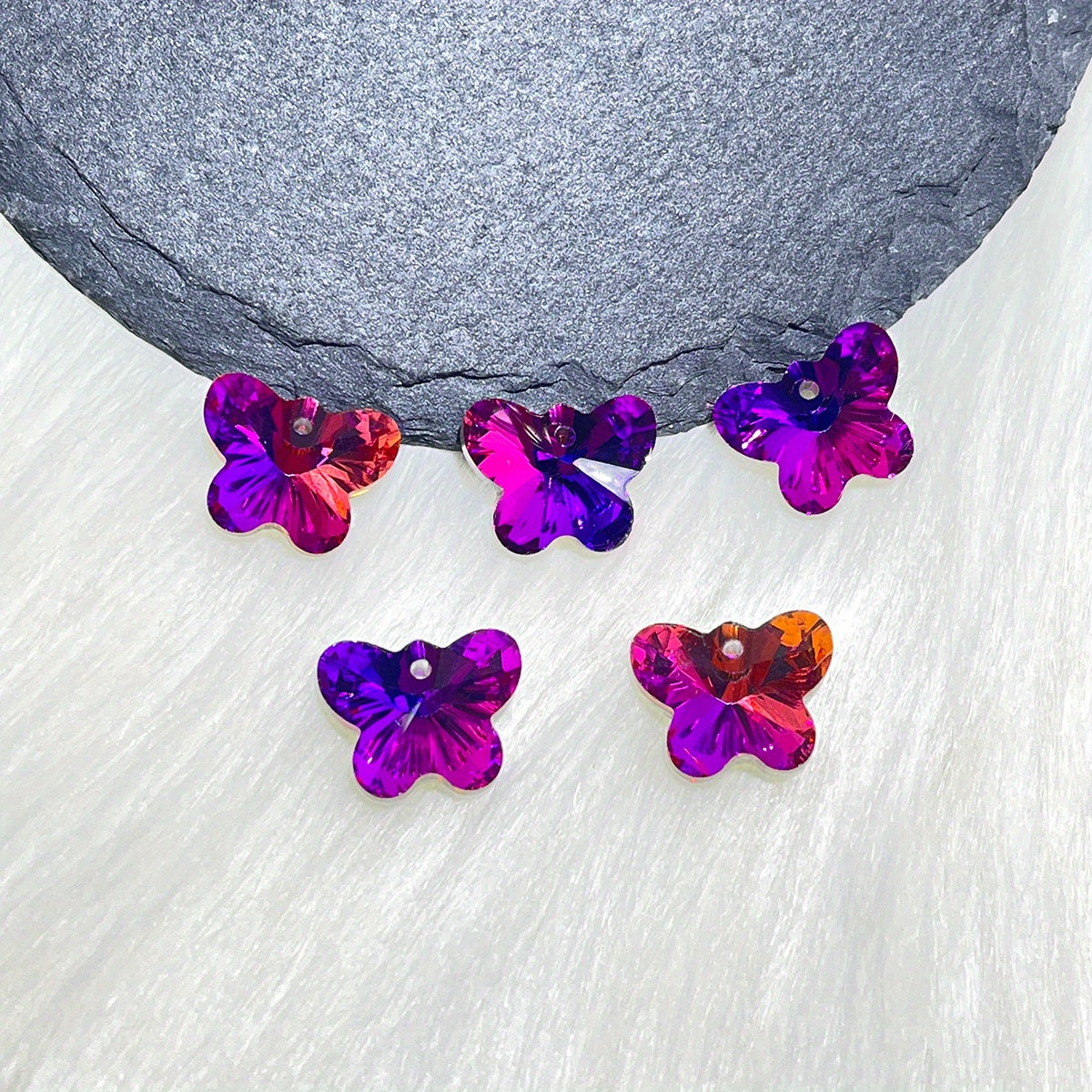 Enhance your jewelry creations with this pack of 5 bright red crystal butterfly pendants. Great for adding colorful and elegant touches to your earrings or other accessories.
