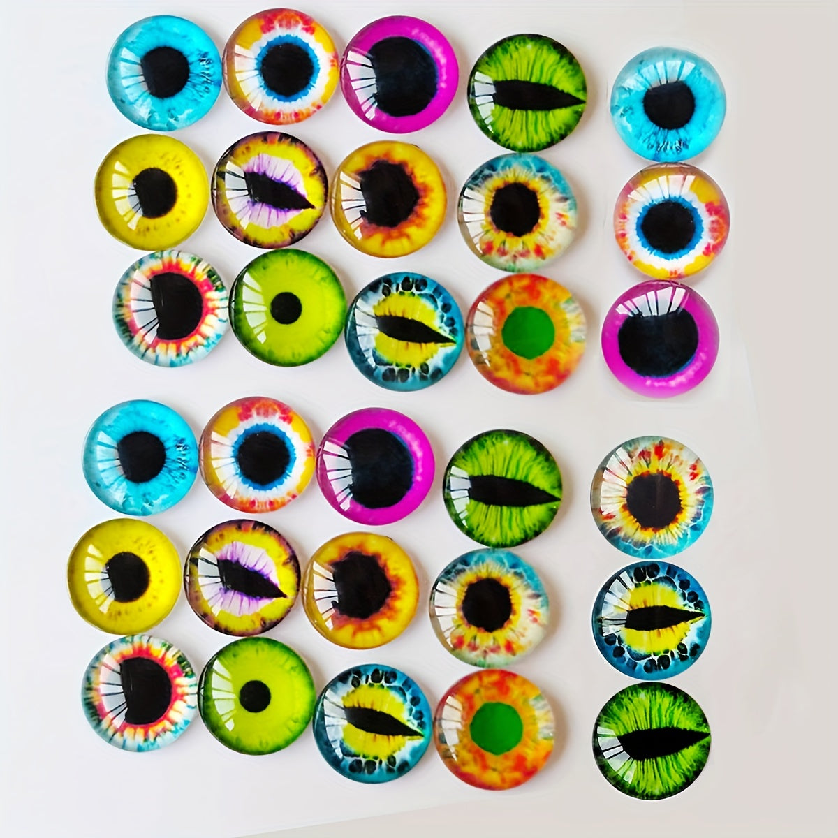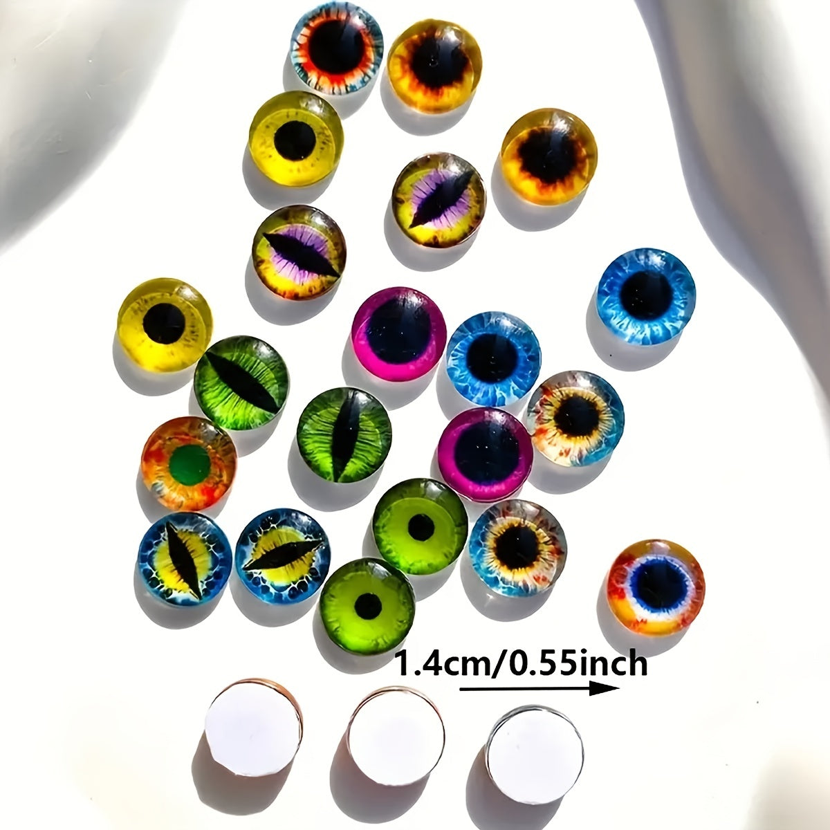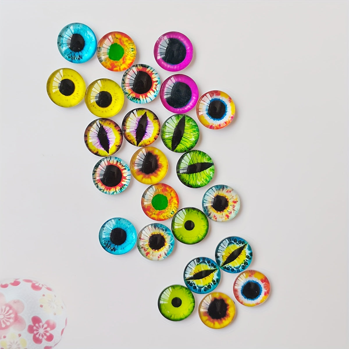 Enhance your creative projects with these 14mm mixed glass convex animal eye beads. Ideal for making rings, necklaces, earrings, puppets, dolls, and more.