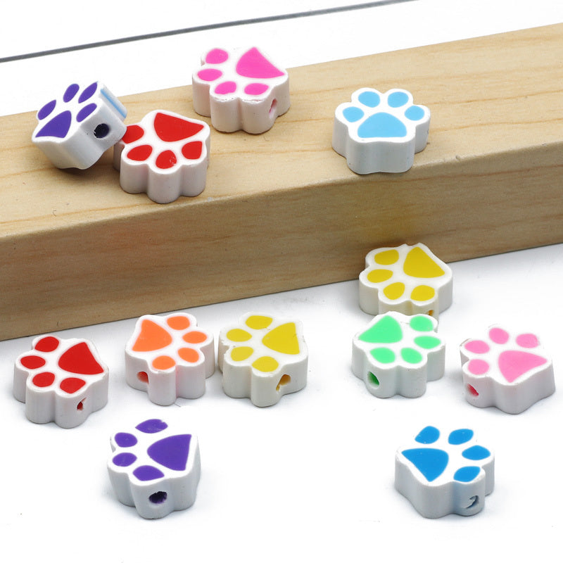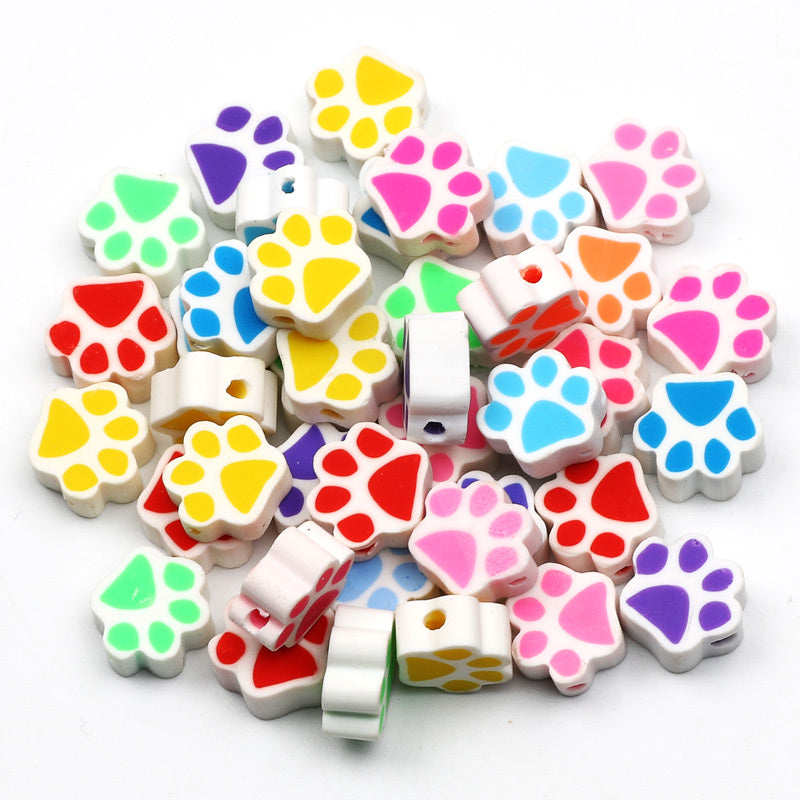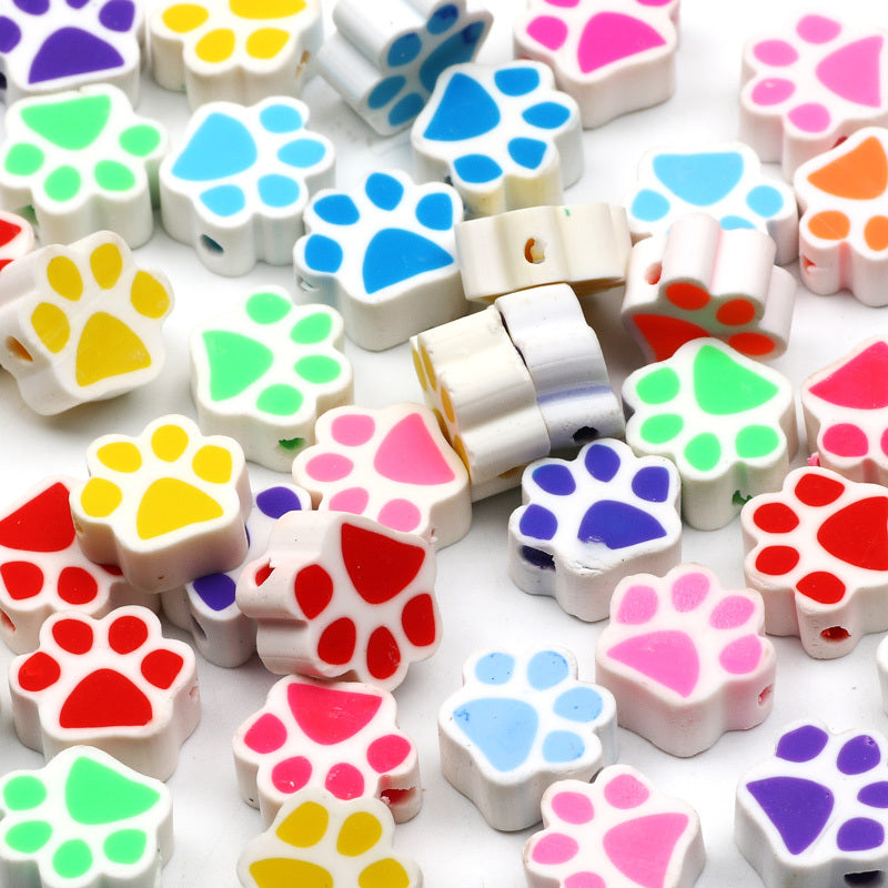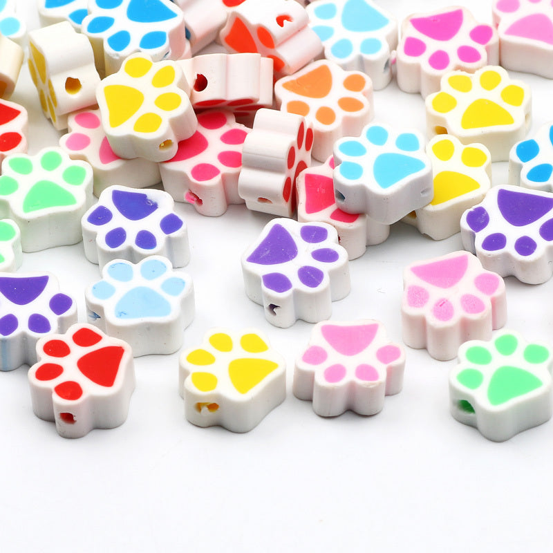 This set includes 50 mixed cartoon cat paw polymer clay loose spacer beads ideal for various jewelry making projects.