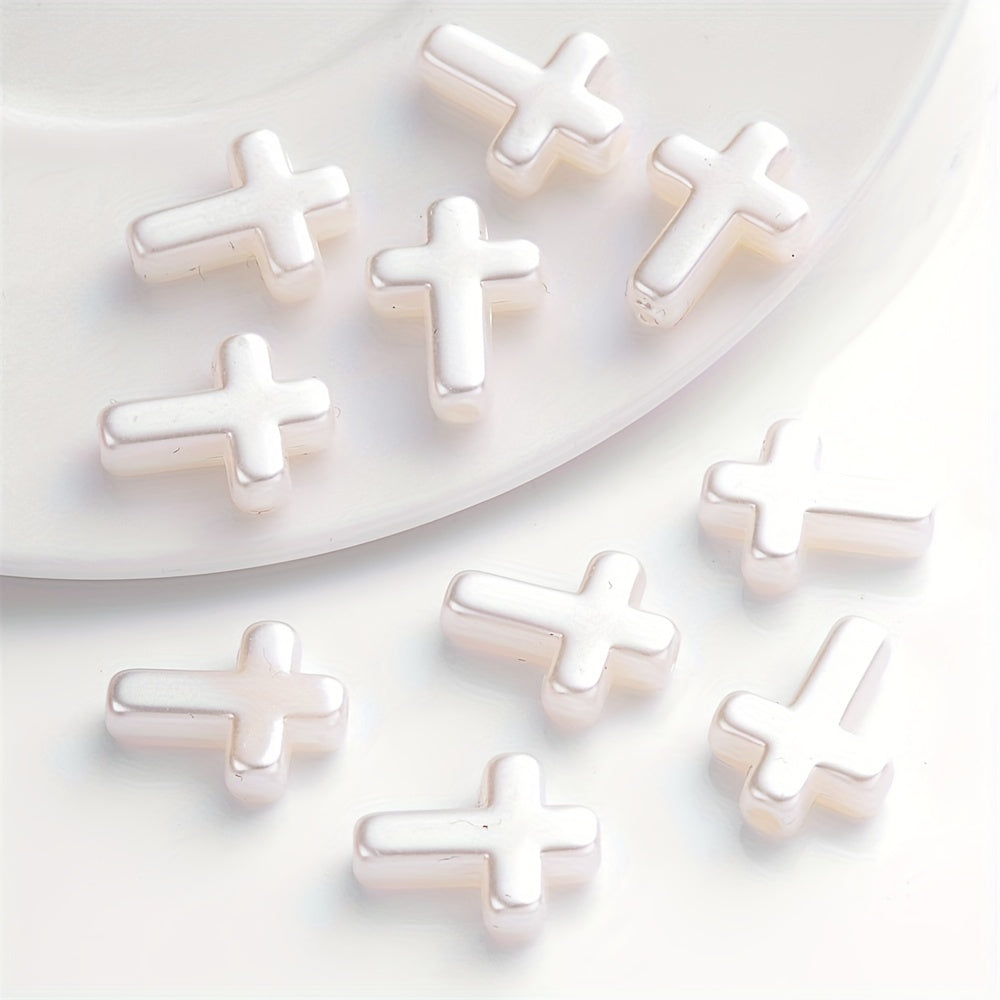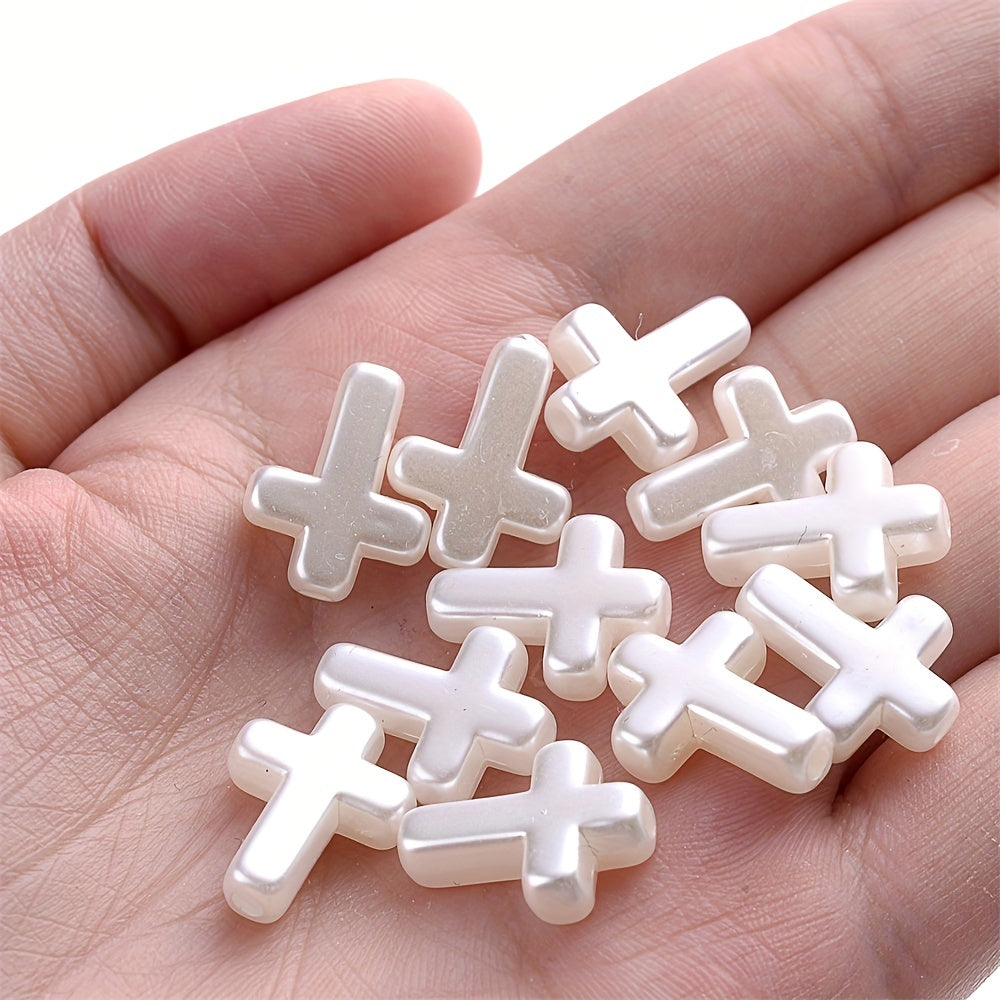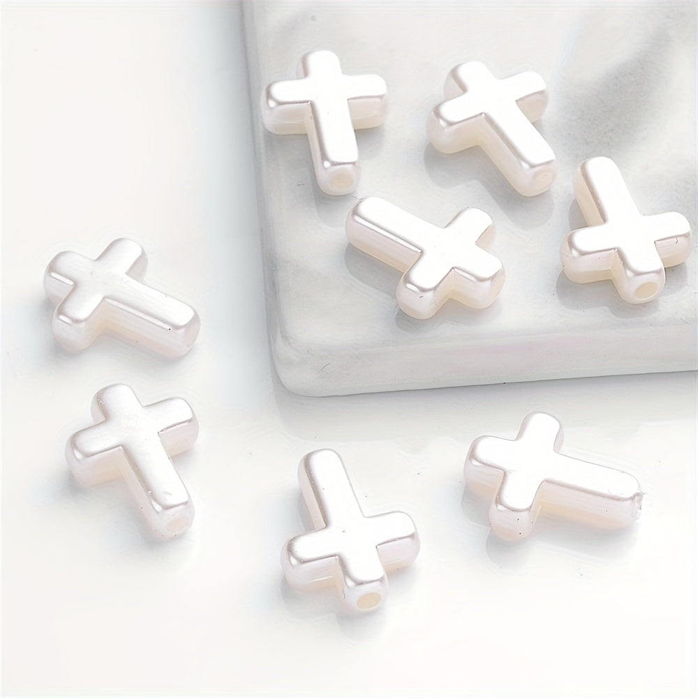 Enhance your jewelry making projects with this set of 50 pearly cross acrylic beads. These versatile spacer beads are perfect for creating unique designs.
