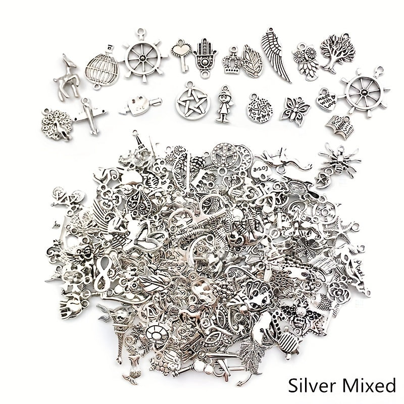 Enhance your jewelry making with this set of 50 mixed vintage metal animal bird charms beads. Perfect for creating unique bracelets, pendants, and necklaces.