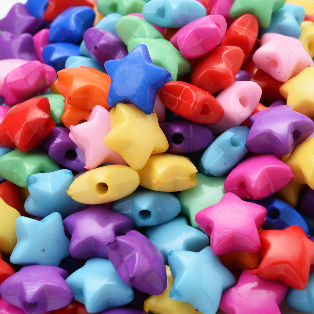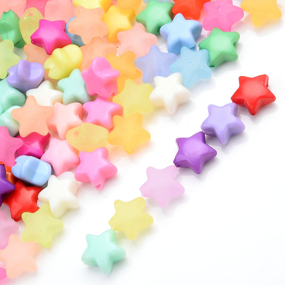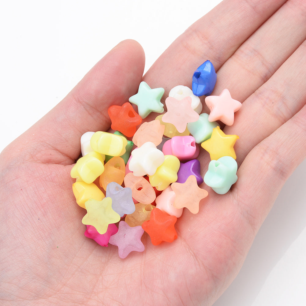 Create stunning jewelry with this pack of 50 acrylic star beads. Perfect for bracelets, necklaces, hairpins, and other crafts.