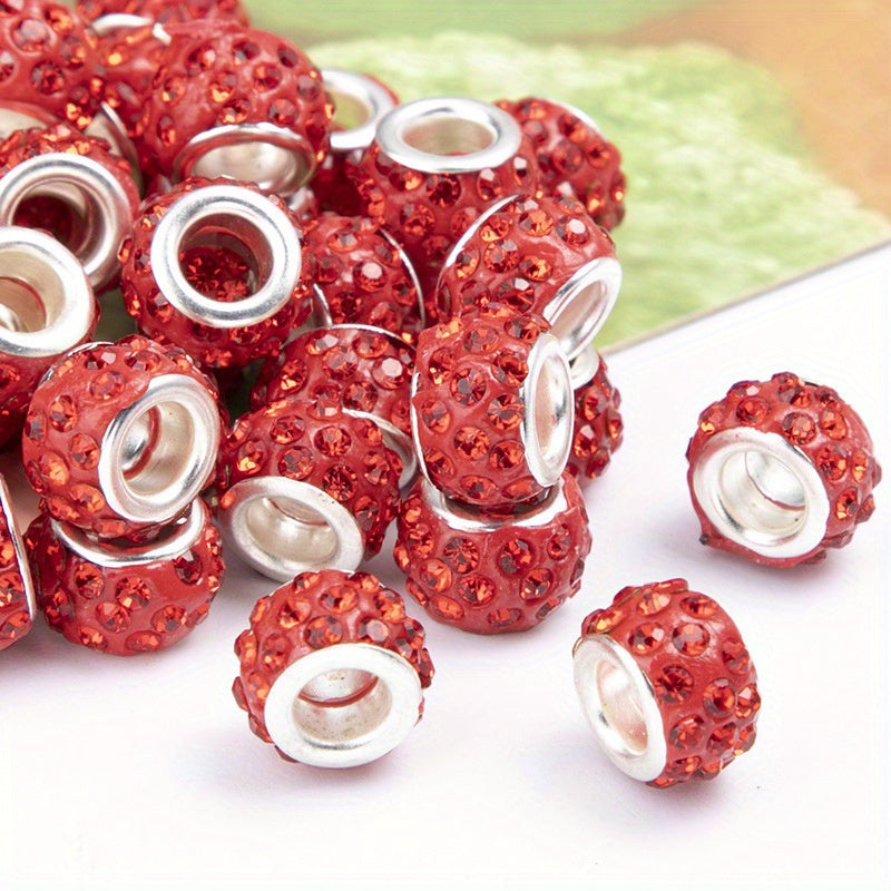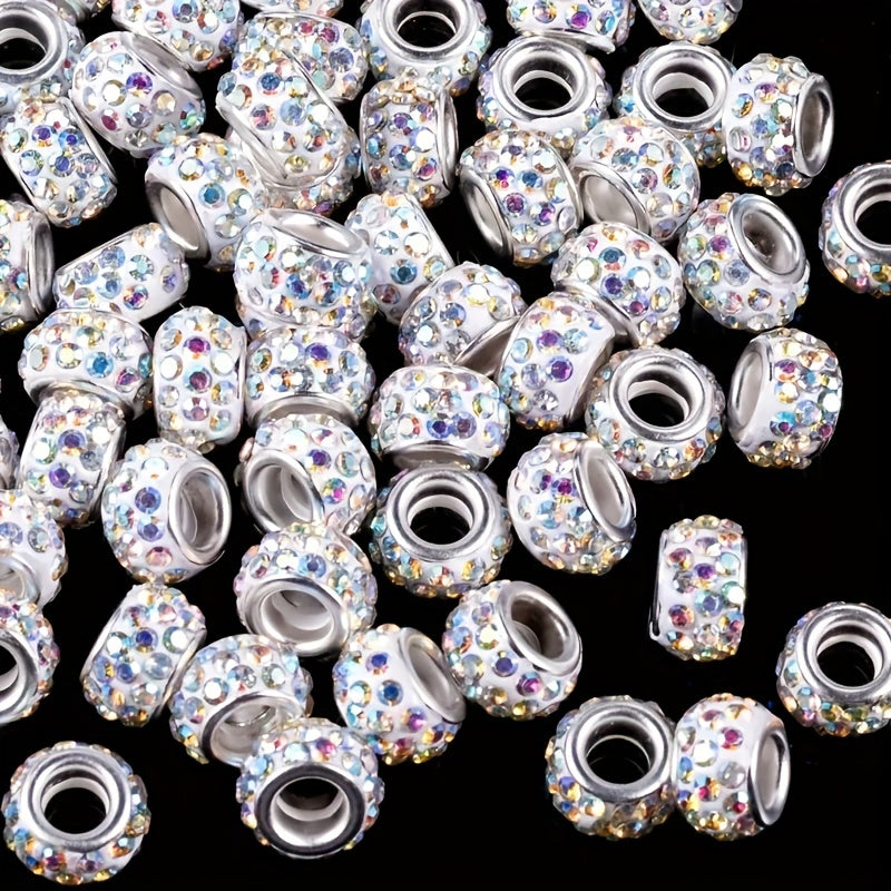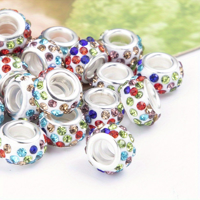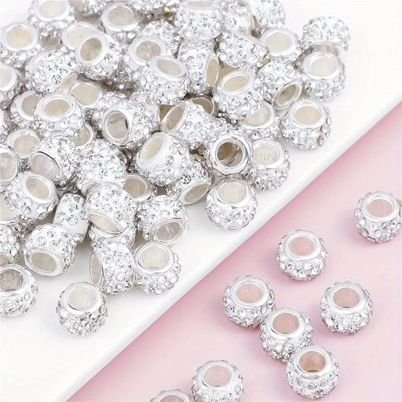 50pcs 12mm Large Hole Rhinestone Beads Circle Spacer Loose Beads DIY Earrings