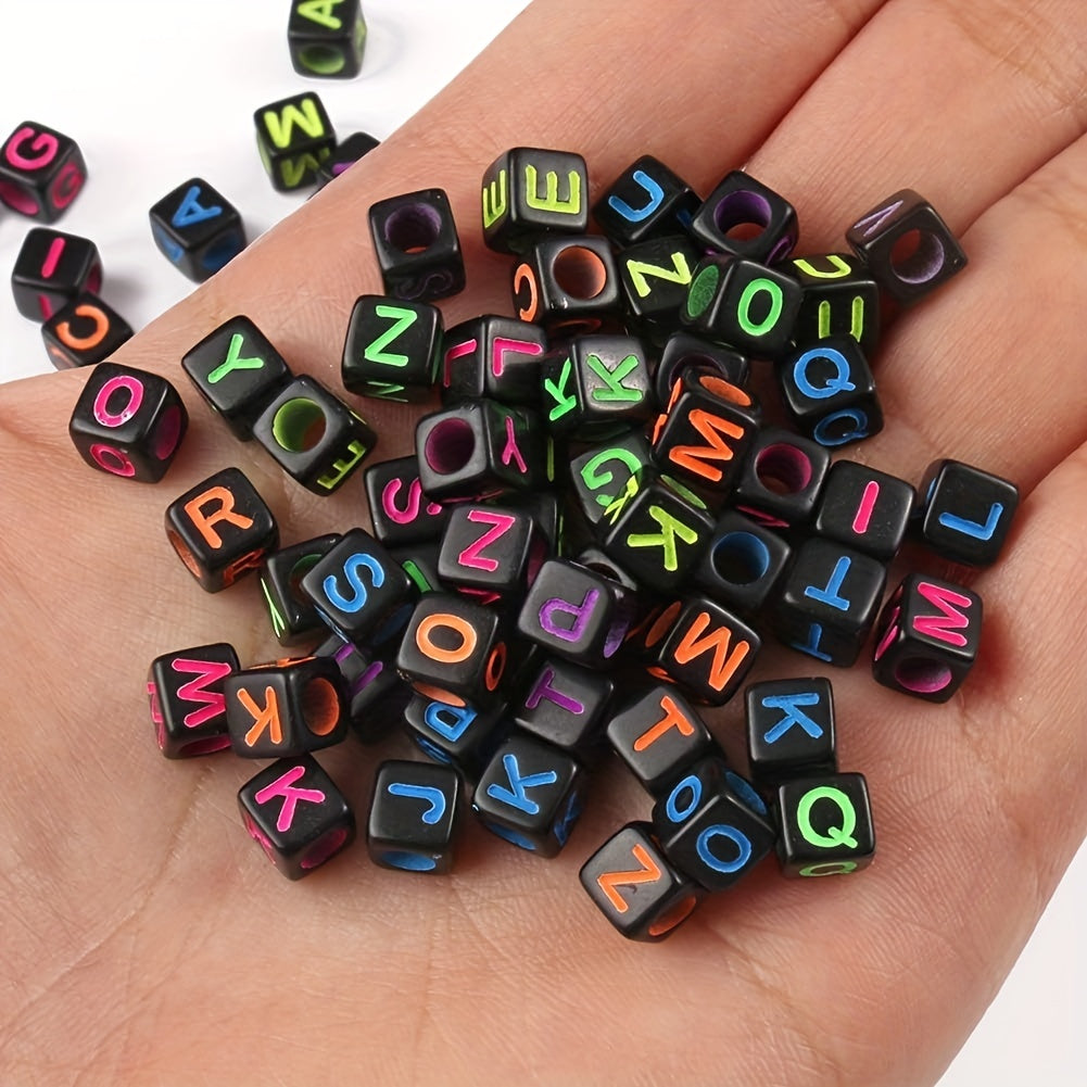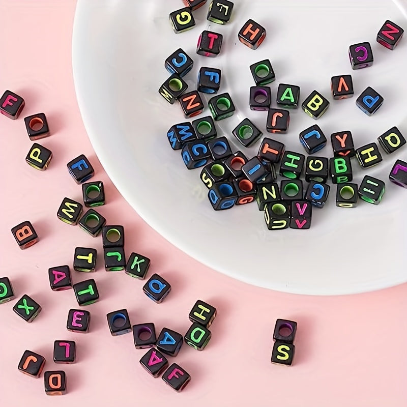 Create personalized jewelry with this set of 50 6x6mm colored letter beads. Use them to make bracelets, necklaces, earrings, and more.