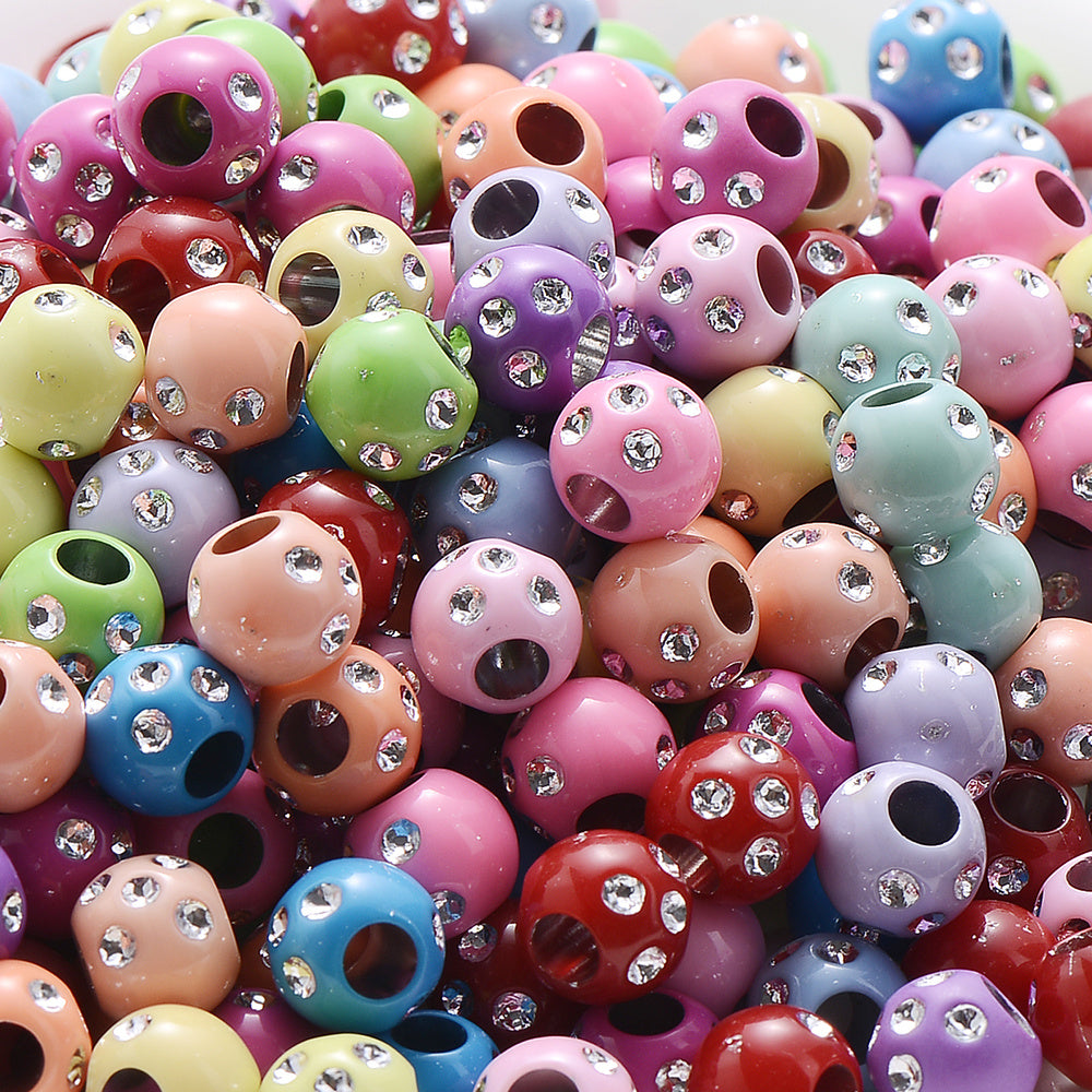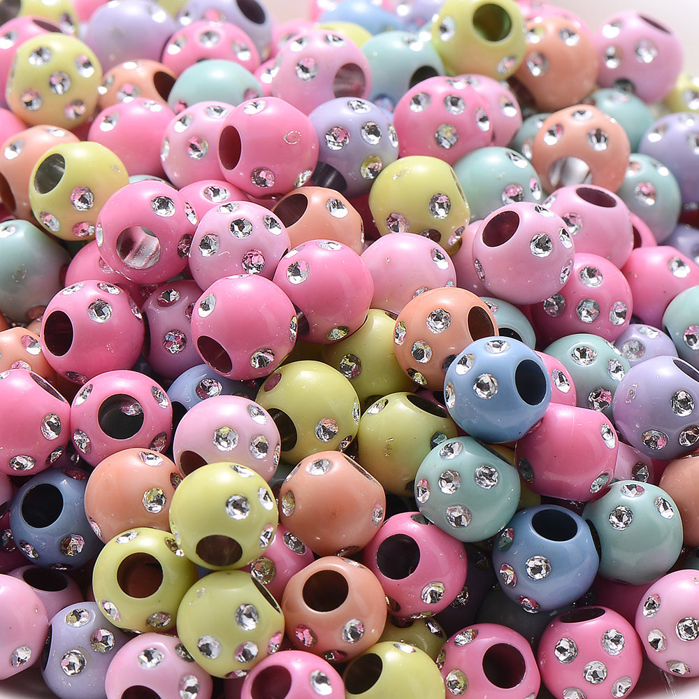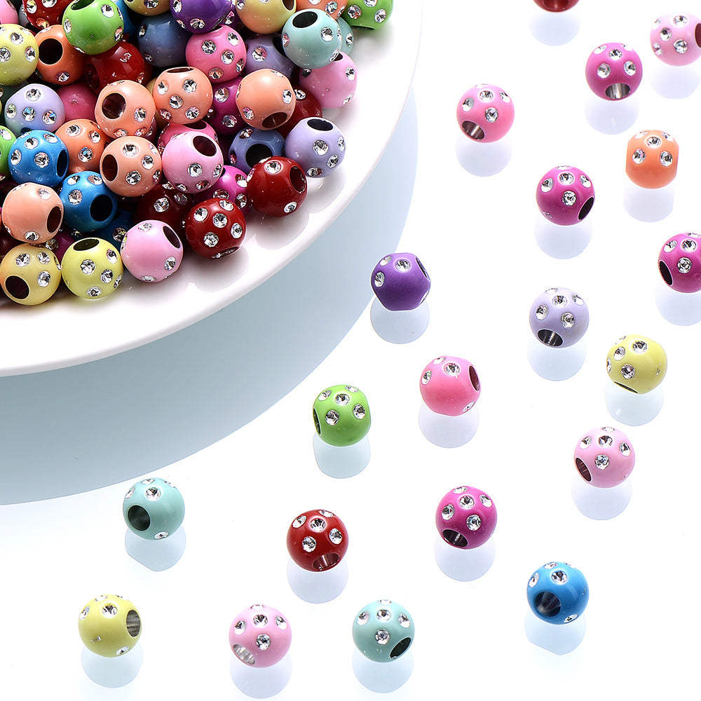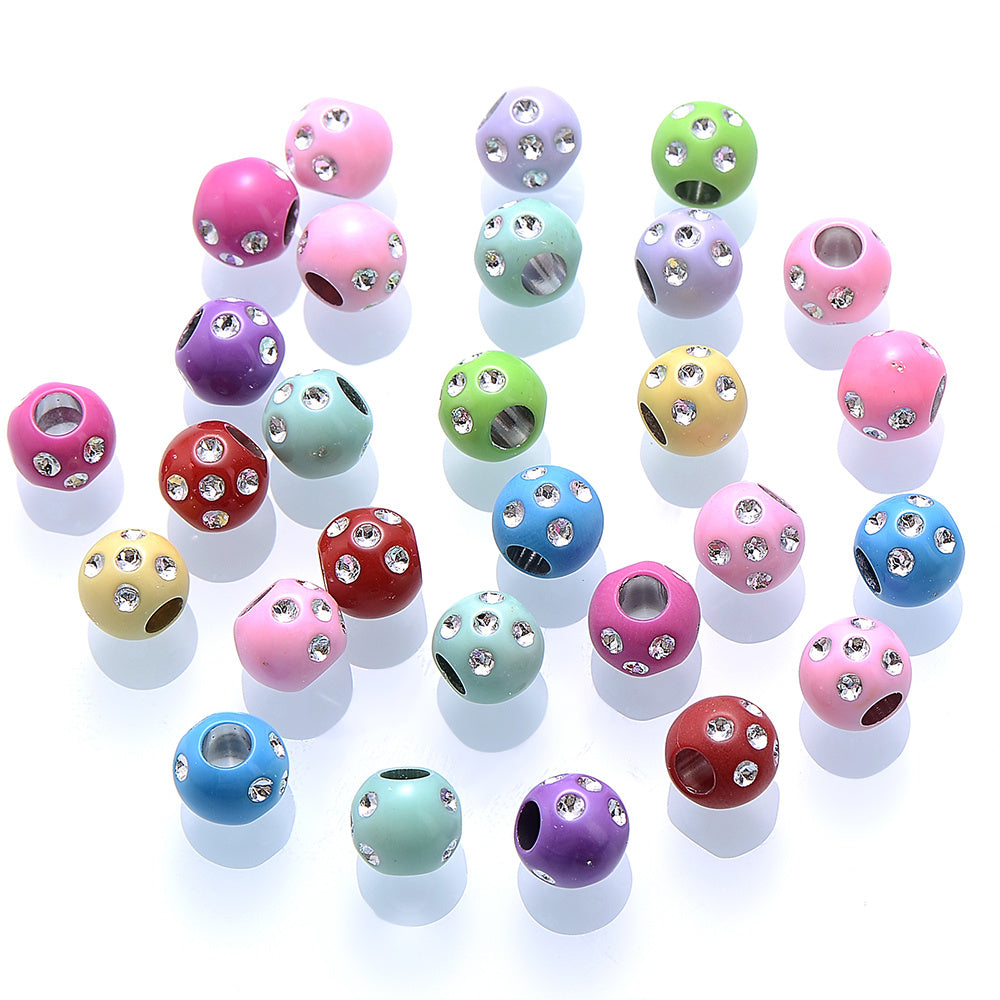 50pcs 7x8mm Rhinestone Beads Big Hole Acrylic Candy Beads for Crafts