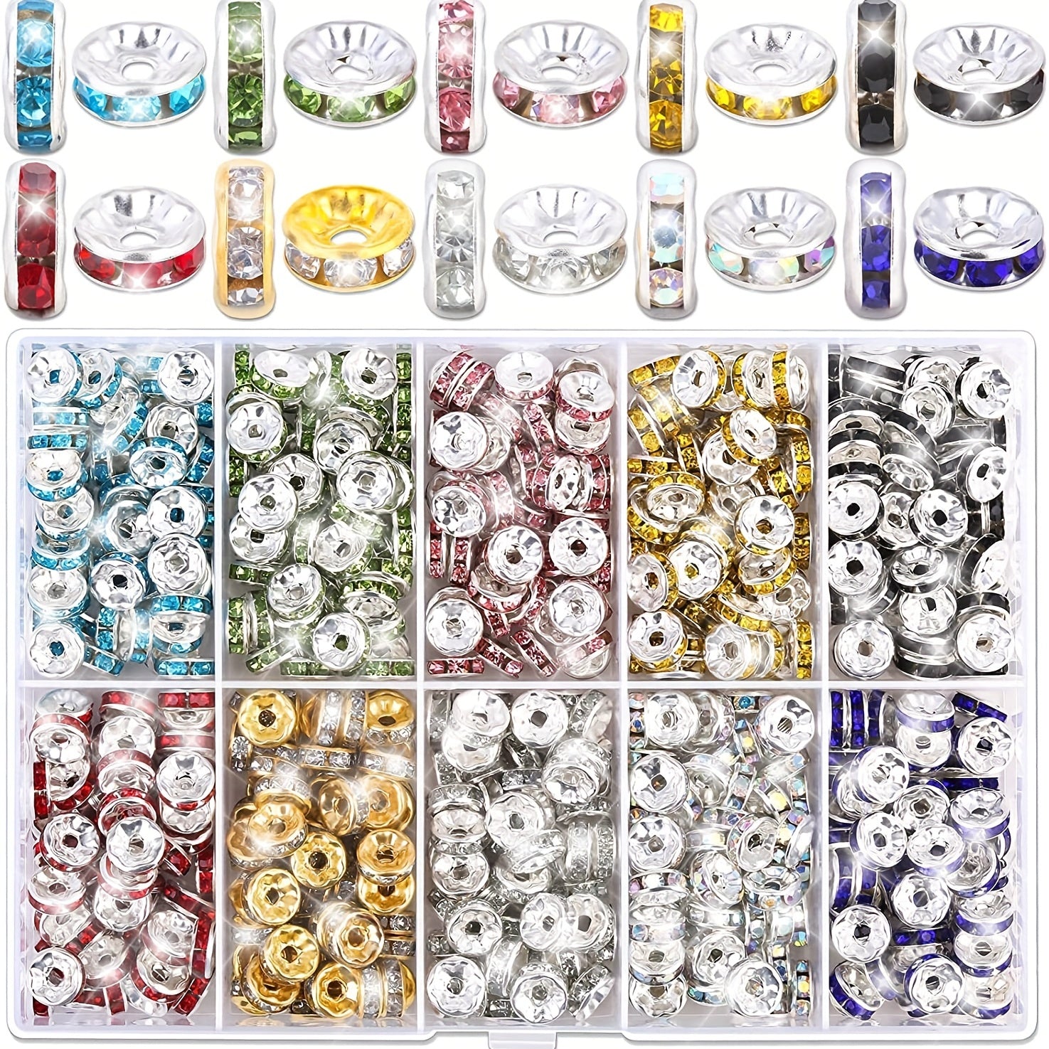 This set includes 50 round spacer beads measuring 8mm each. Perfect for making your own bracelets, necklaces, and other jewelry pieces.