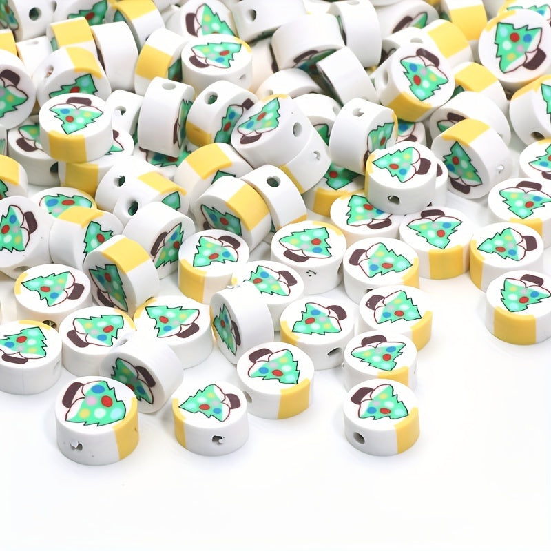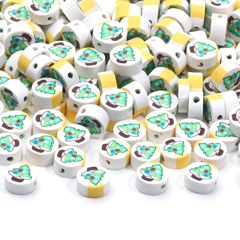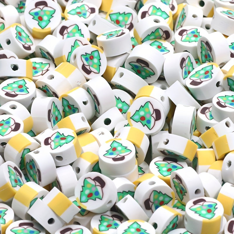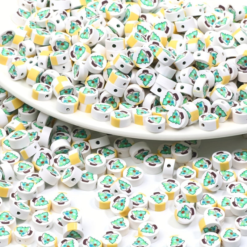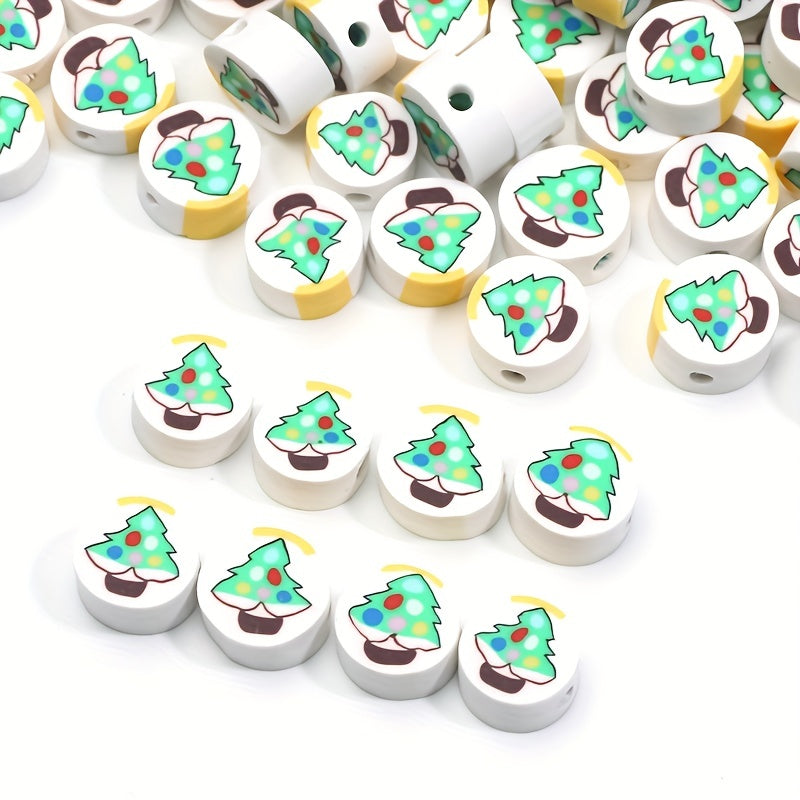 Create festive and unique jewelry pieces with these 9mm soft pottery round beads featuring Christmas tree background designs. Ideal for holiday-themed crafts!
