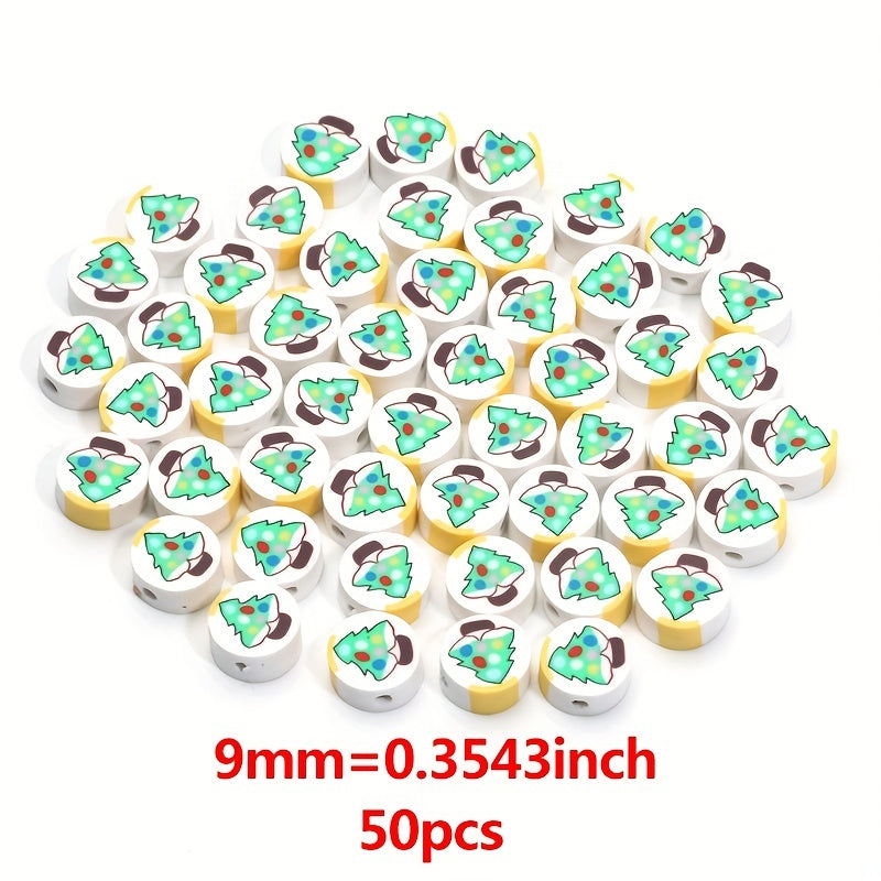 50pcs 9mm Christmas Tree Soft Pottery Round Beads DIY Jewelry Materials