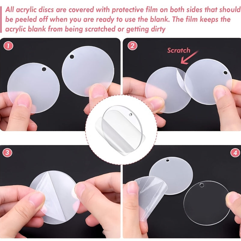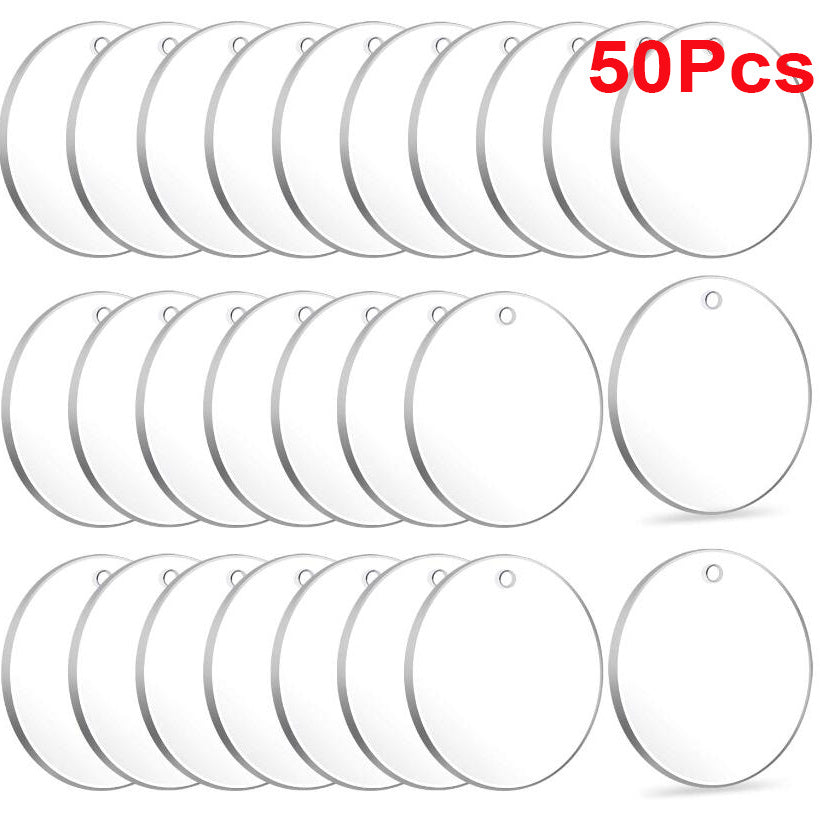 Get 50 acrylic keychain blanks perfect for crafting. These clear round disc keychains are made of durable acrylic to showcase your designs. Ideal for personalizing gifts or creating custom keychains.