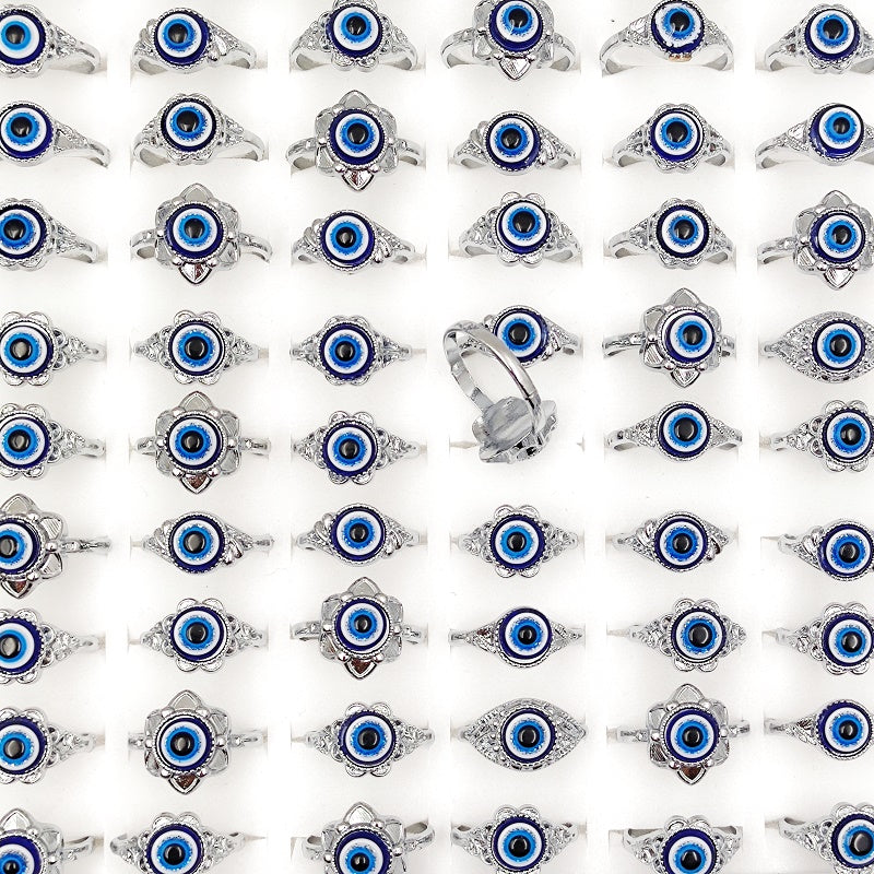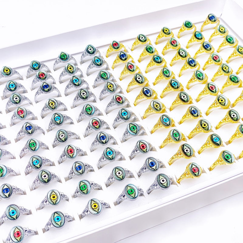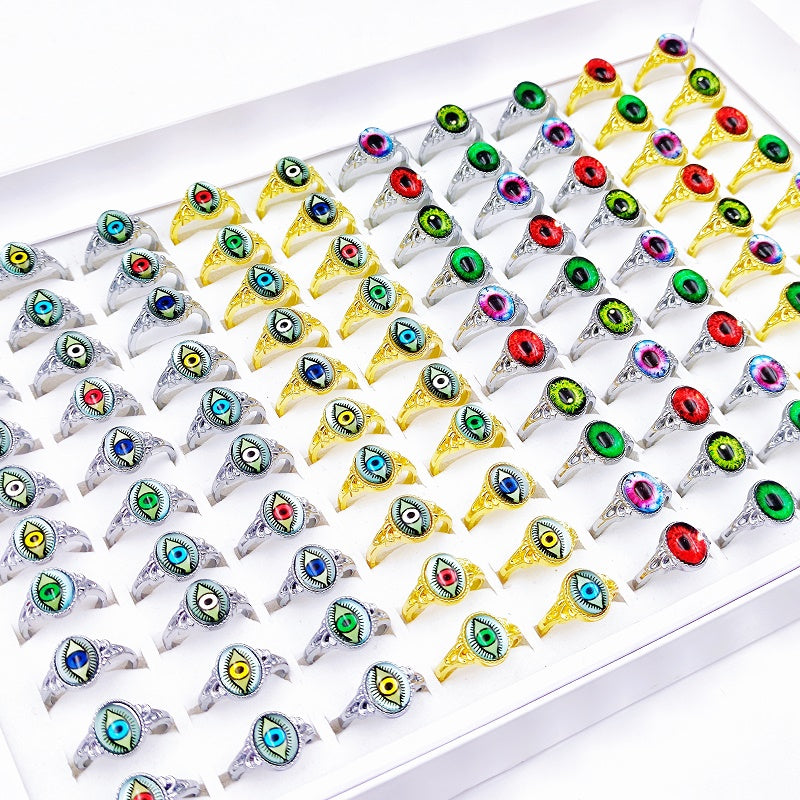 50Pcs Bohemia Devil's Eye Rings For Men Demon Lucky Jewelry