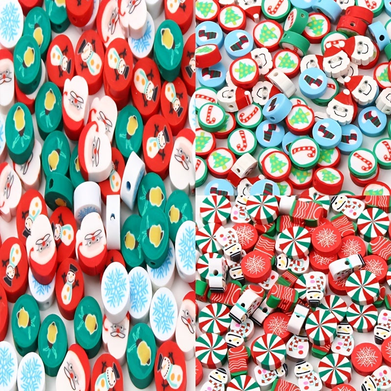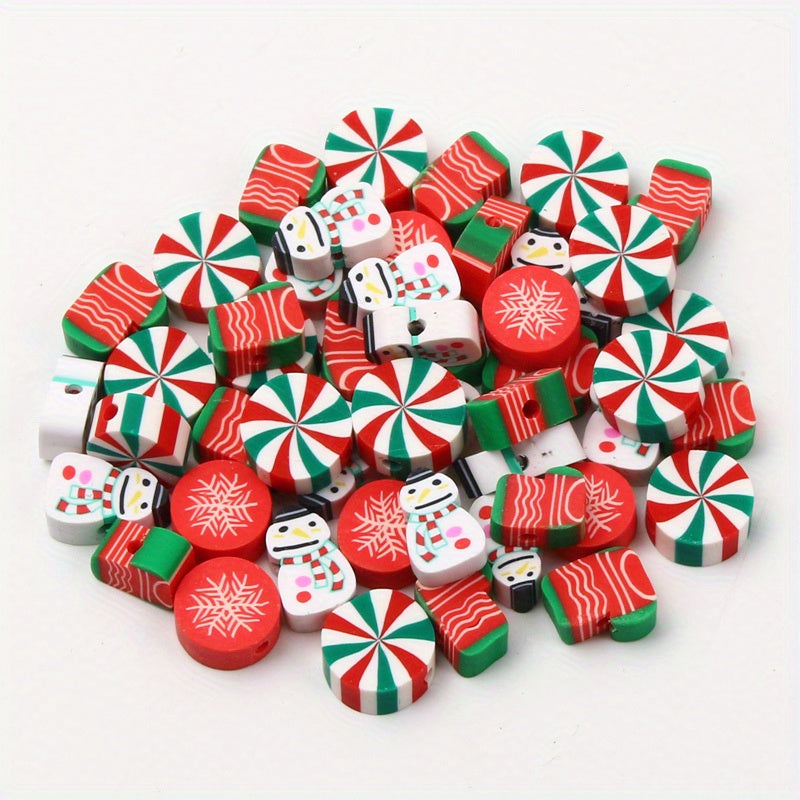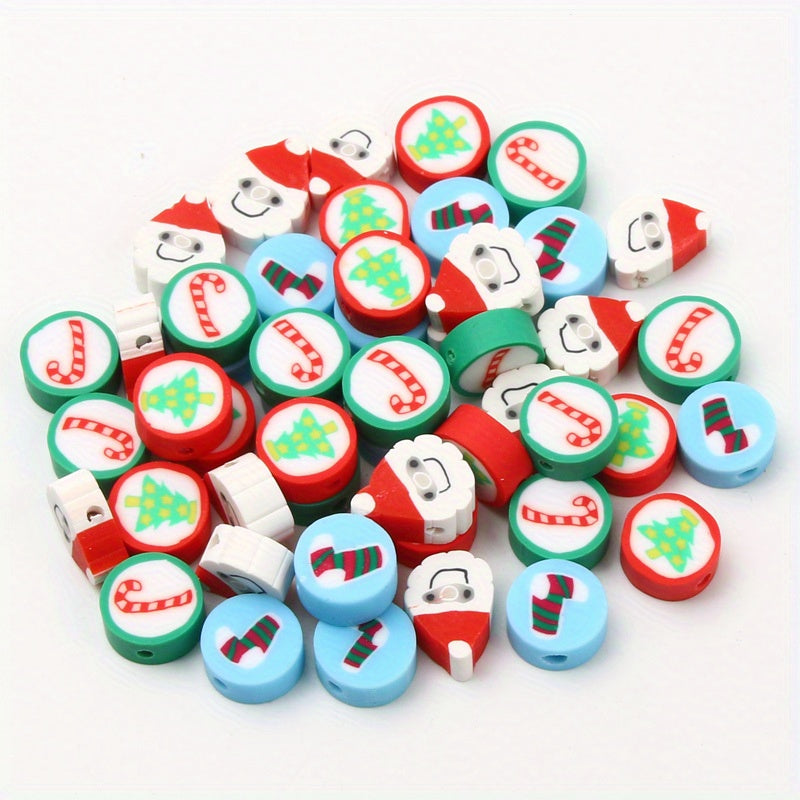Enjoy creating unique Christmas-themed jewelry with this 50-piece set of soft pottery beads. Perfect for necklaces, bracelets, and earrings.