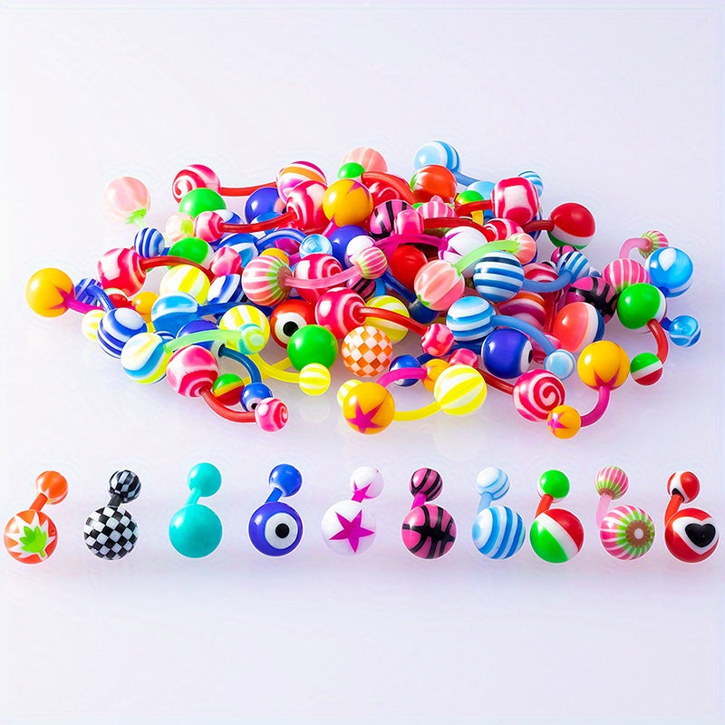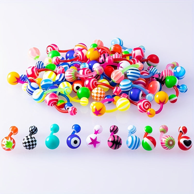 • Set of 50 colorful acrylic plastic ball belly button rings