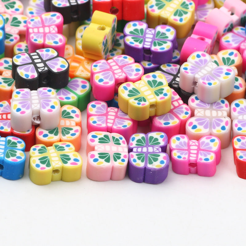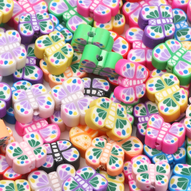 Add a touch of whimsical charm to your handmade jewelry creations with these colorful butterfly polymer clay beads. Perfect for earrings, bracelets, necklaces, and any other accessories.
