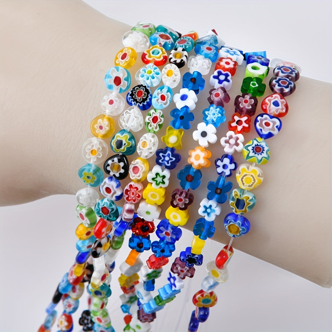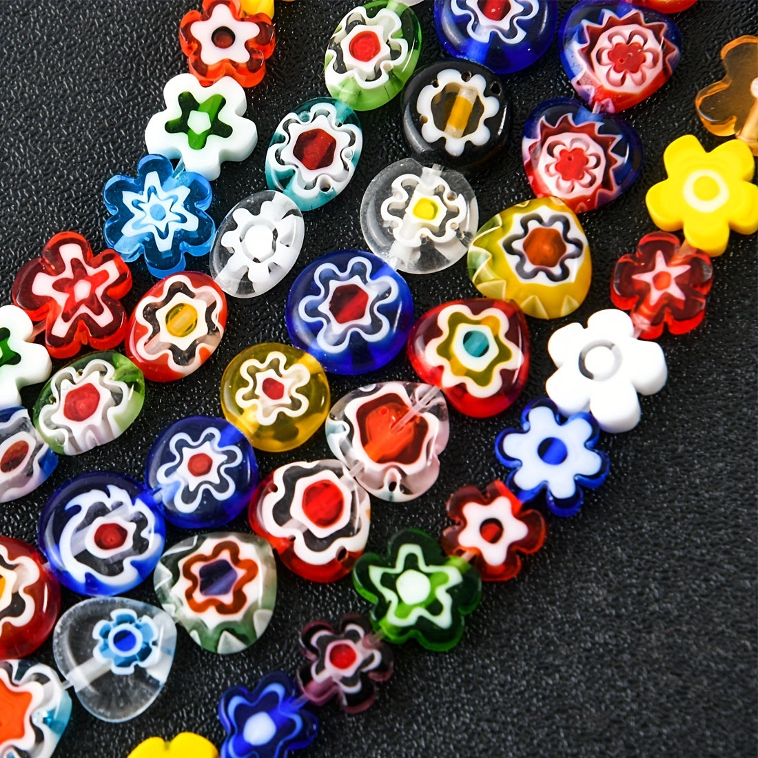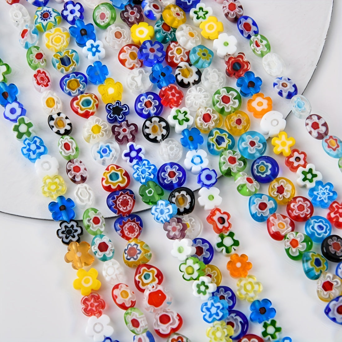 Enhance your jewelry making projects with these vibrant glass flower stone beads. Perfect for creating bracelets, necklaces, and other accessories.