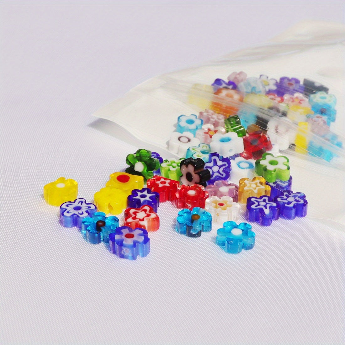 • Includes 50 colorful glass flower stone beads