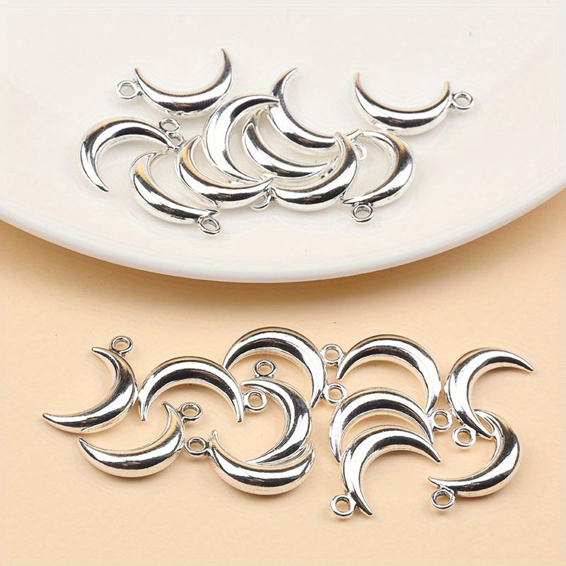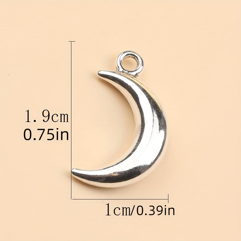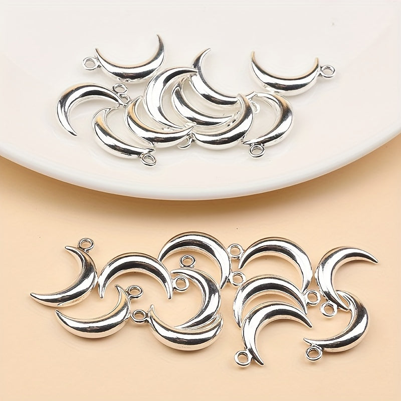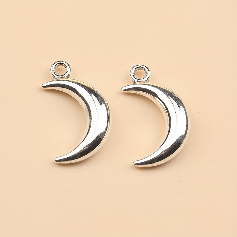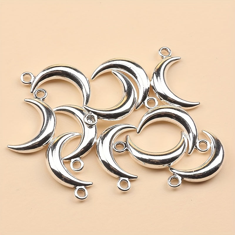 Add a celestial touch to your handmade jewelry with these 50 silvery alloy pendants featuring crescent moons, suns, and stars. Ideal for creating earrings, bracelets, necklaces, and other accessories.