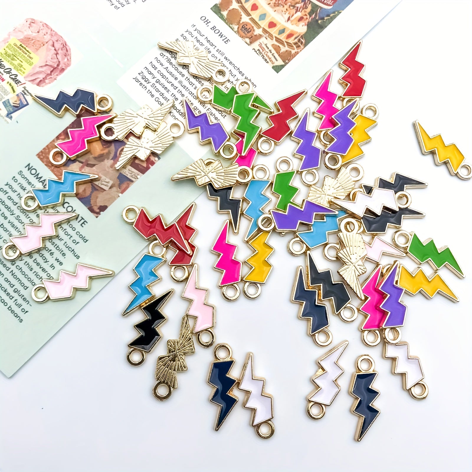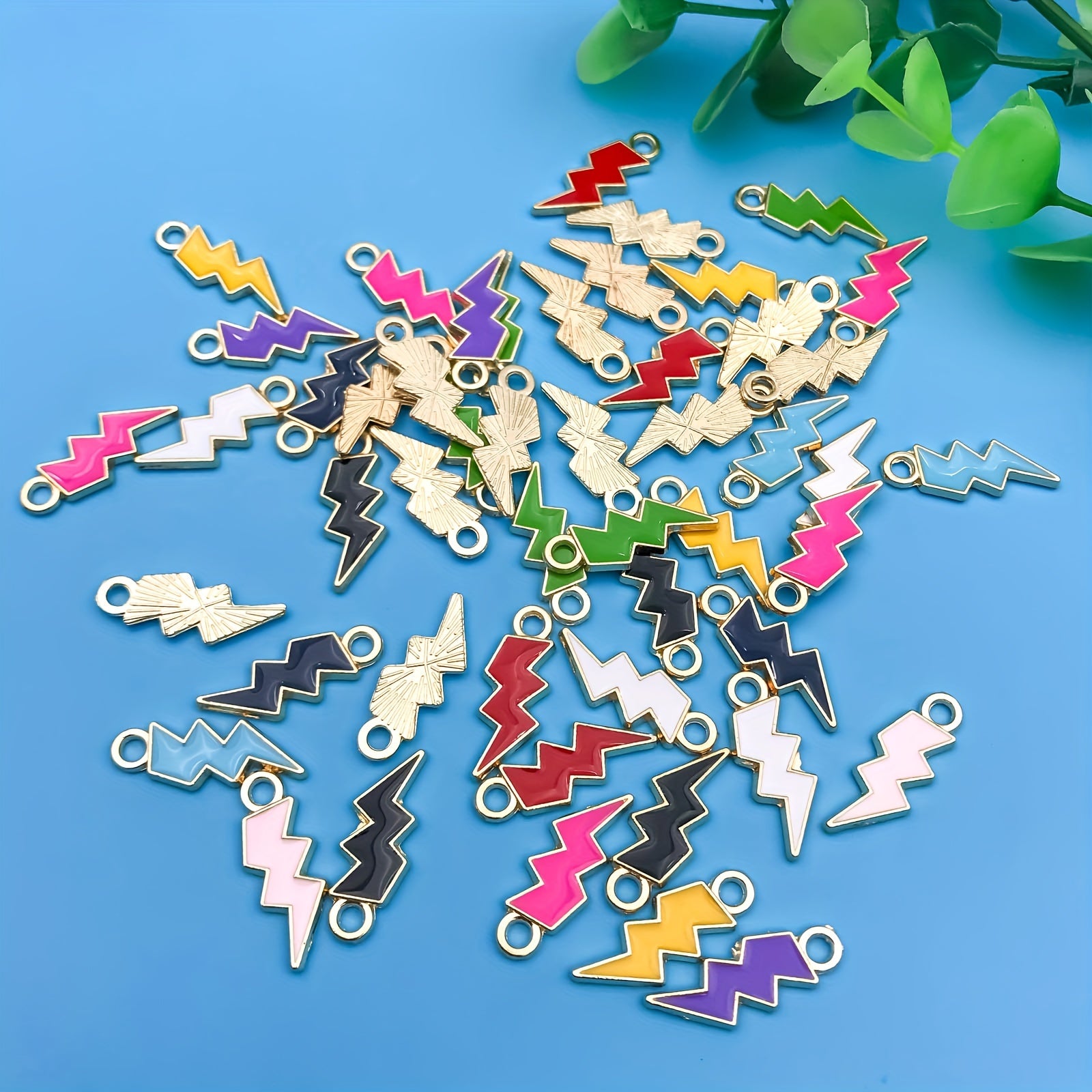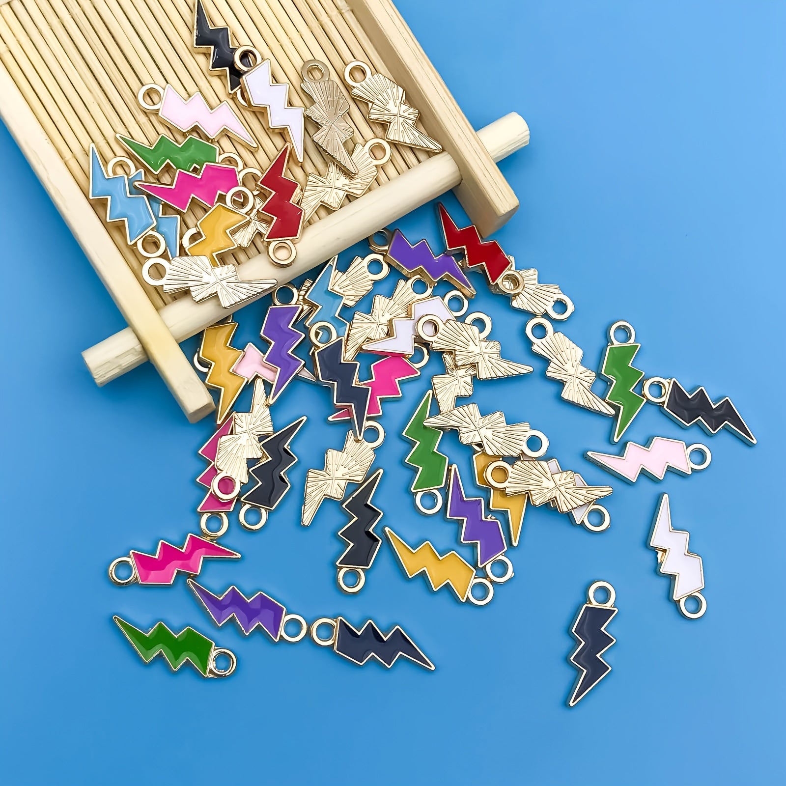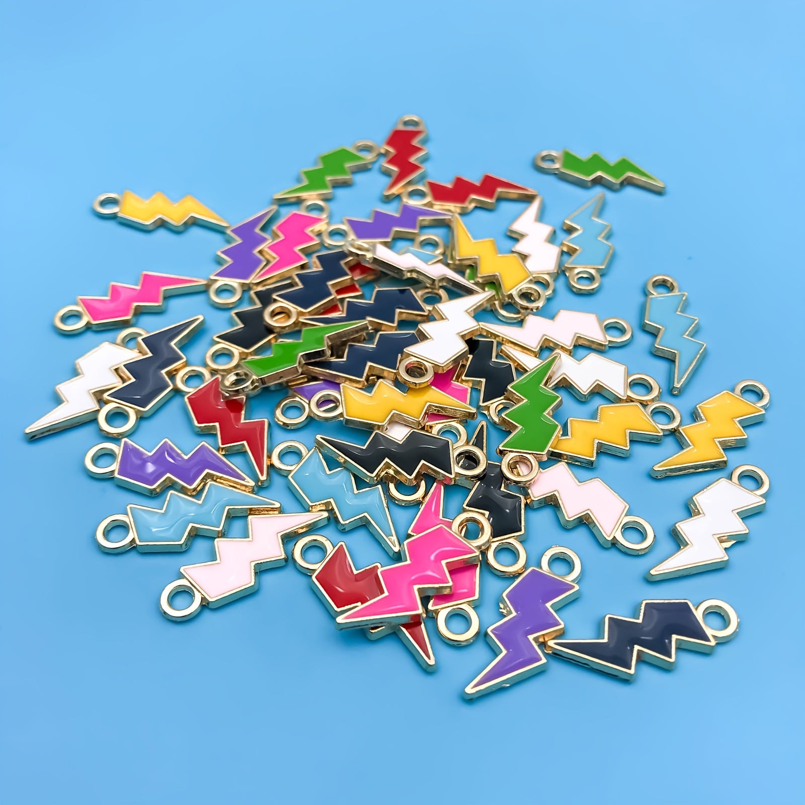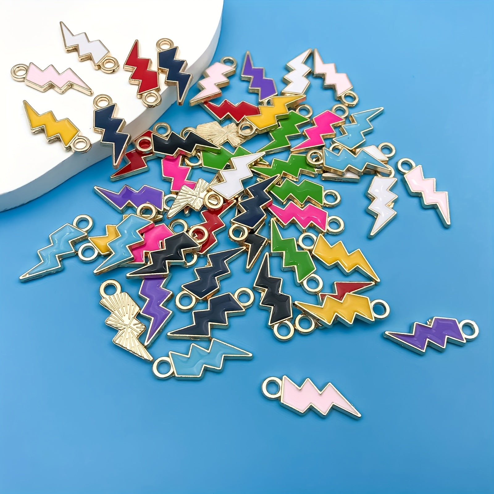 Get a set of 50 enamel dripping oil lightning shaped charms pendants perfect for creating your own necklaces, bracelets, and earrings. Ideal for semi-finished jewelry projects.