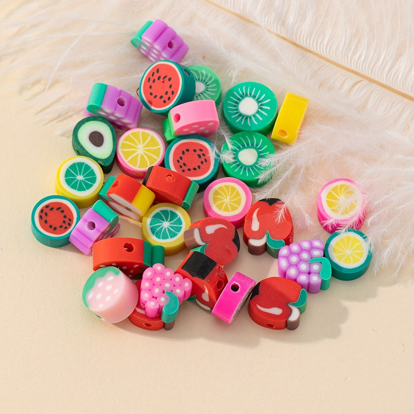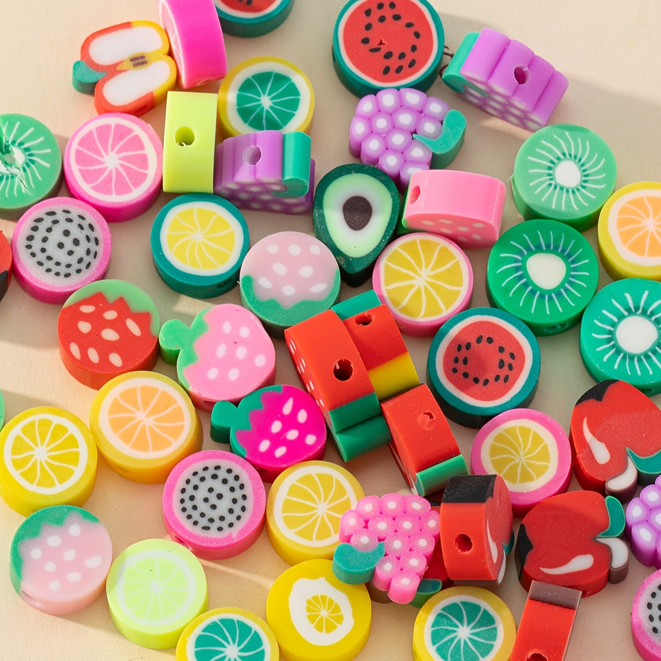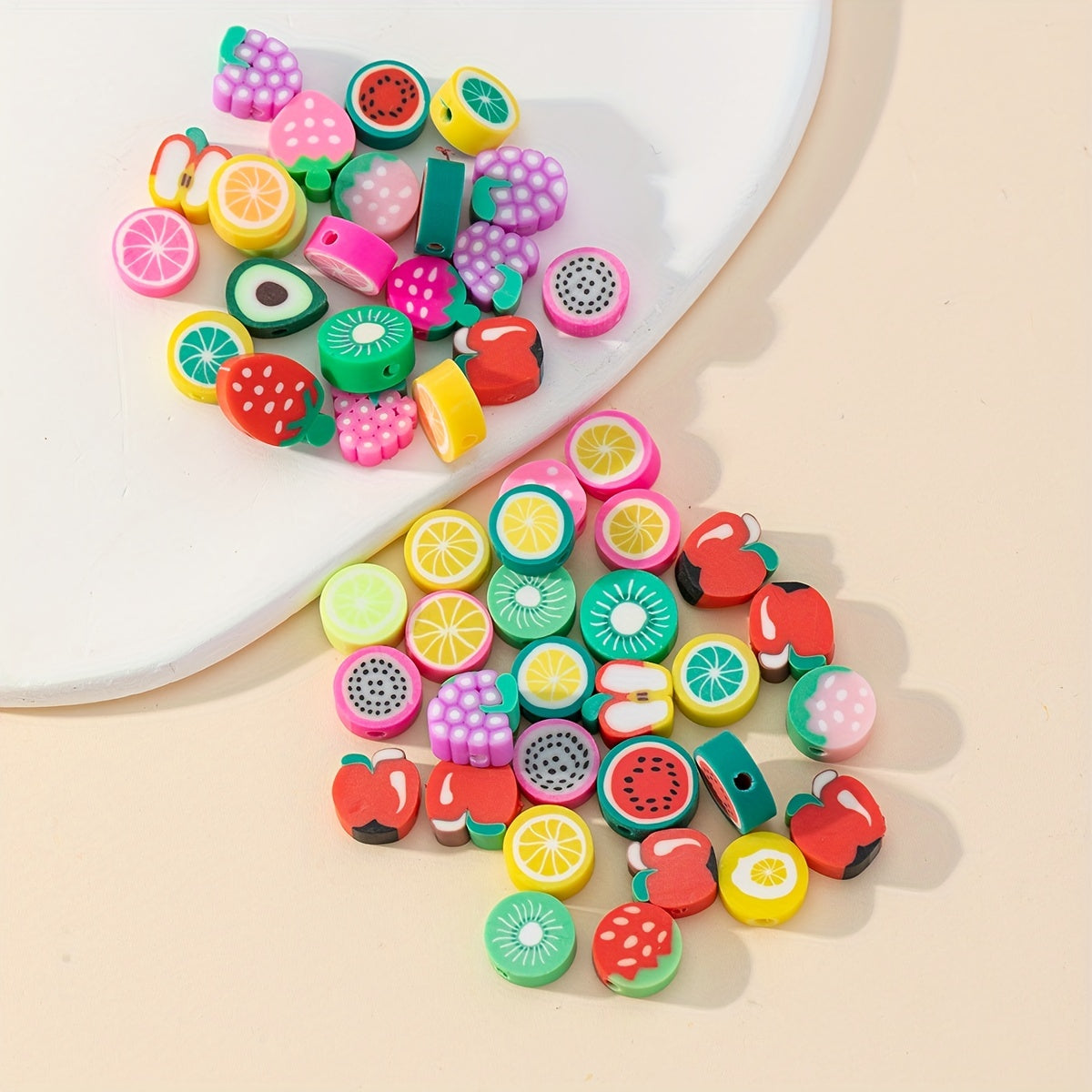 Enhance your jewelry making with this pack of 50 flat fruit pattern soft pottery beads. Perfect for creating earrings, bracelets, necklaces, and other accessories.